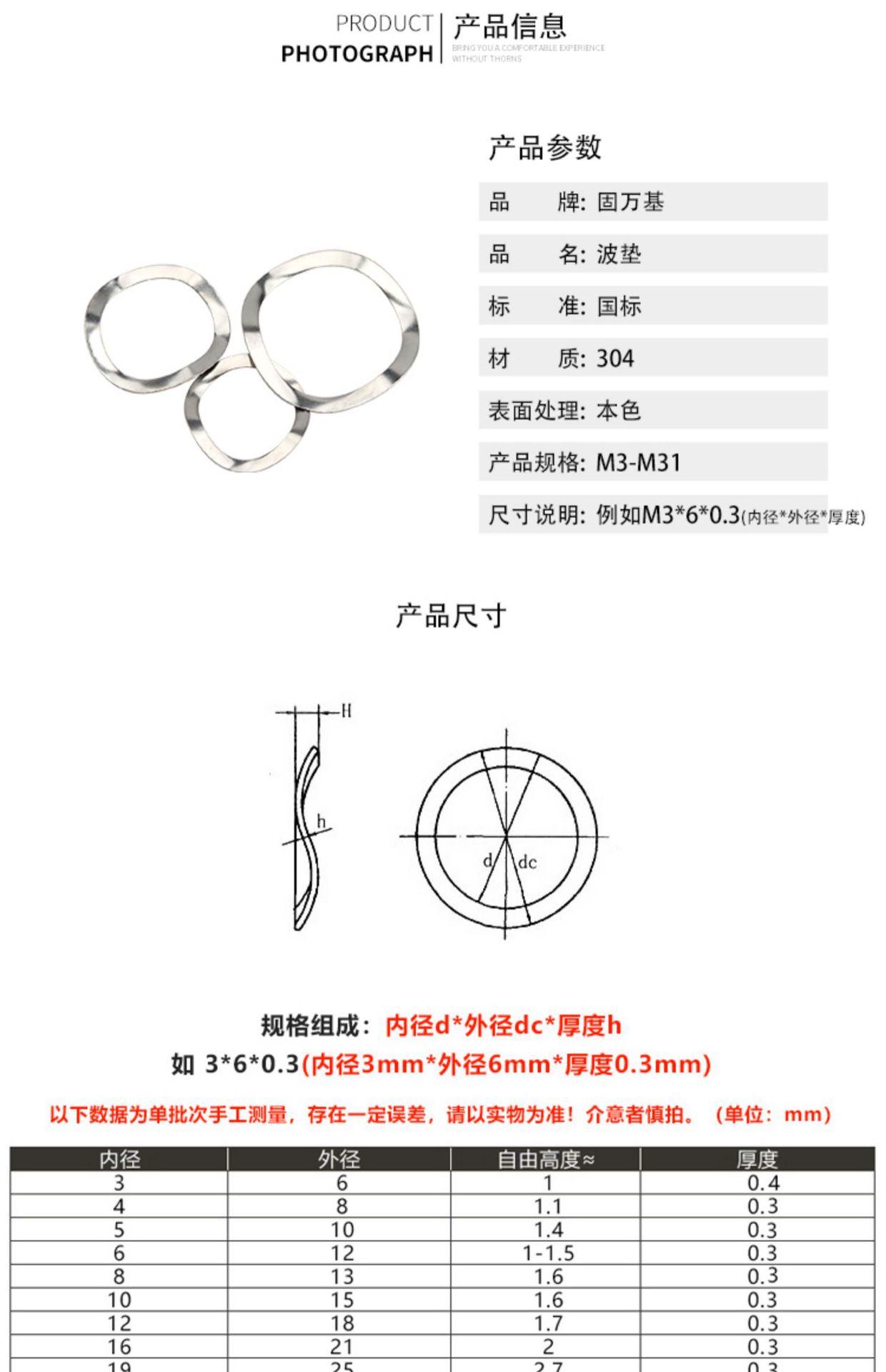 Arandela ondulada triple de acero inoxidable 304 junta tipo onda arandela ondulada arandela elástica ondulada M3M4M5M6-M31