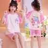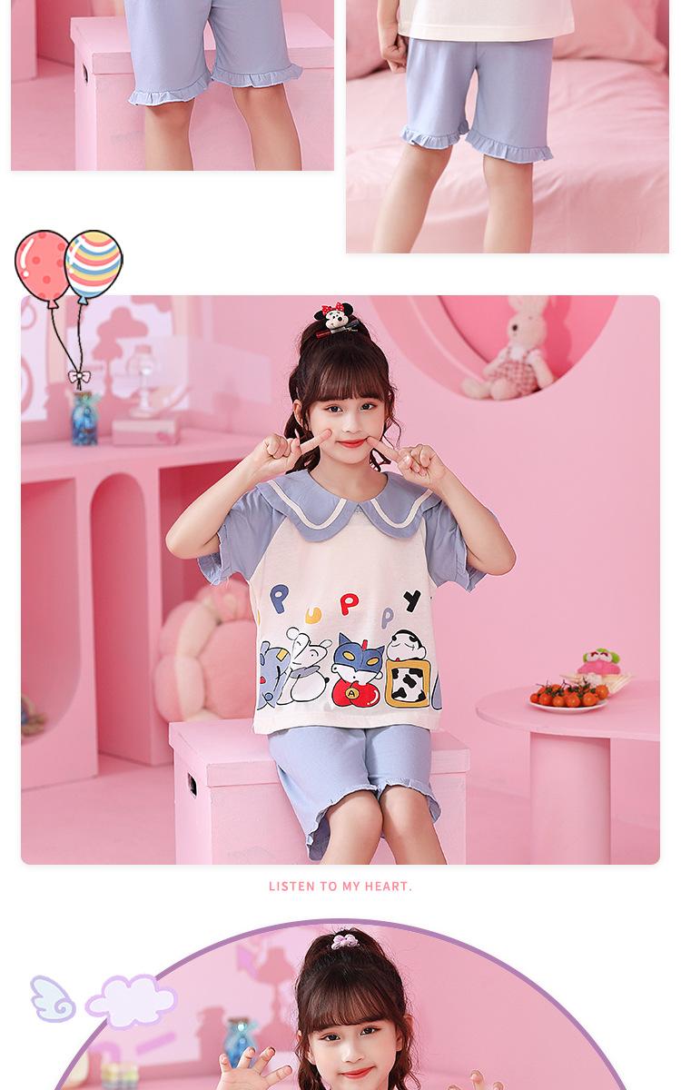 Pijamas para Niñas de Verano de Manga Corta Delgadas de Algodón Peinado de Dibujos Animados Ropa para Padres e Hijos Traje de Ropa para el Hogar para Niñas Medianas y Grandes
