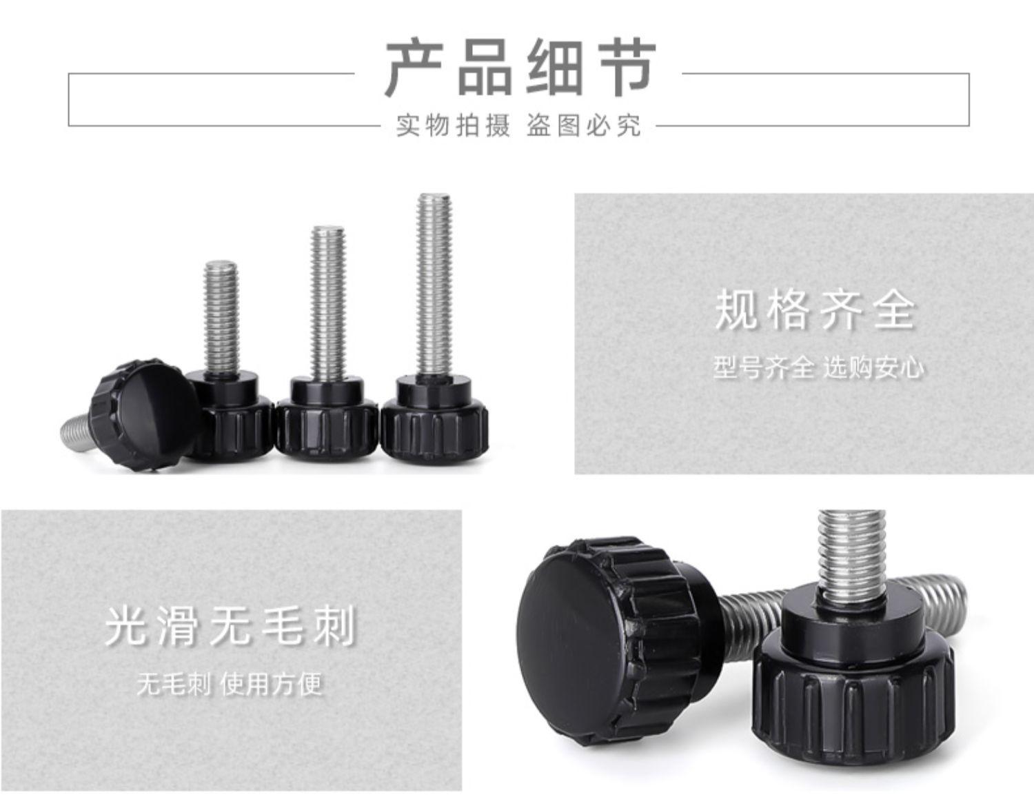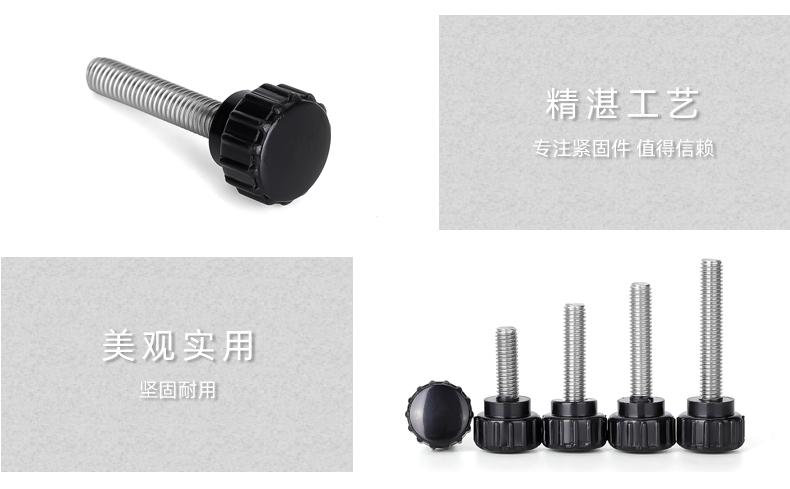 Tornillo de mano de cabeza redonda de acero inoxidable 304 con mango moleteado redondo y cabeza de goma, tornillo con mango de plástico M3M4M5M6M8