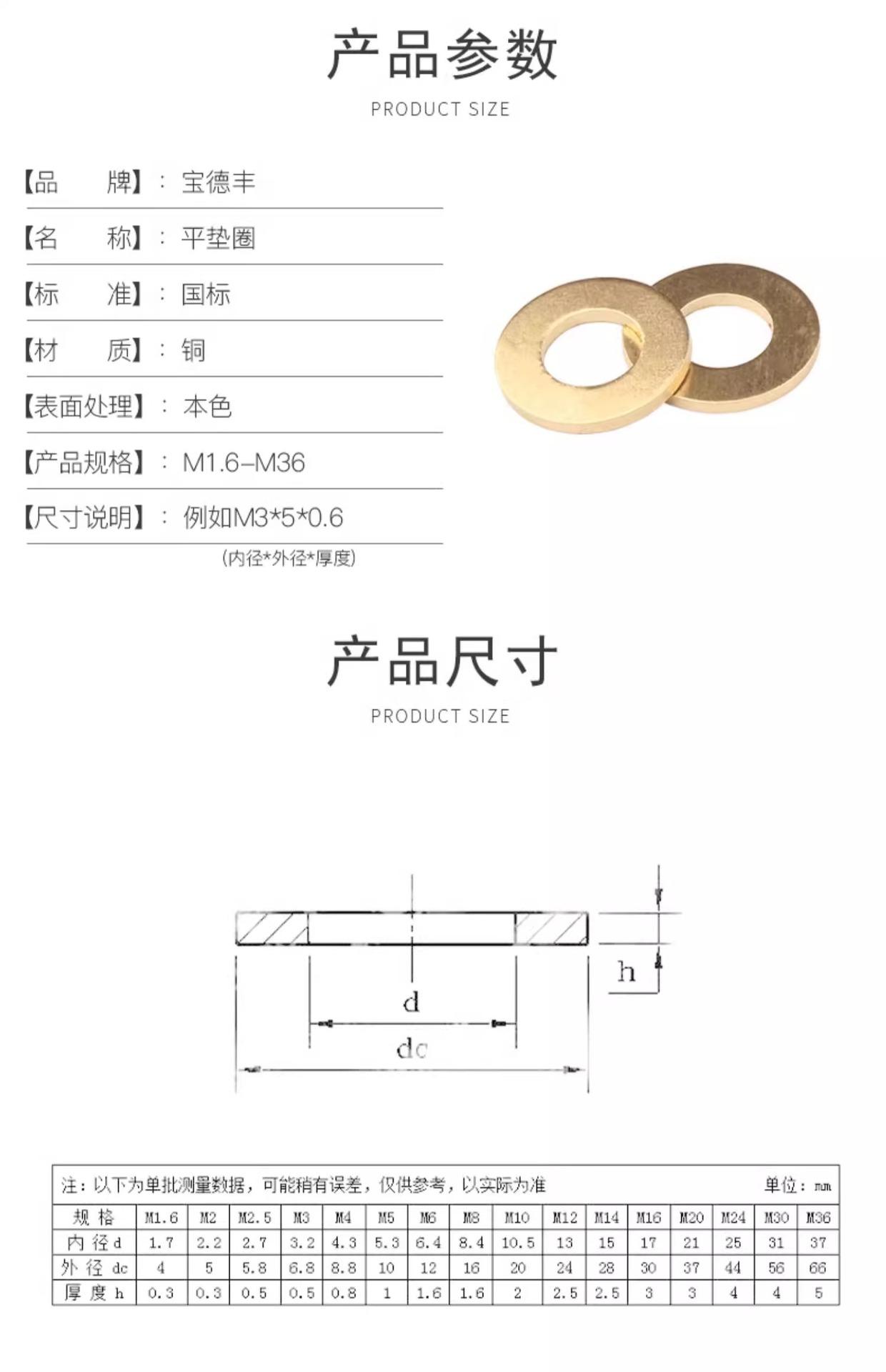 Arandela Redonda de Cobre Arandela Plana de Latón Arandela Plana Arandela de Metal Arandela Plana M3M4M5M6M8M20
