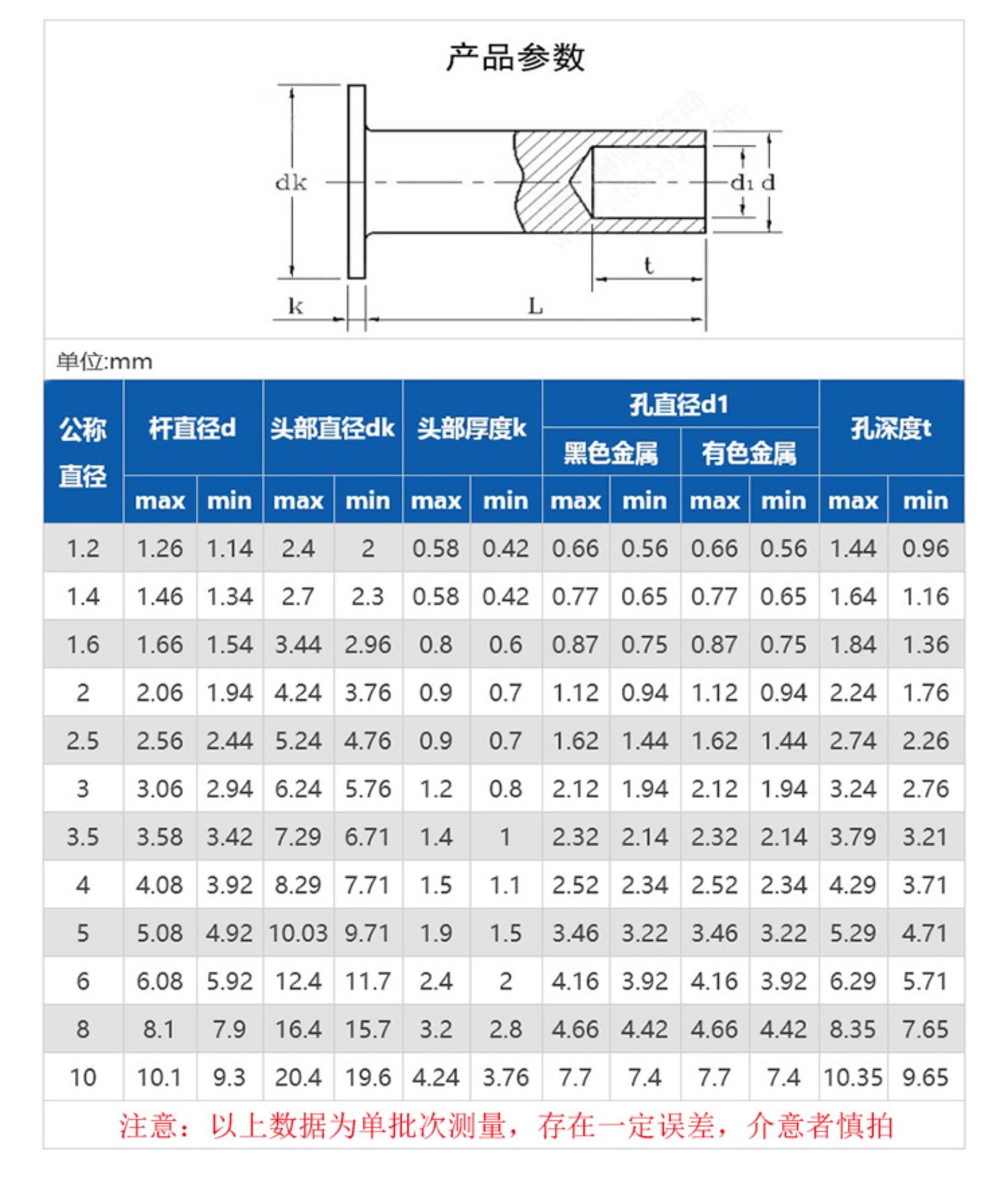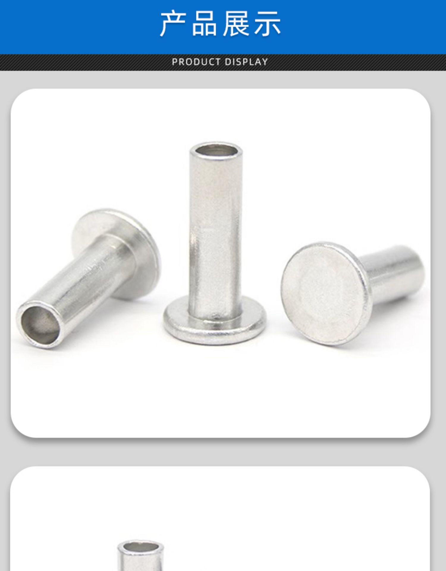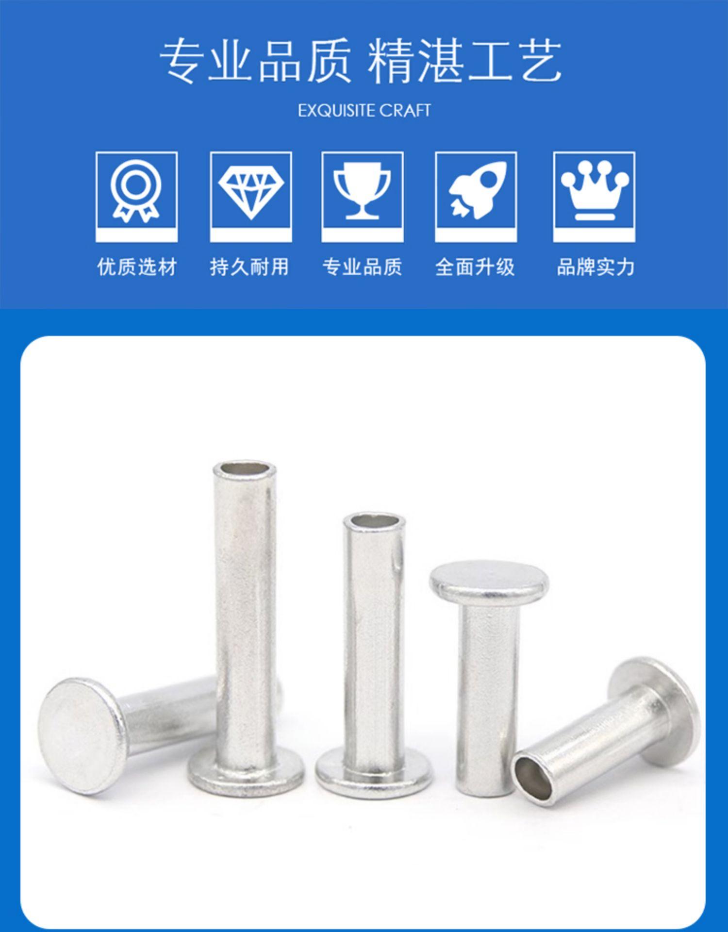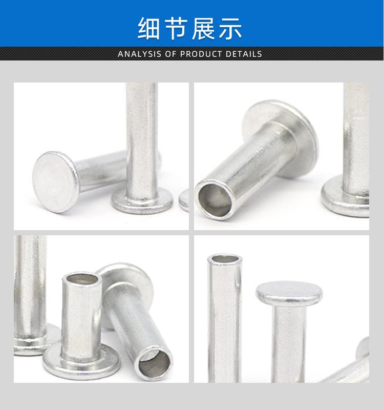 Remache de aluminio de cabeza plana semihueca, remaches huecos GB875, remache de aluminio laminado M2M2.5M3M4M5M6M8