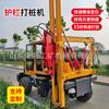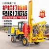 Máquina hincapilotes para barreras de carretera, Pequeña máquina perforadora y extractora rodante de cuatro ruedas, Hincapilotes integrado para vallas onduladas