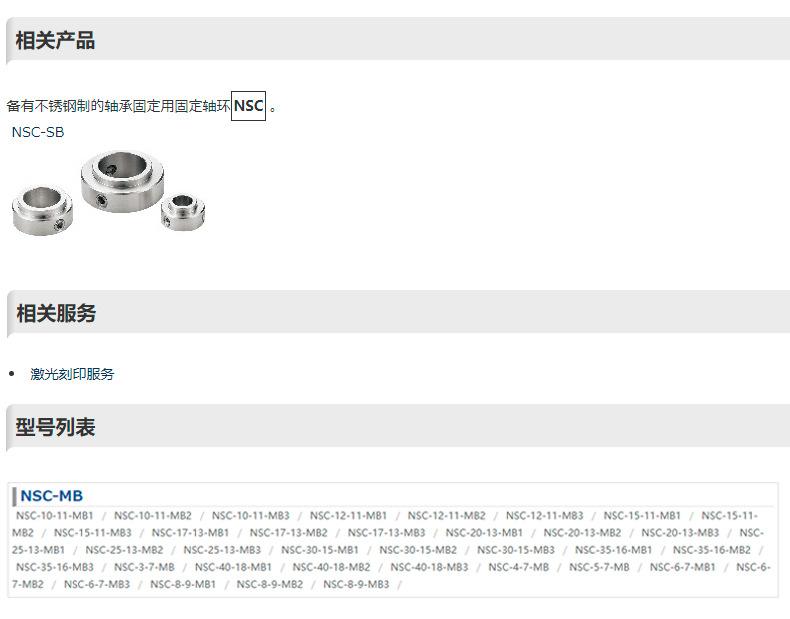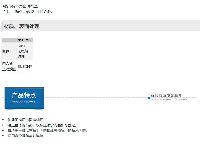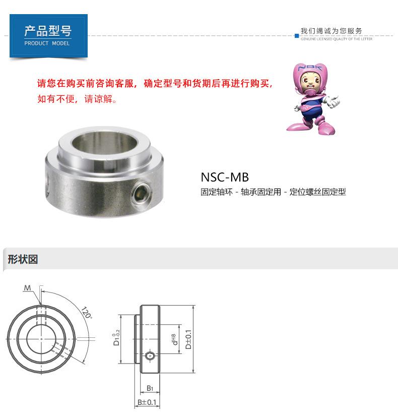 Tornillo de posicionamiento NBK NSC-MB Conformación fija Anillo limitador de eje fijo Anillo de bloqueo para rodamiento