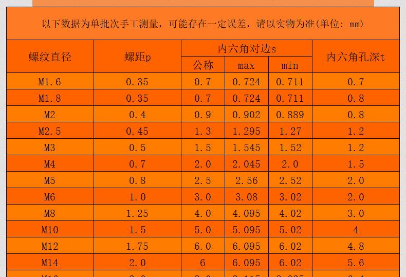 M2*2, M2*2.5, M2*3, M2*4, M2*5, M2*6, M2*8, M2*10, M2*12, M2.5*2, M2.5*2.5, M2.5*3, M2.5*4, M2.5*5, M2.5*6, M2...