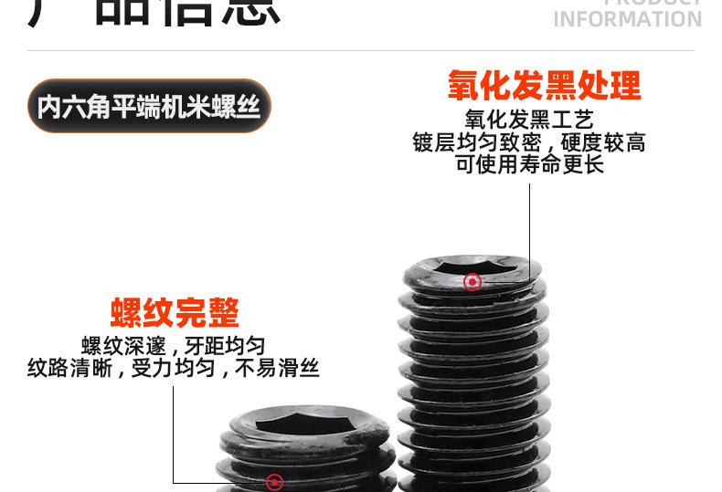 Tornillo de máquina de extremo plano de grado 12.9, tornillo sin cabeza hexagonal, tornillo de posicionamiento, tornillo de stent M3M4M5M6