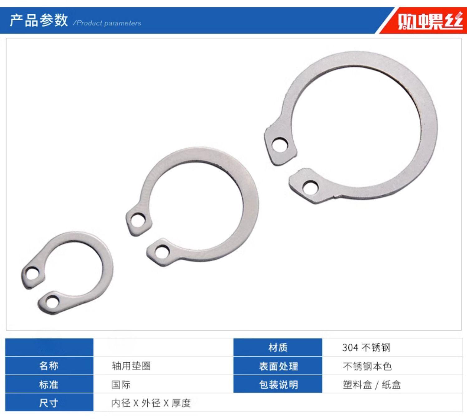 Anillo de retención de eje de acero inoxidable 304 GB894, anillo de retención de resorte de tarjeta de eje de tarjeta externa, anillo de retención de cojinete elástico tipo A tipo C, 6L