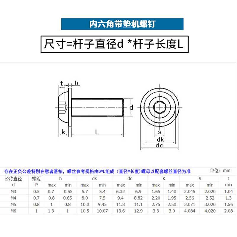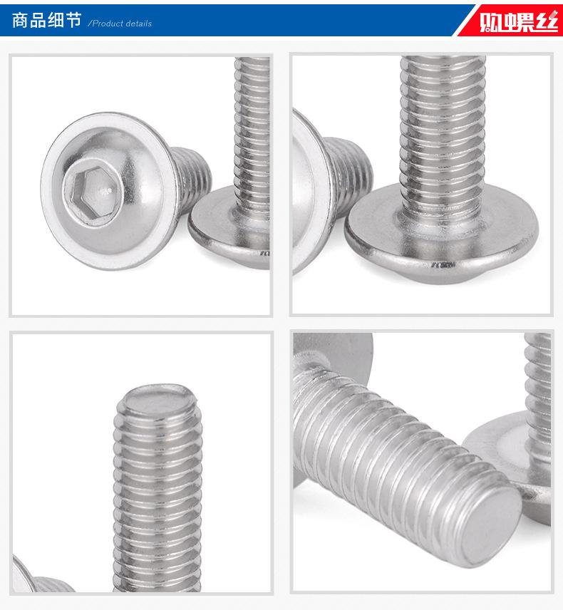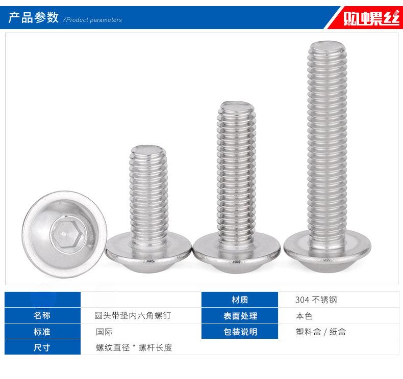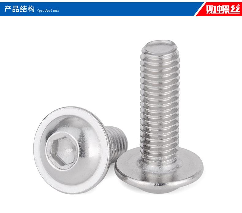 Tornillo de cabeza hueca hexagonal con almohadilla de acero inoxidable 304, tornillo de brida de cabeza plana grande, M3M4M5M6M8M10