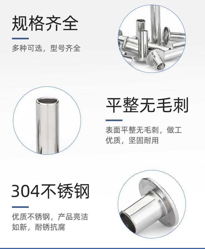Remache semihueco de acero inoxidable 304 con cabeza redonda plana y hueca M2M3M4M5M6M8 GB873