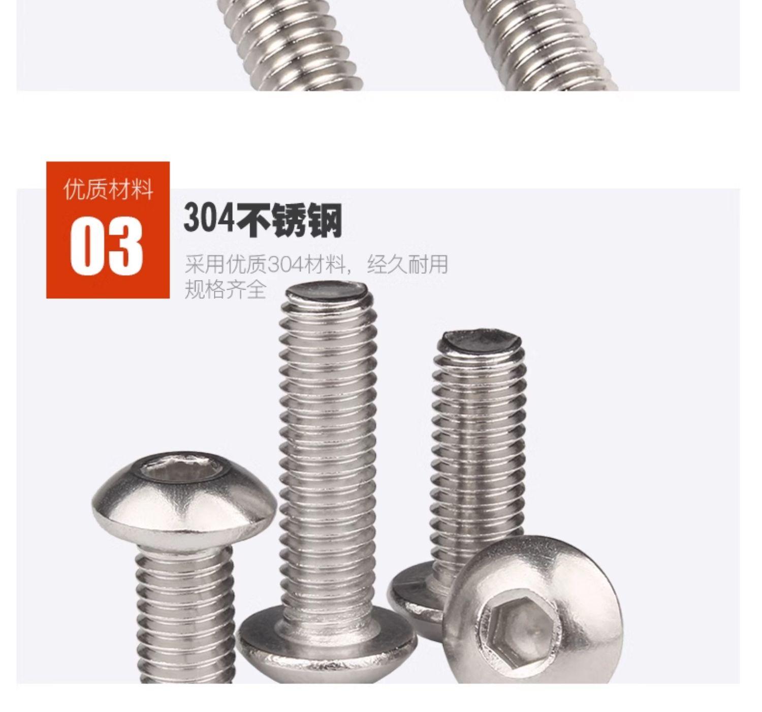 Tornillo de cabeza hexagonal de acero inoxidable 304, tornillo de cabeza redonda, tornillo de cabeza plana, perno de cabeza redonda GB M3M4M5M6