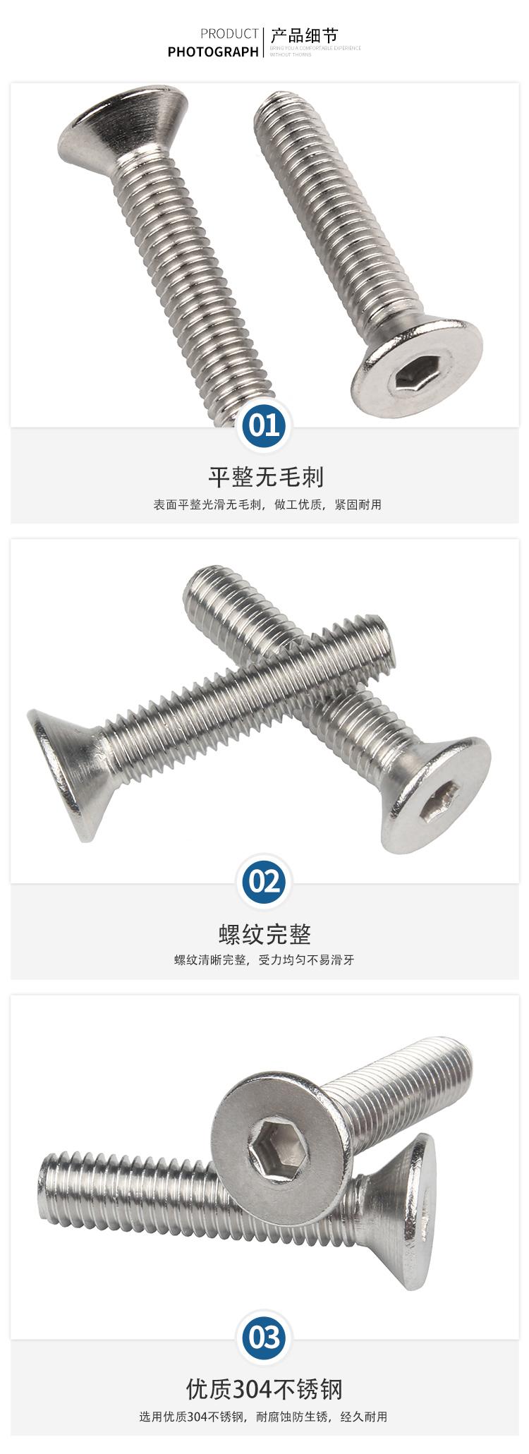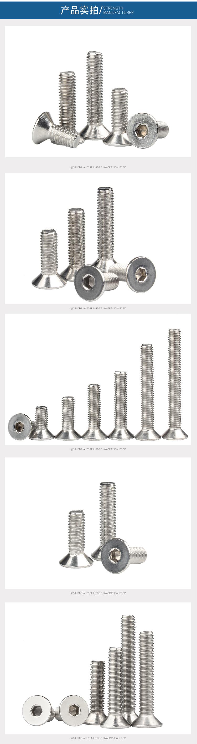 Tornillo de cabeza avellanada hexagonal de acero inoxidable 304, tornillo de cabeza plana, tornillo de máquina de copa plana M2M3M4M5M6M8M10M12