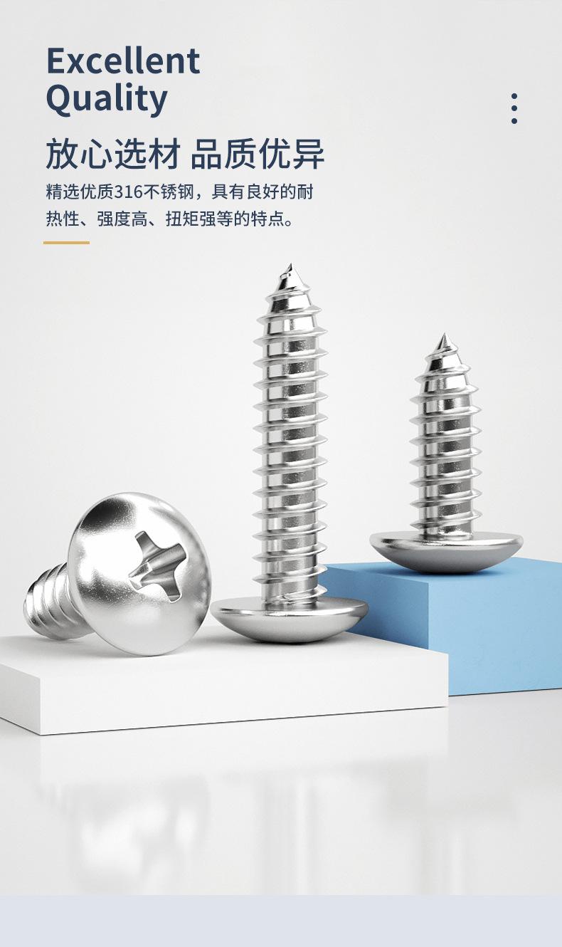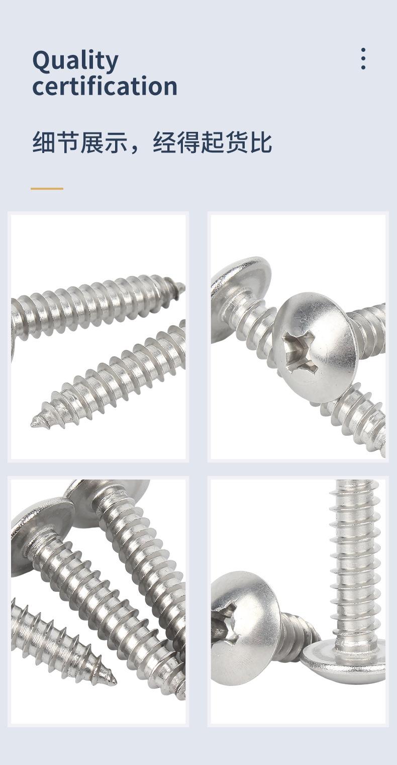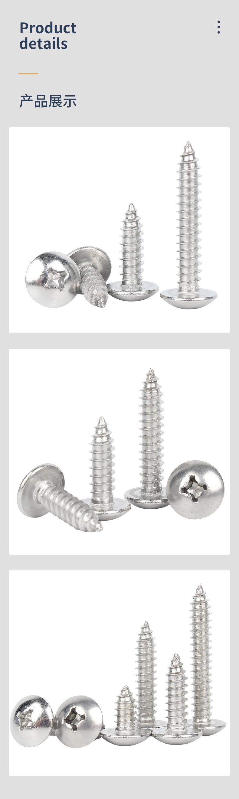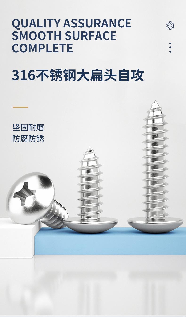 Tornillo autorroscante de cabeza plana grande en cruz de acero inoxidable 316, cabeza redonda, cabeza de paraguas, tornillo para madera tipo hongo M3M4M5M6
