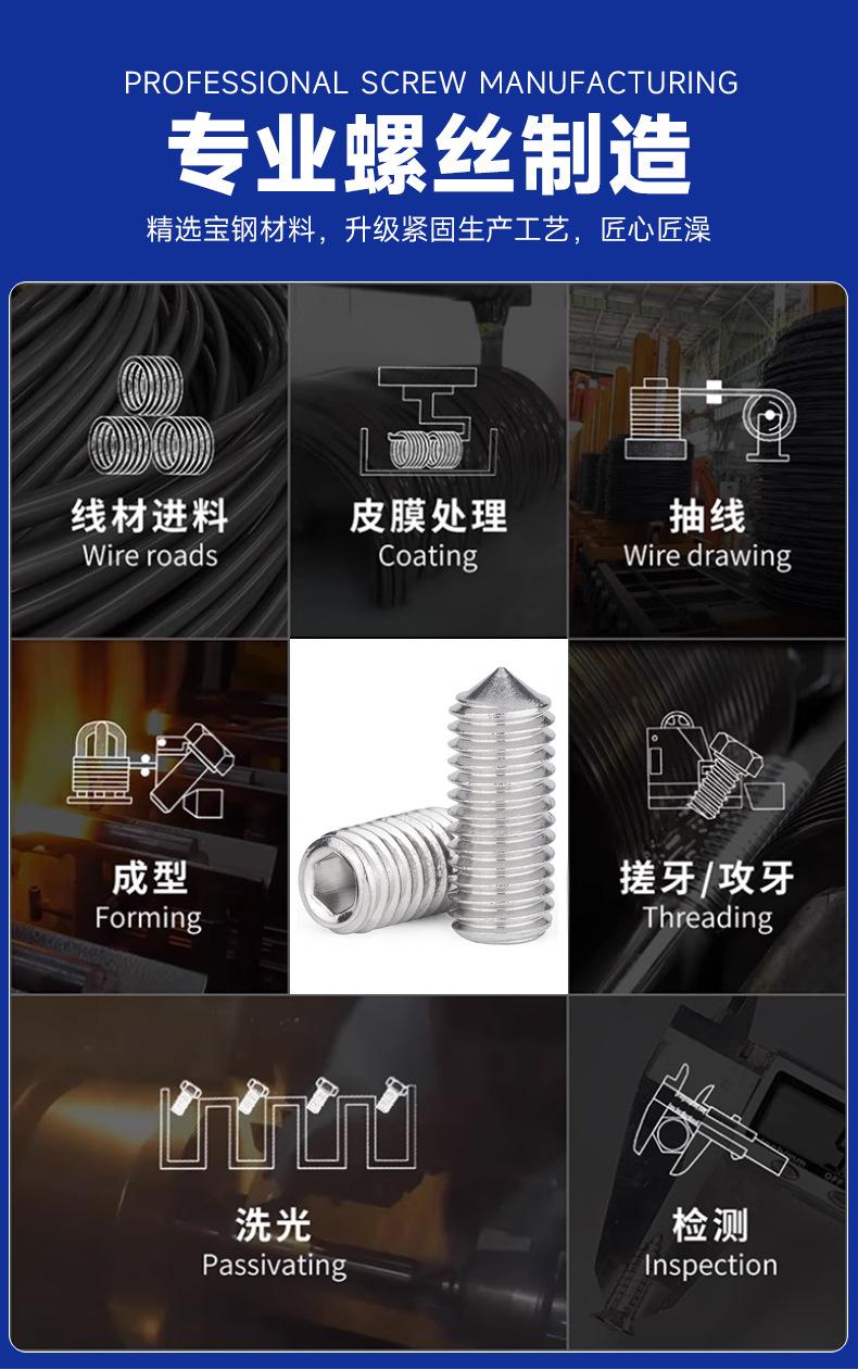Tornillo de cabeza hexagonal de acero inoxidable Jiayou 201, tornillo de máquina con punta sin cabeza, tope de alambre superior M3-M12
