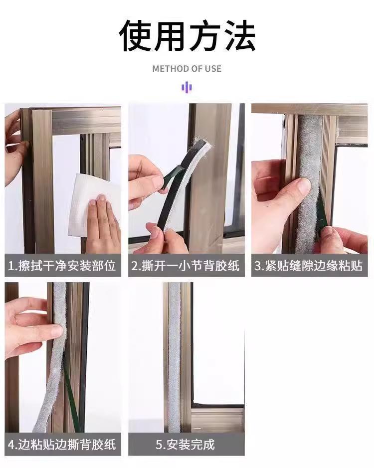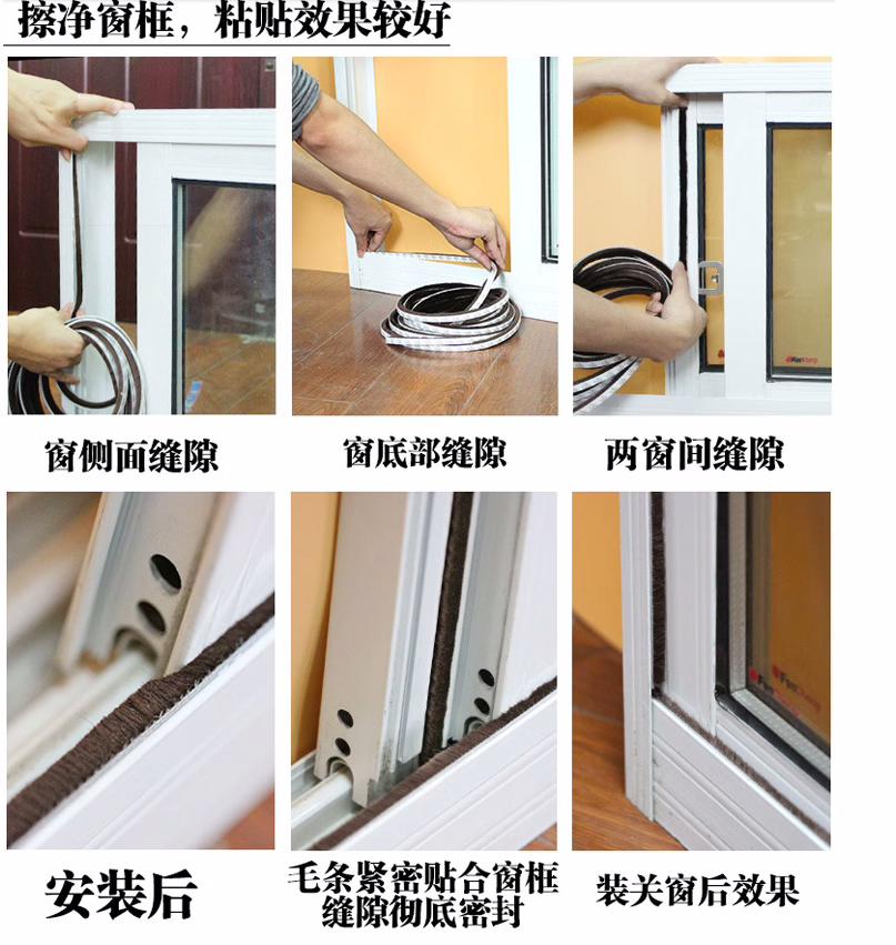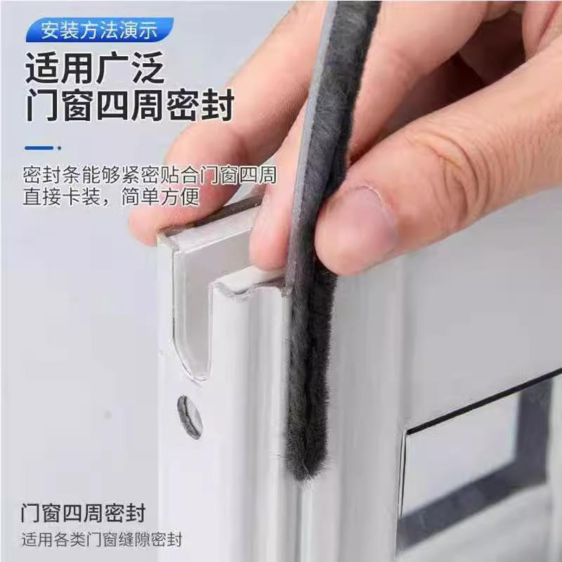 Parte superior de lana con respaldo adhesivo artefacto para parabrisas de ventana parte inferior de puerta a prueba de viento parte superior de lana hueco de ventana de puerta de vidrio corredera fuga de aire parte superior de lana autoadhesiva