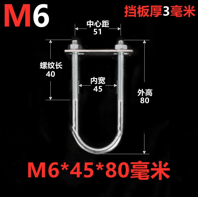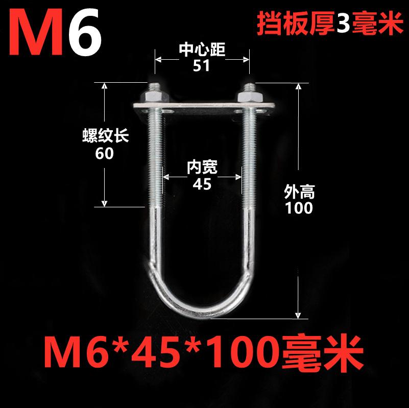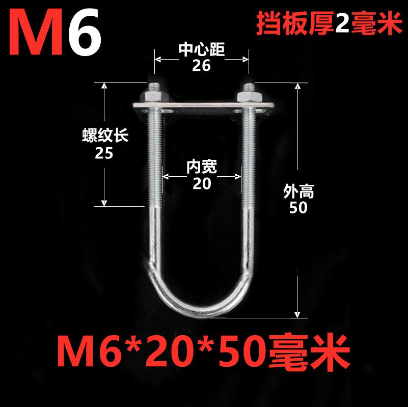 Tornillo alargado en forma de U galvanizado M6 Perno en forma de U Abrazadera de tubo en forma de U Perno de montaje de abrazadera de tubo Hebilla en forma de U Aro en forma de U