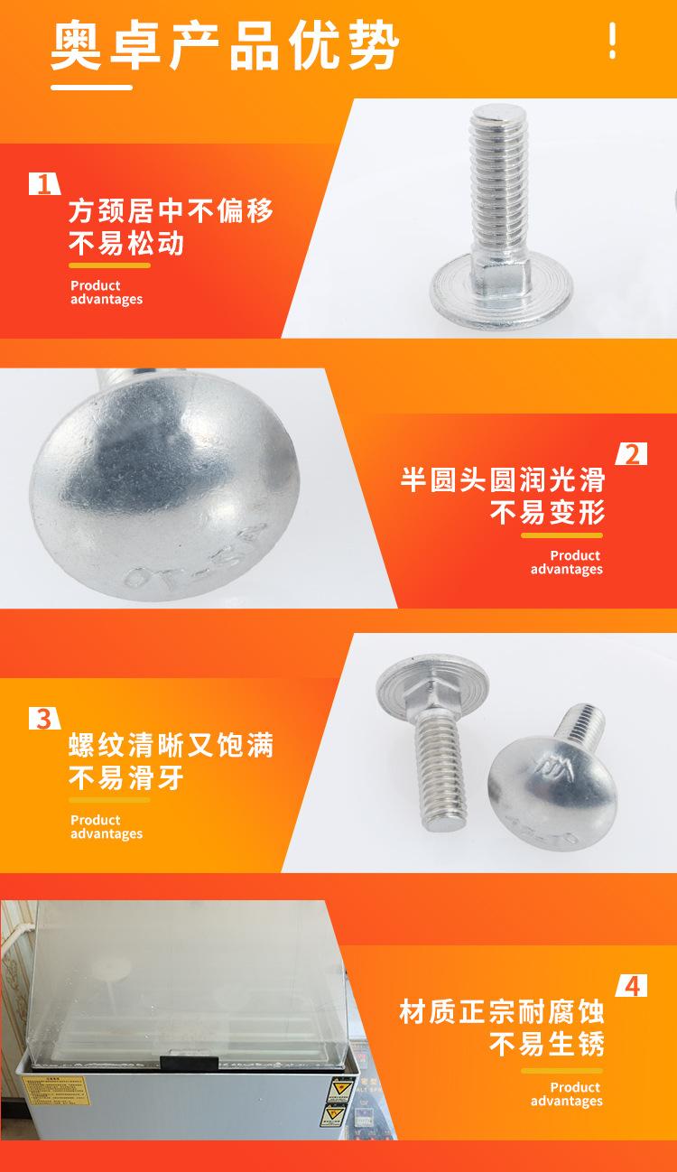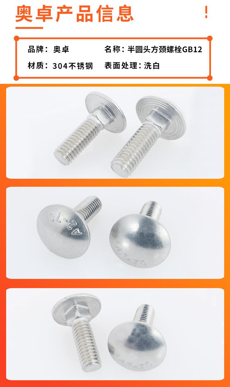Perno de carruaje de acero inoxidable GB 12 304 personalizado de fábrica M6M8, cabeza semicircular, cuello cuadrado, cabeza plana, cabeza redonda, tornillo pequeño