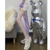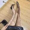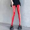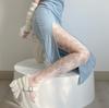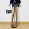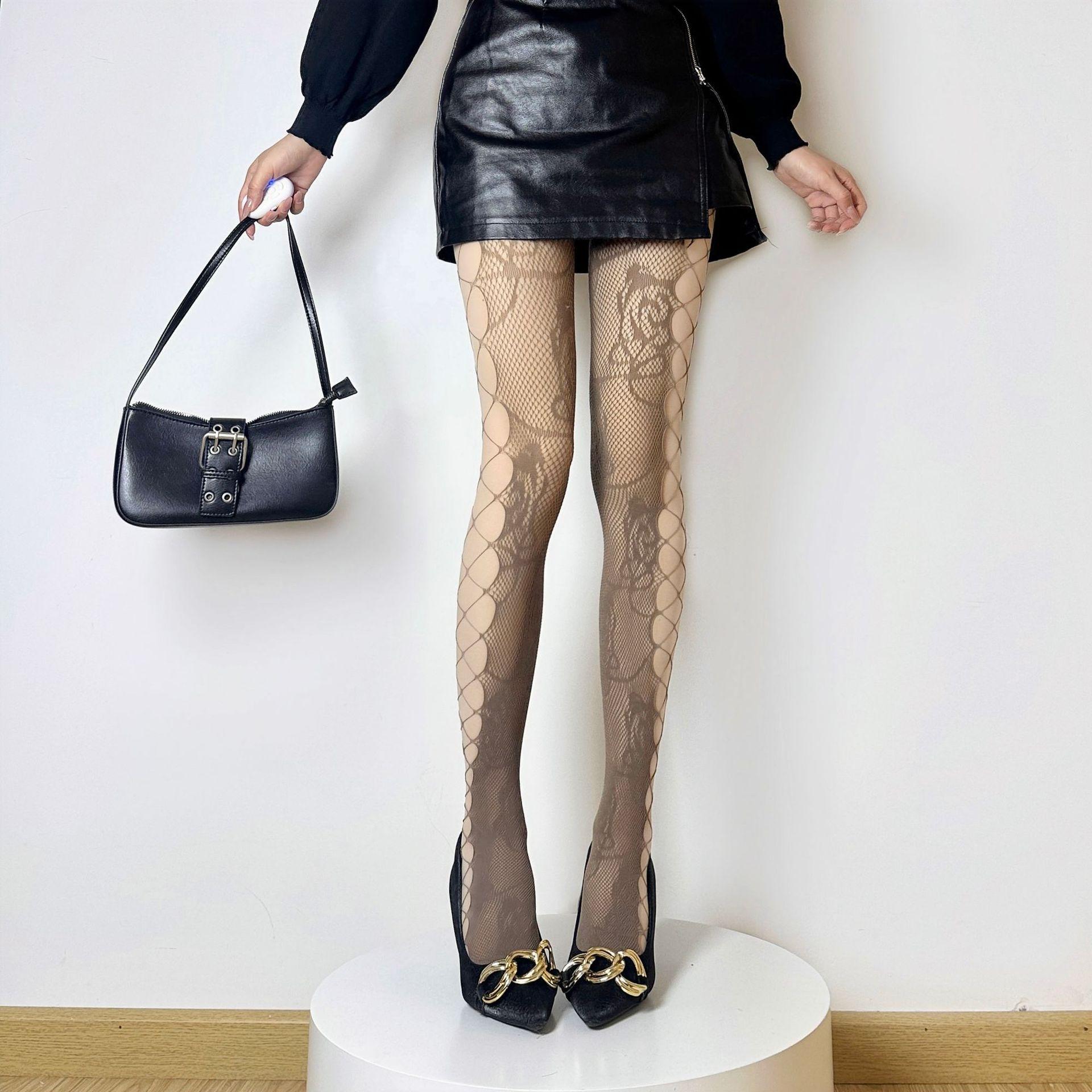 Sexy Spice JK Puro Negro Seda Rosa Jacquard Lado Cruz Malla Huecos Pantalones Medias de Red Medias Finas