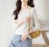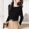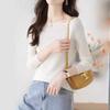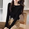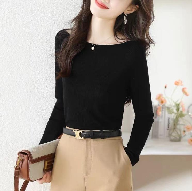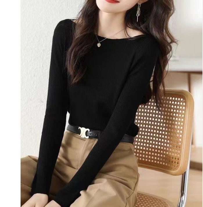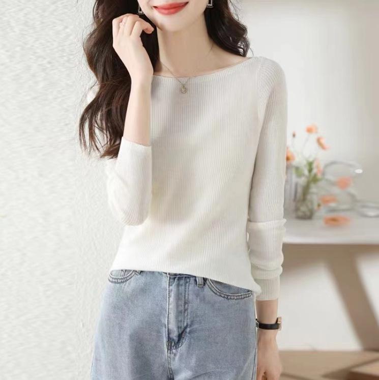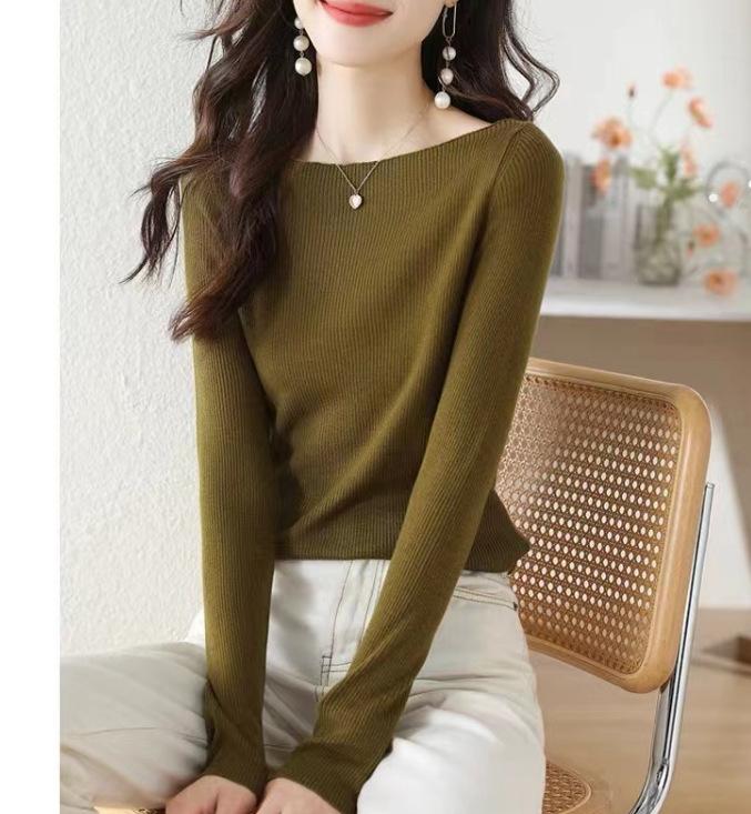 Suéter de cuello barco para mujer 2025 Nuevo estilo de primavera y otoño Suéter delgado Camisa interior de manga larga Top corto