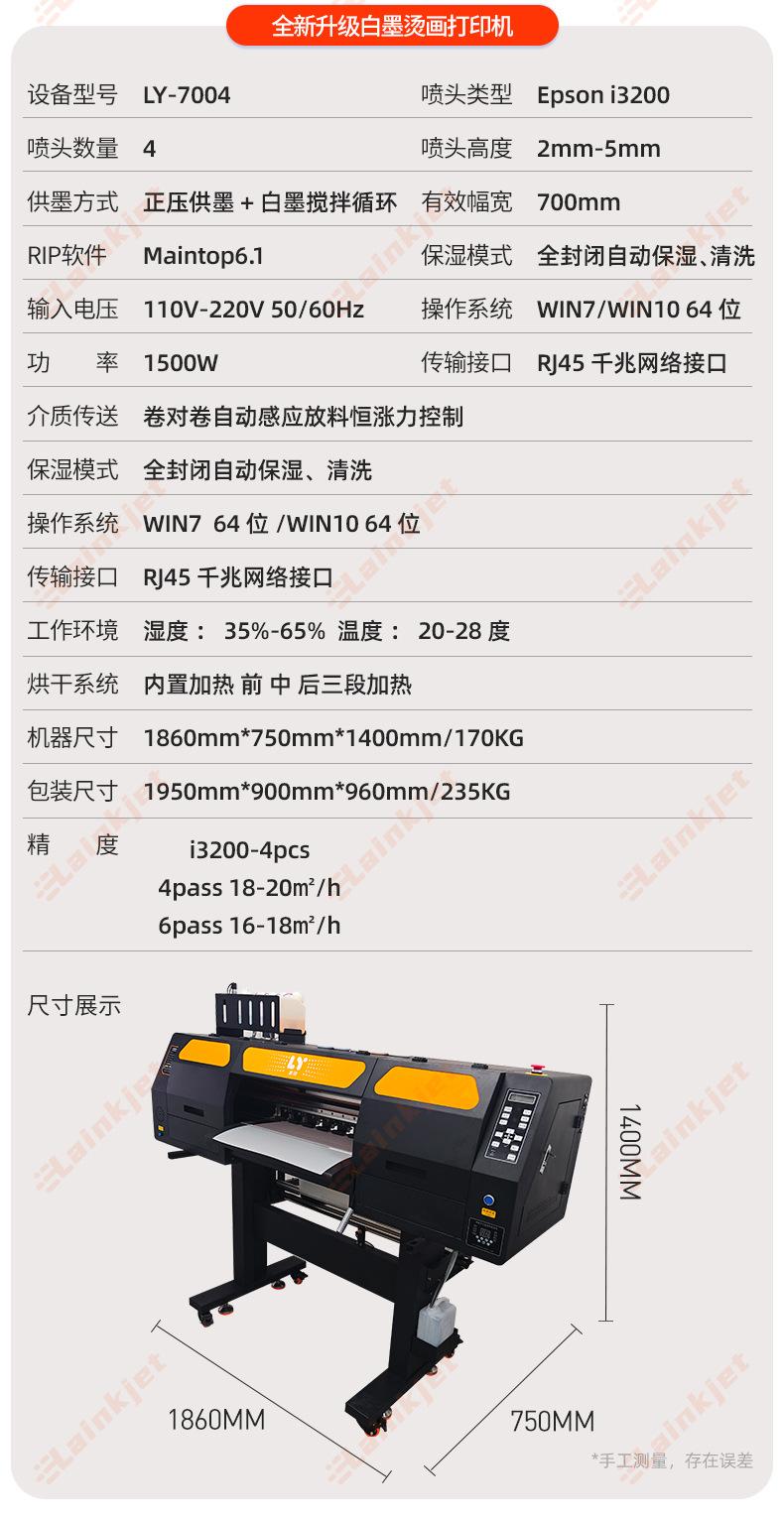 Impresora DTF transfronteriza, impresora de estampado en caliente, impresión de prendas, impresora offset digital de tinta blanca de 4 boquillas