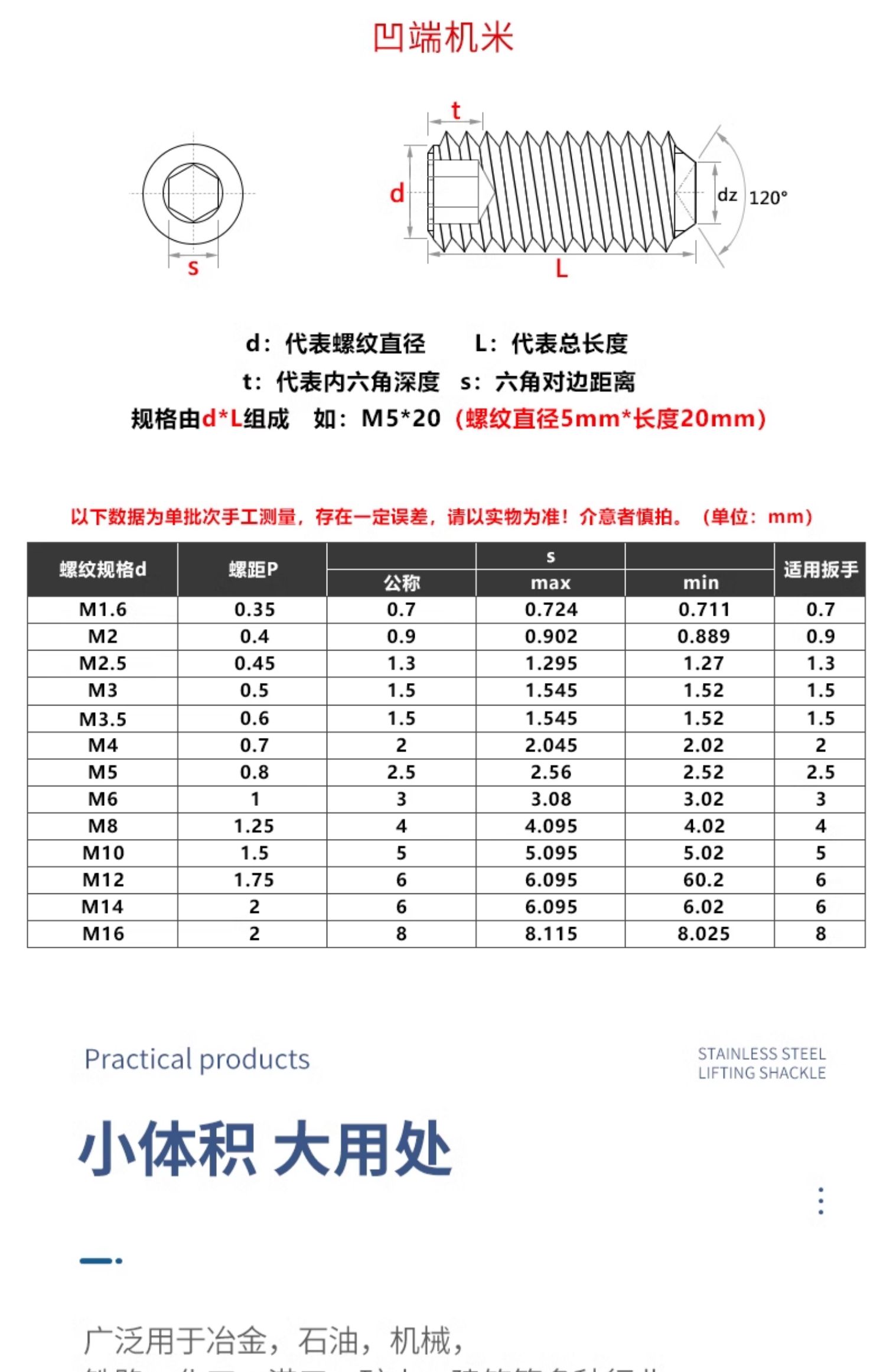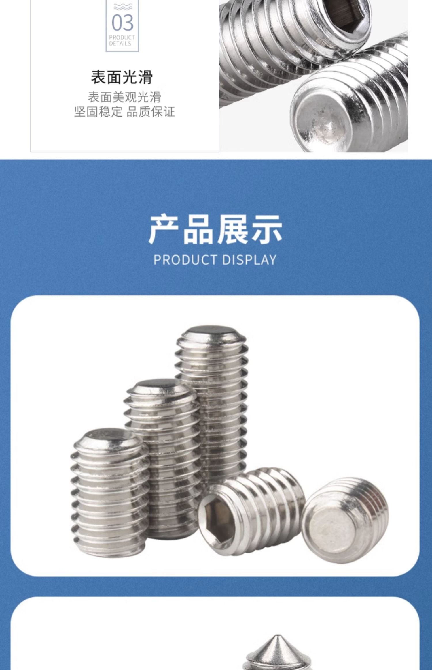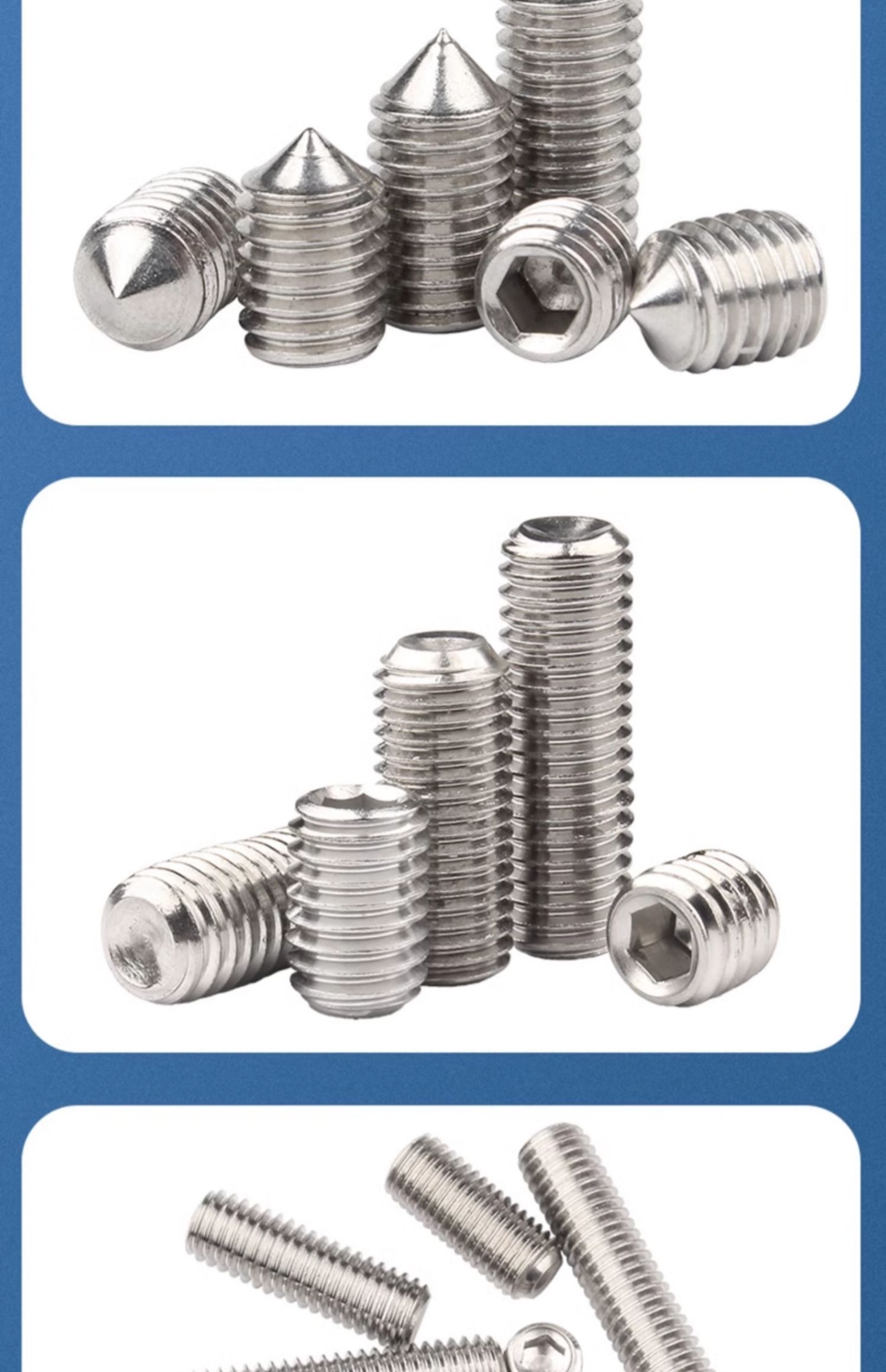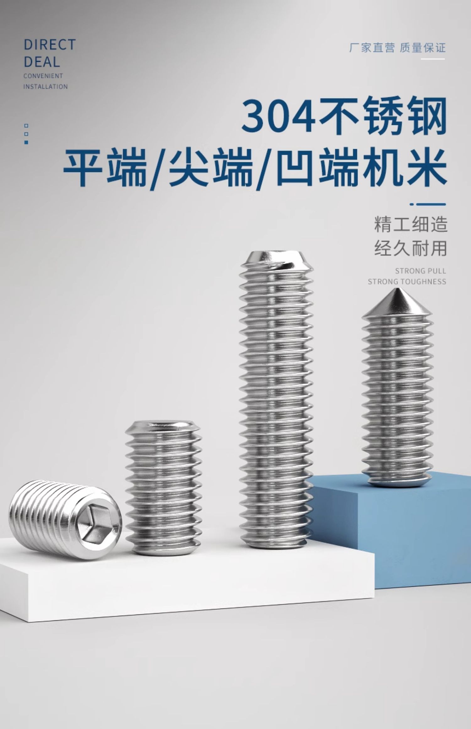 Tornillo de fijación de punta plana con extremo cóncavo de acero inoxidable 304, tornillo de máquina sin cabeza con enchufe hexagonal, perno de tope de alambre superior