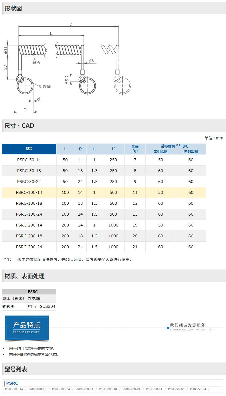 Línea en espiral NBK para pasador de bloqueo PSRC, llavero de acero inoxidable que evita la pérdida del pasador de posicionamiento, pasador de resorte, suministro directo de fábrica