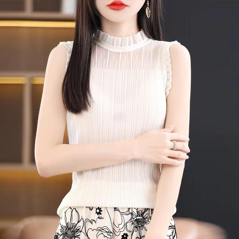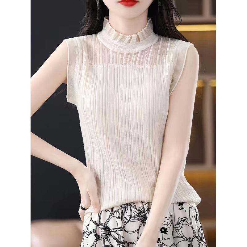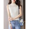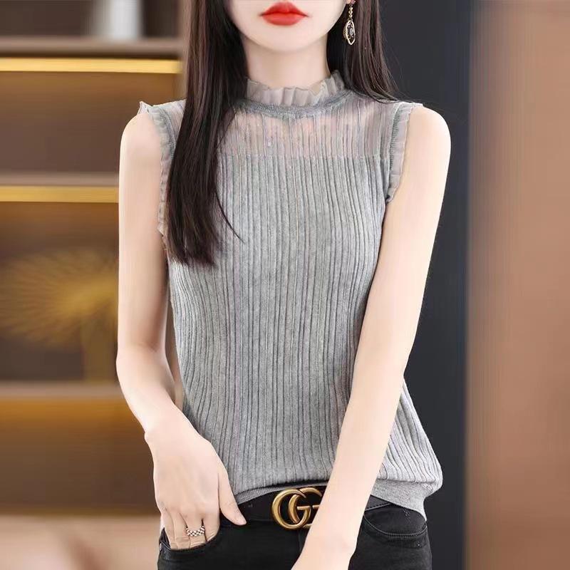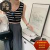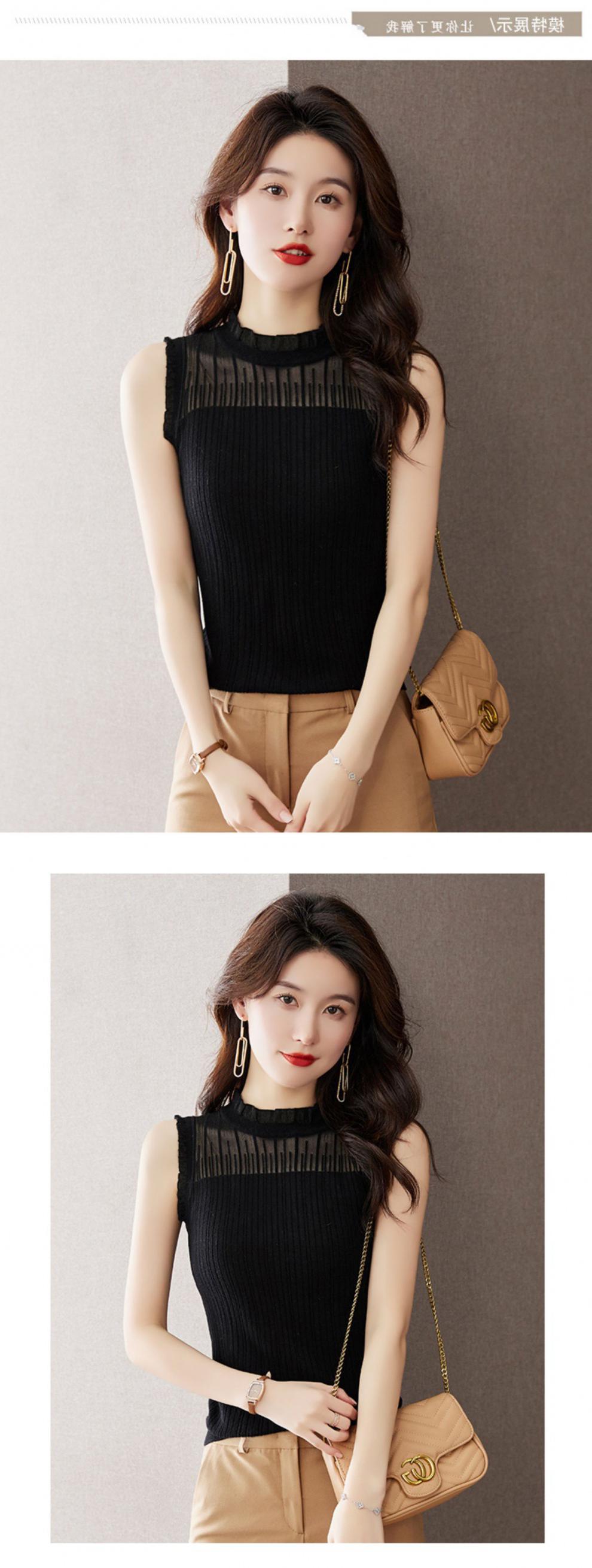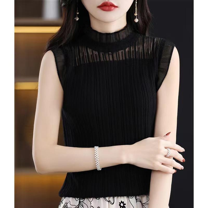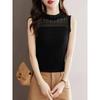 Camisola negra para mujer, interior, primavera y verano 2023, nueva camiseta francesa corta de punto, ajustada, sin mangas.
