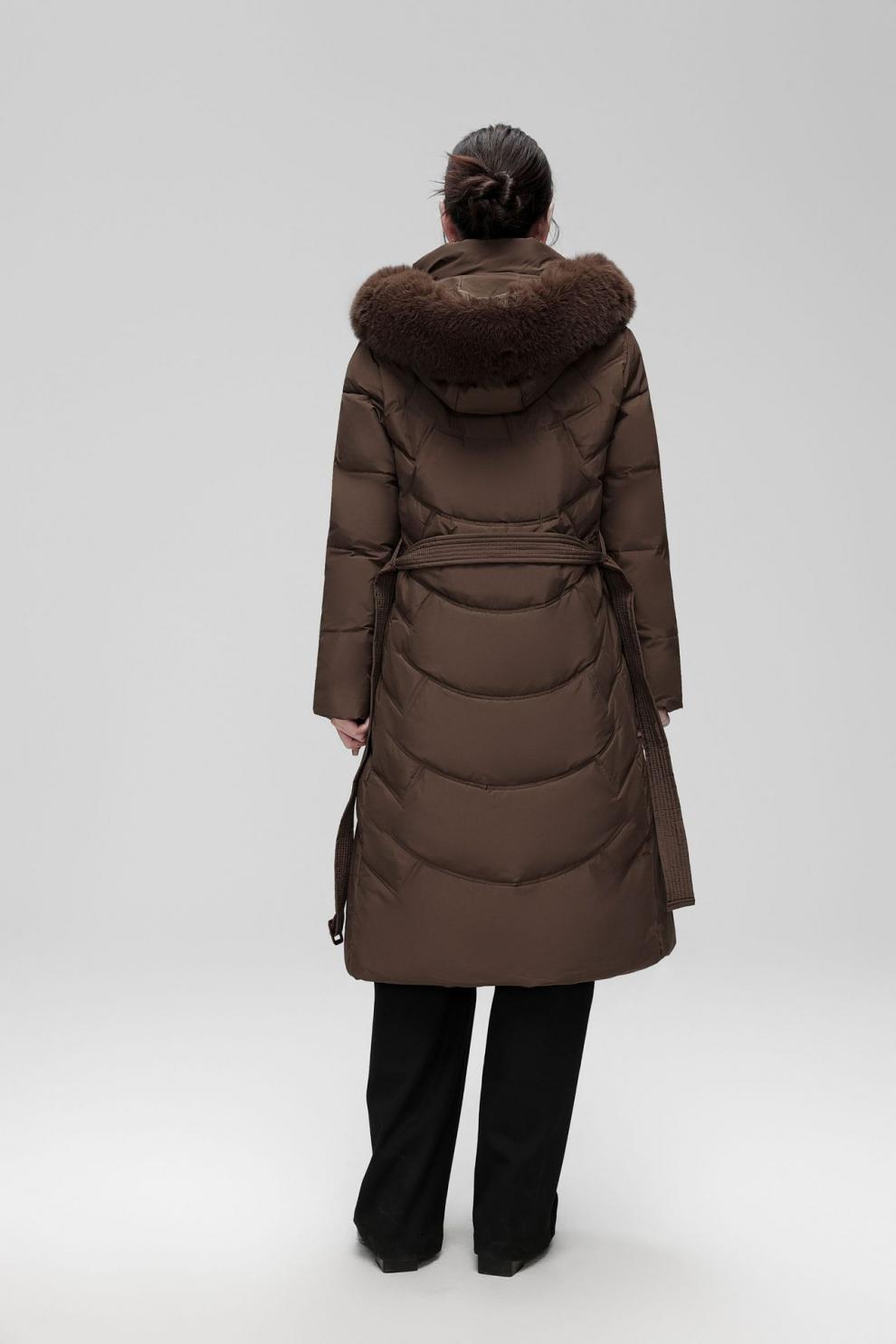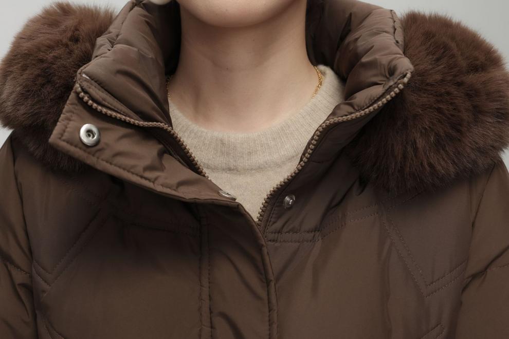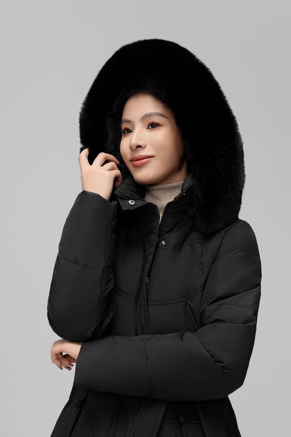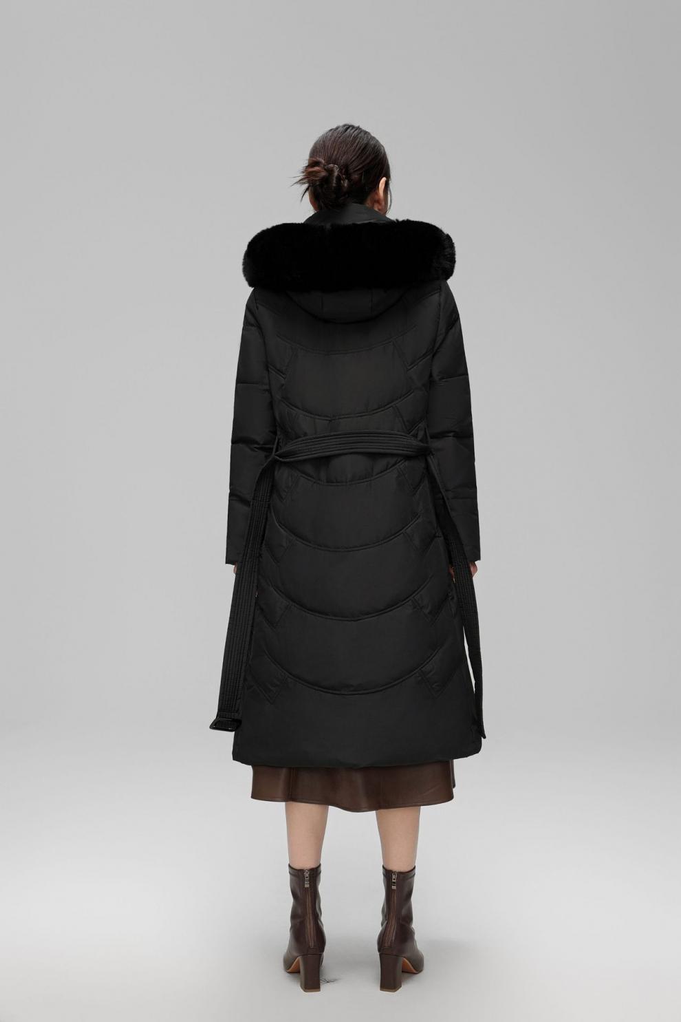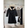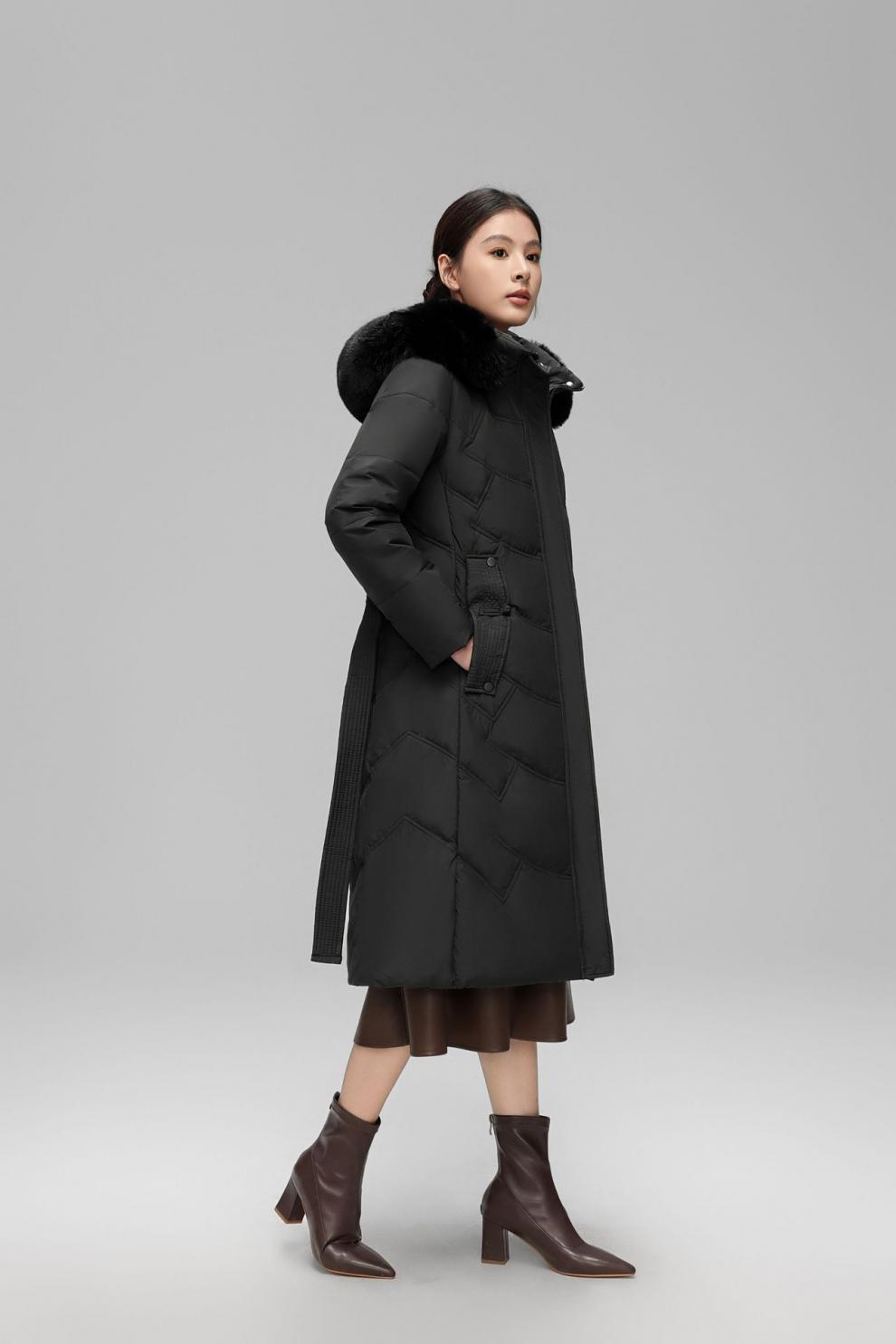 Chaqueta de plumón de comercio exterior para mujer, de longitud media hasta la rodilla, con cuello de piel grande, cintura ajustada, plumón de pato blanco, nuevo abrigo de invierno 2024