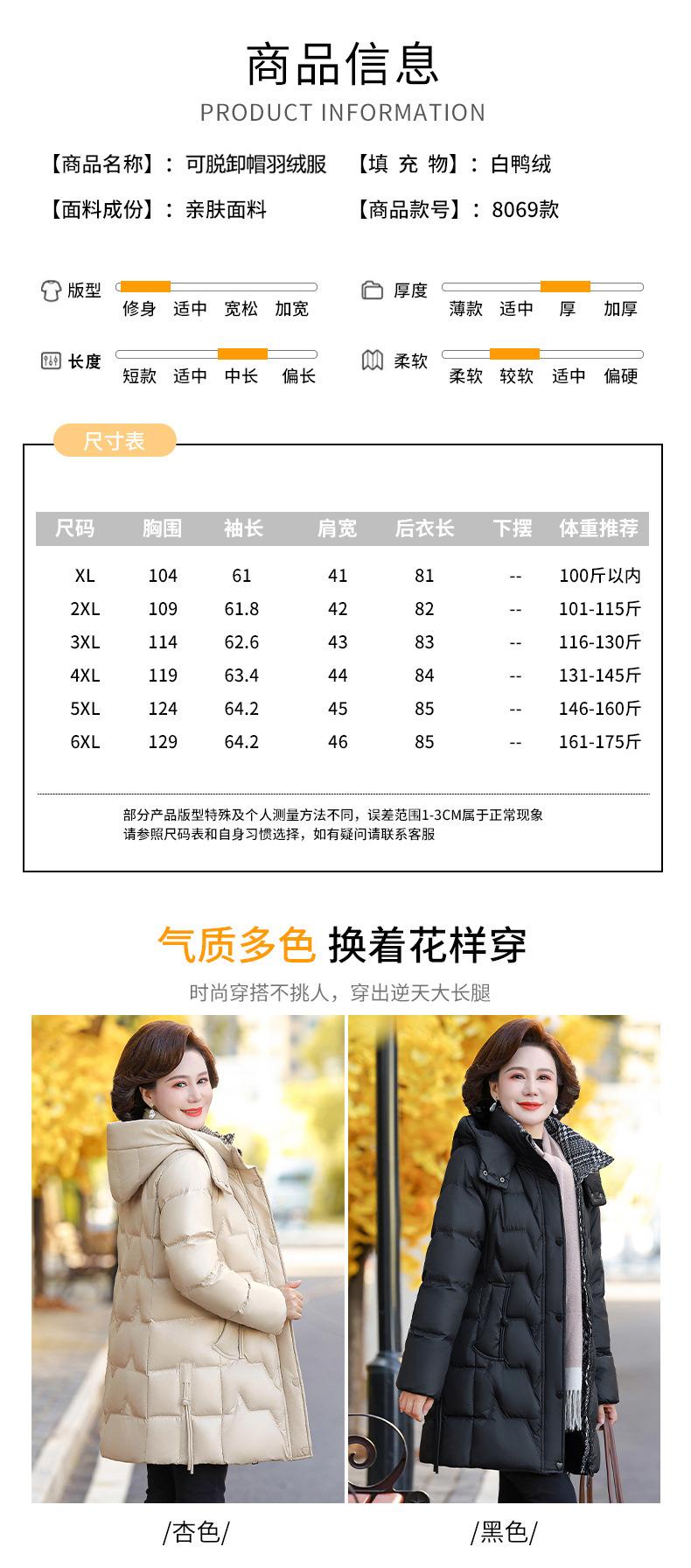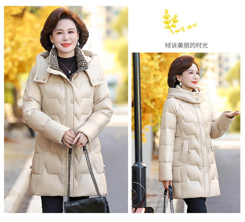 Chaqueta de plumón con capucha para mujer, nueva chaqueta de plumón de pato blanca cosida para abuela, de talla grande, para invierno, de talla mediana y larga, 2024