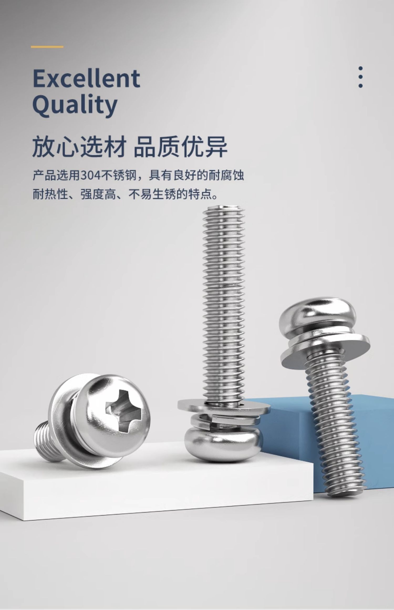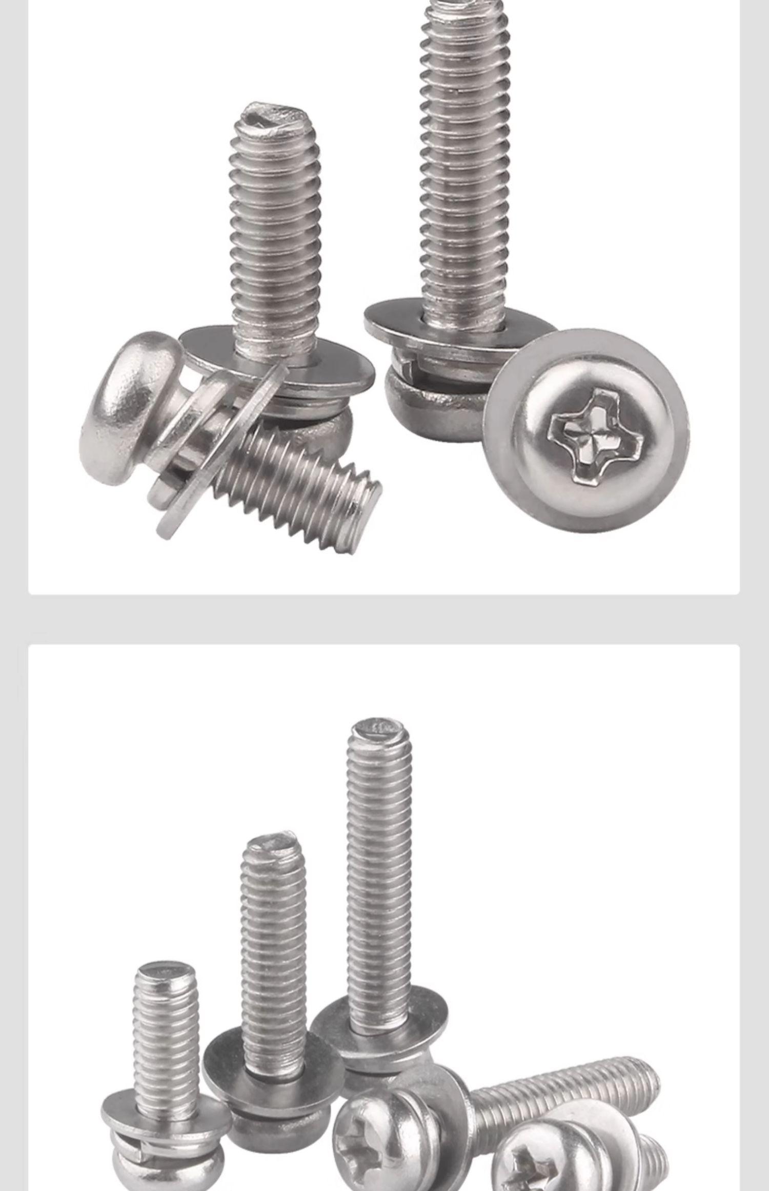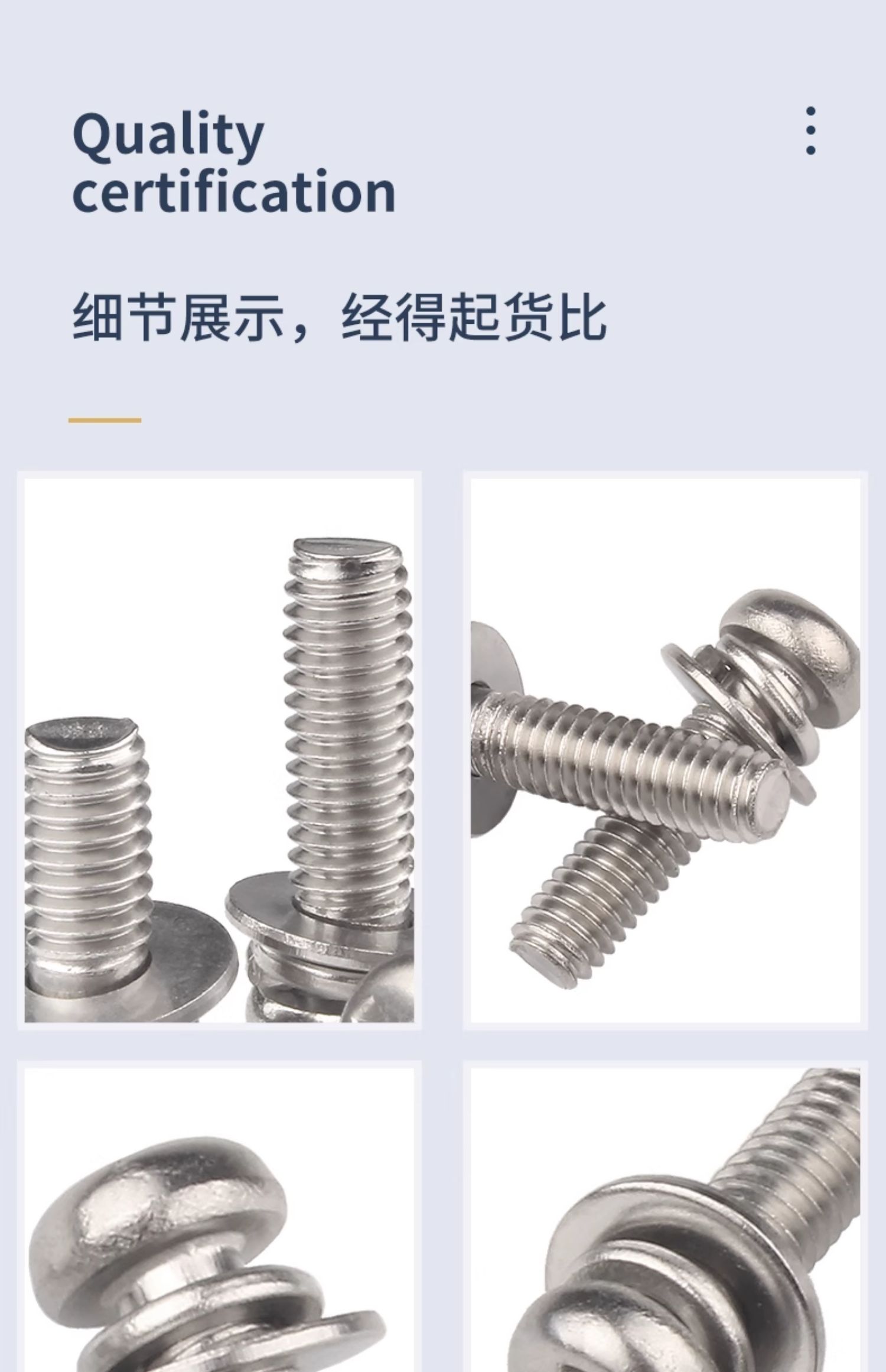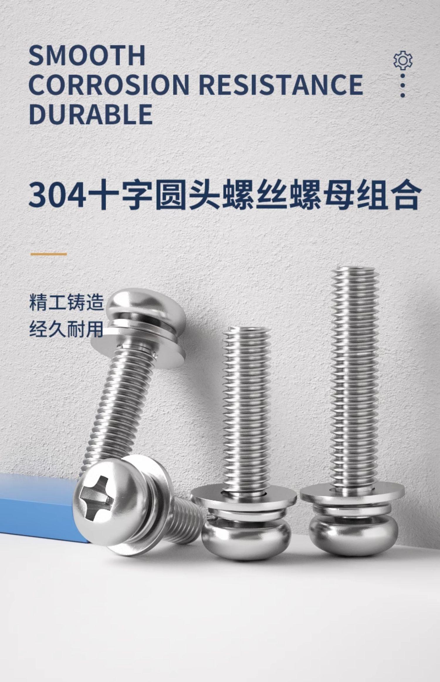 Tornillo de cabeza redonda cruzada de acero inoxidable 304, tres tornillos de combinación, perno de cabeza plana, cabeza redonda con tornillo de combinación de almohadilla M3M4M5M6