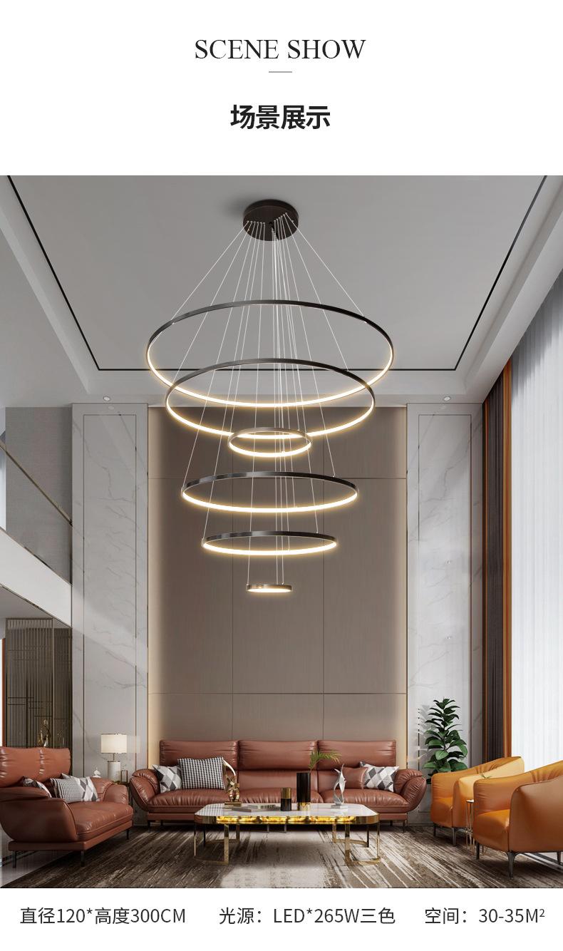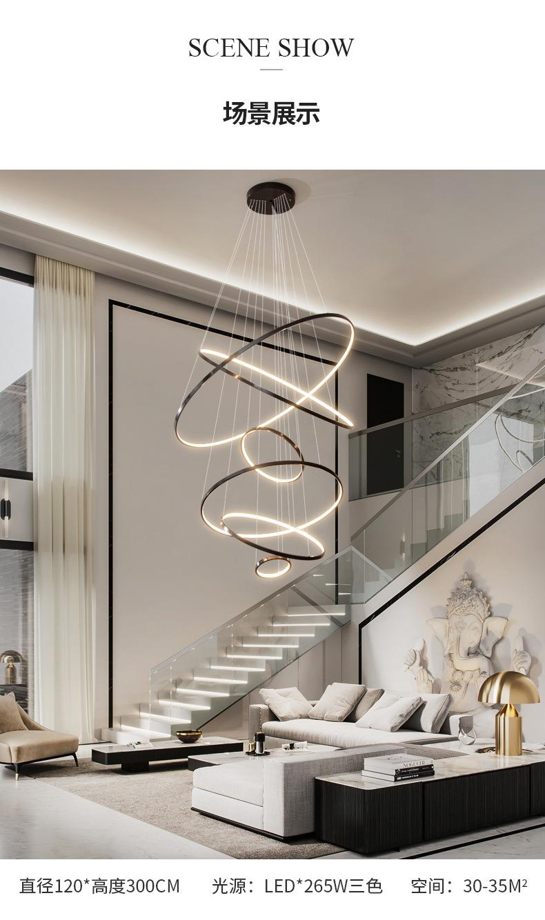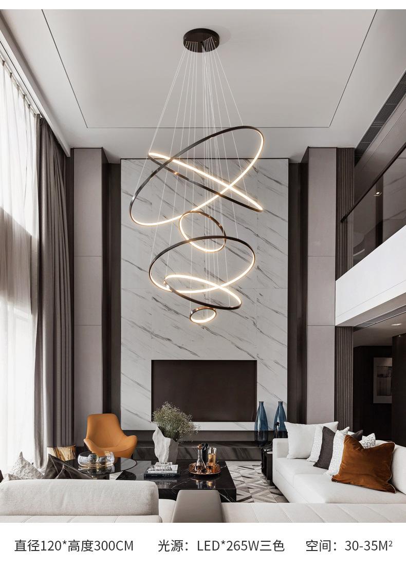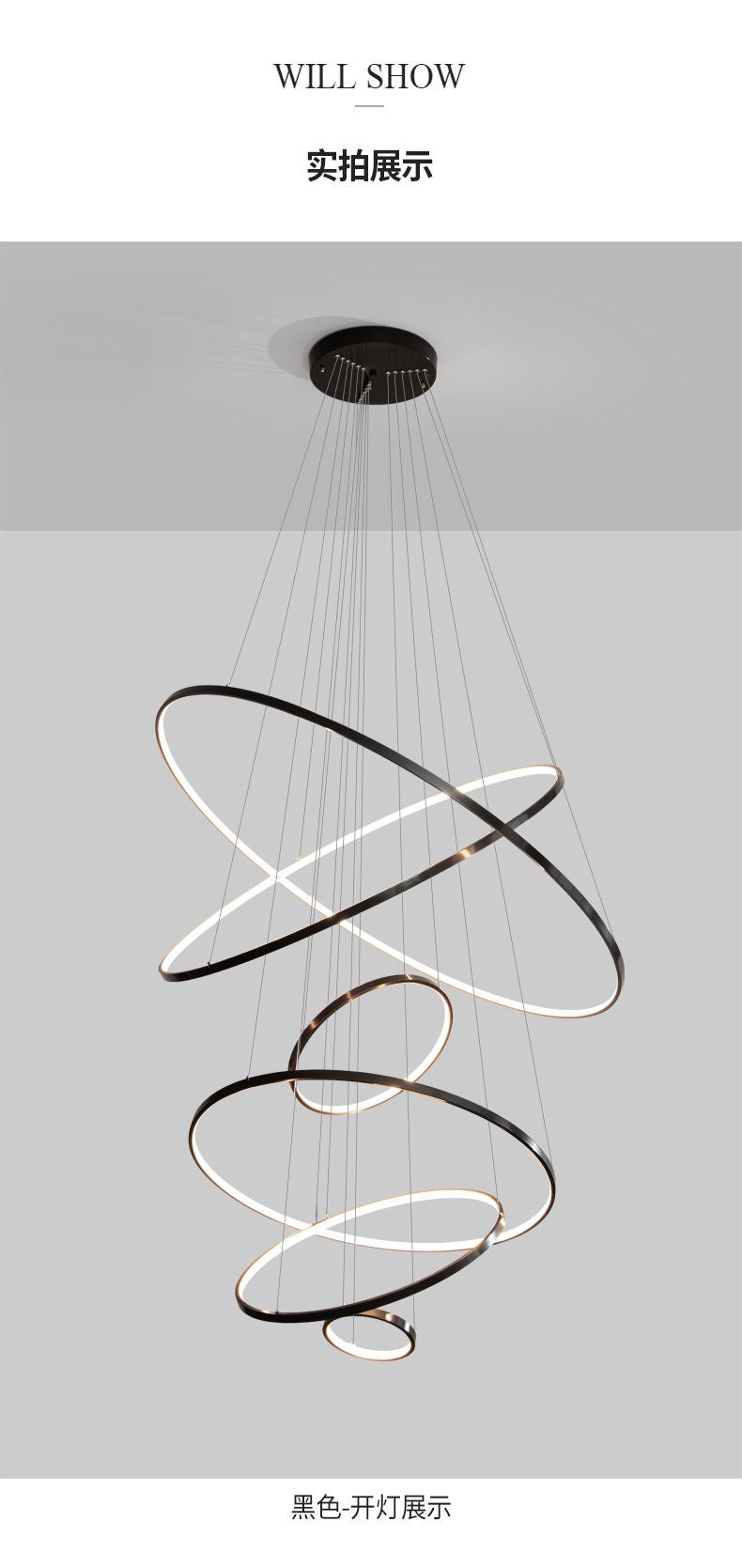 Lámpara de araña circular minimalista, moderna y minimalista, para sala de estar, dormitorio, lámpara de cobre para sala de exposiciones, lámpara de araña para escalera, lámpara de combinación de anillo