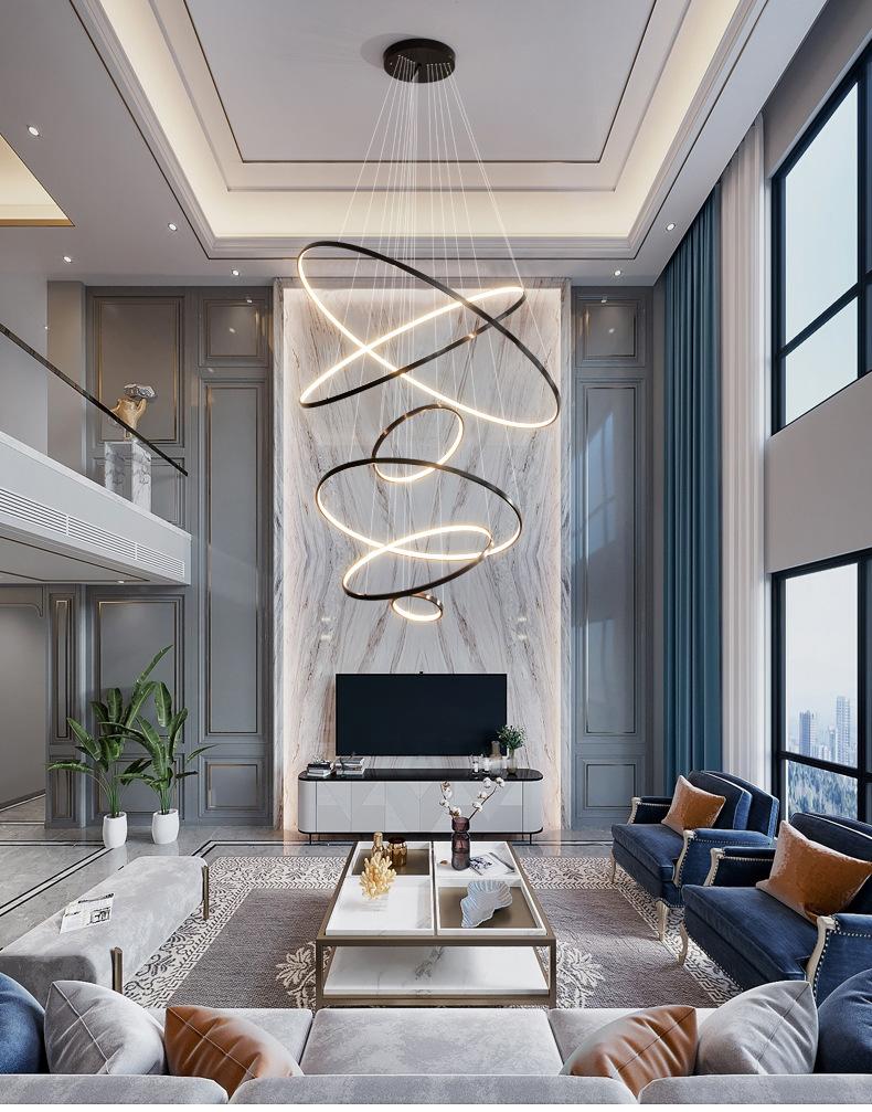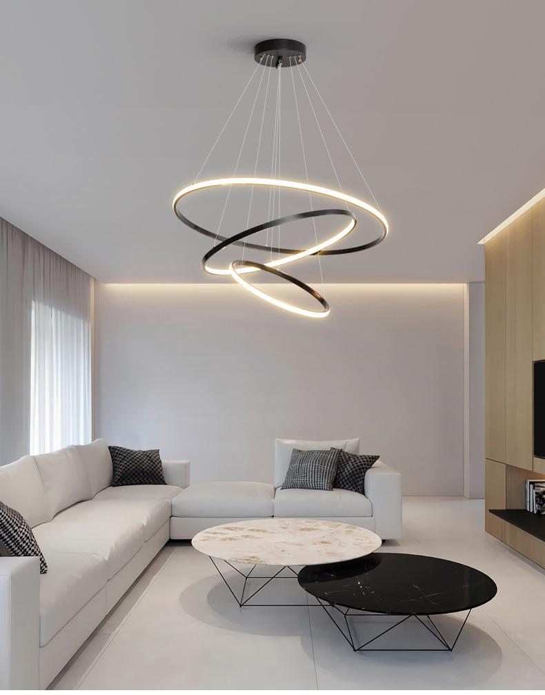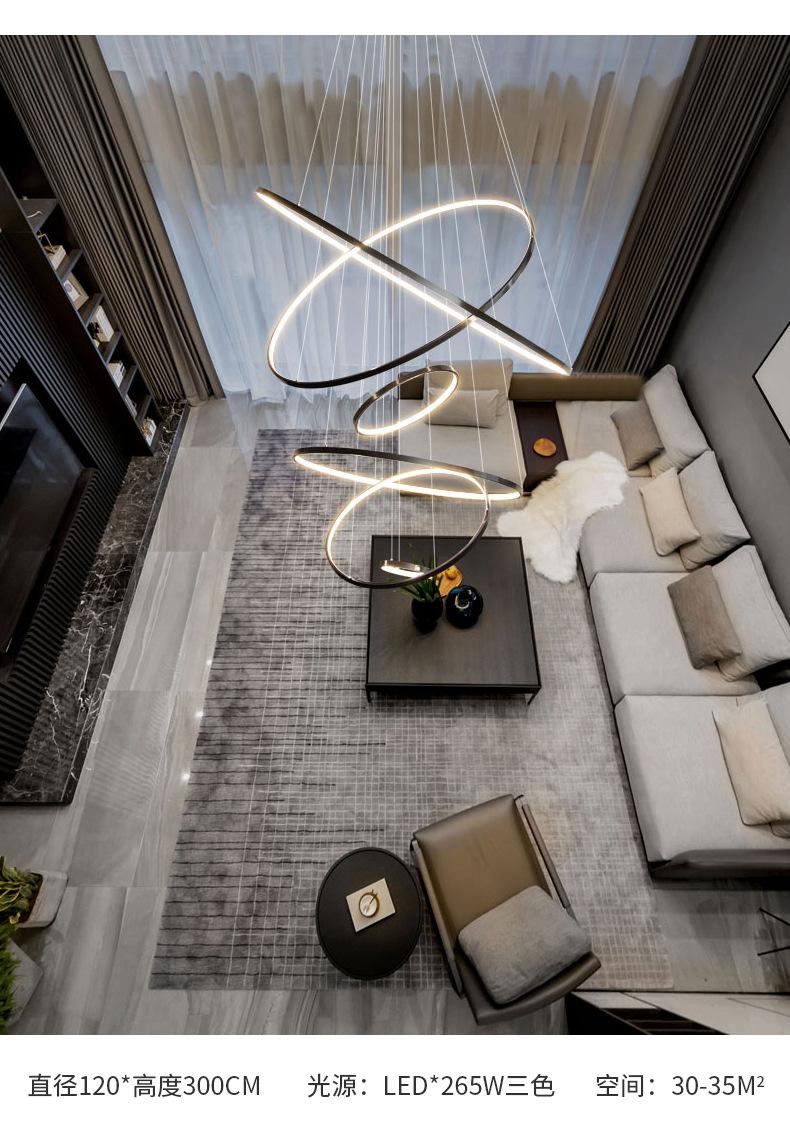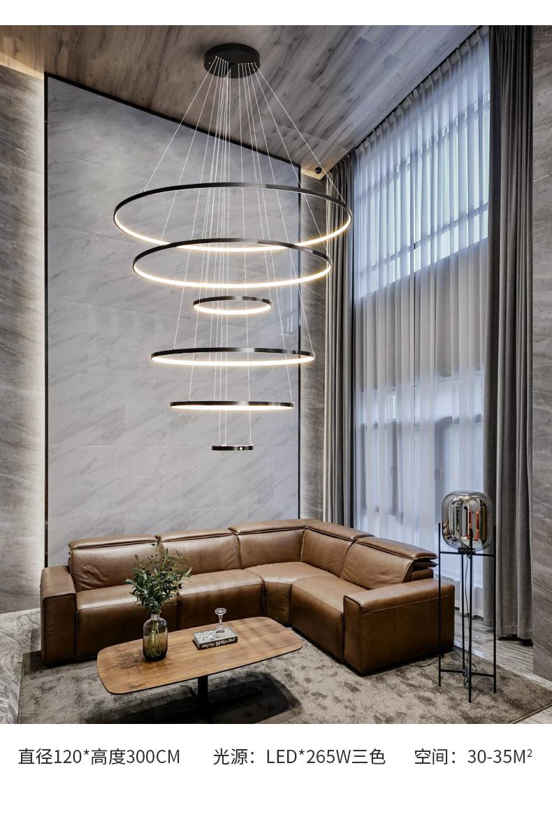 Lámpara de araña circular minimalista, moderna y minimalista, para sala de estar, dormitorio, lámpara de cobre para sala de exposiciones, lámpara de araña para escalera, lámpara de combinación de anillo