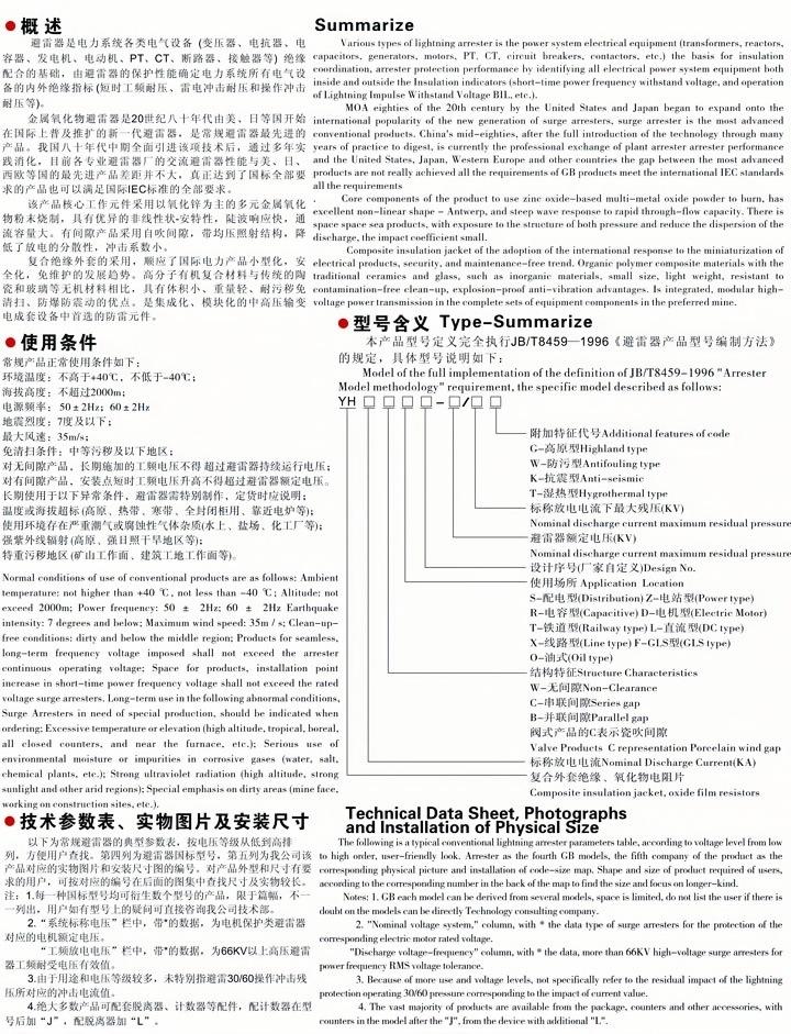 Tipo de central eléctrica:YH5WZ-7.6/27 YH5WZ-10/27 YH5CZ-7.6/24