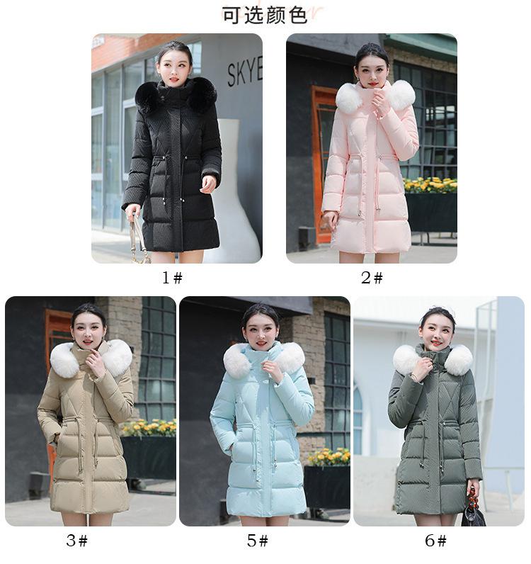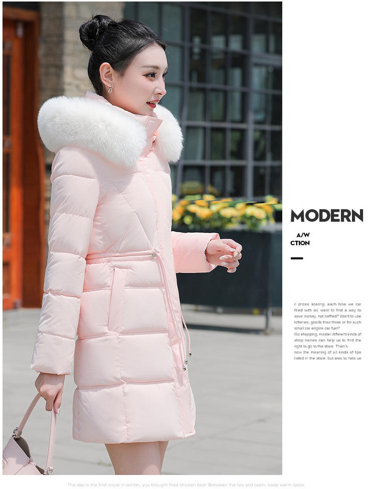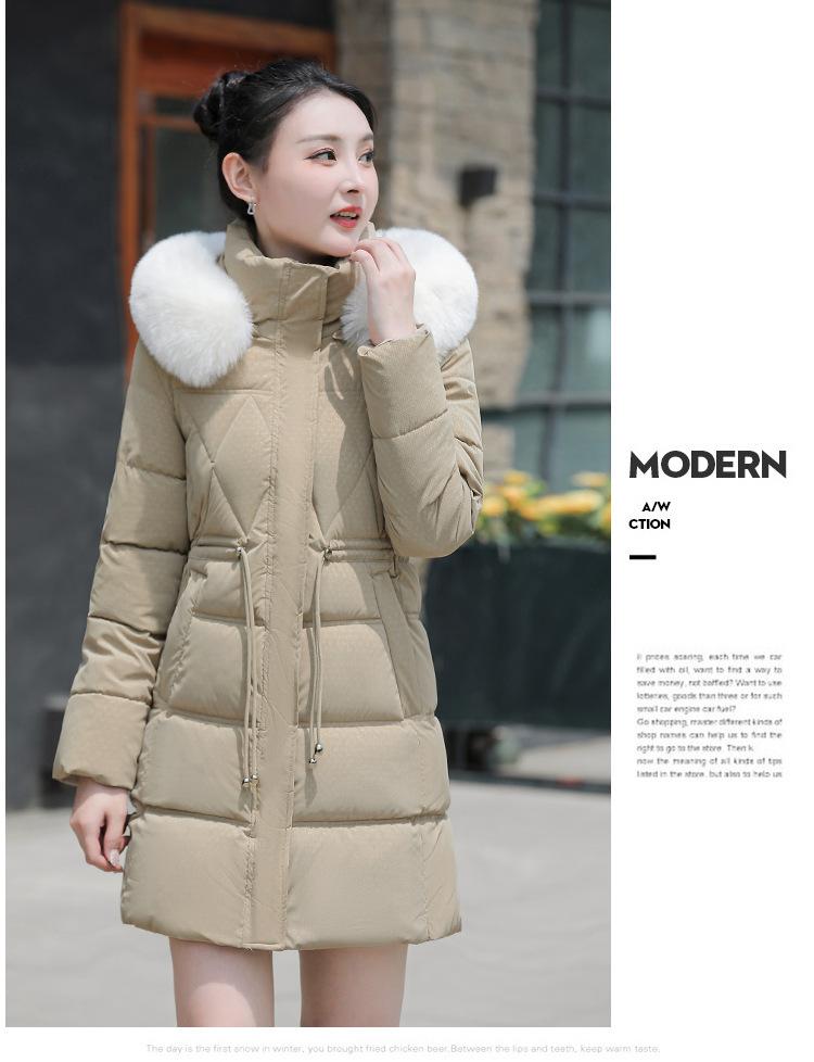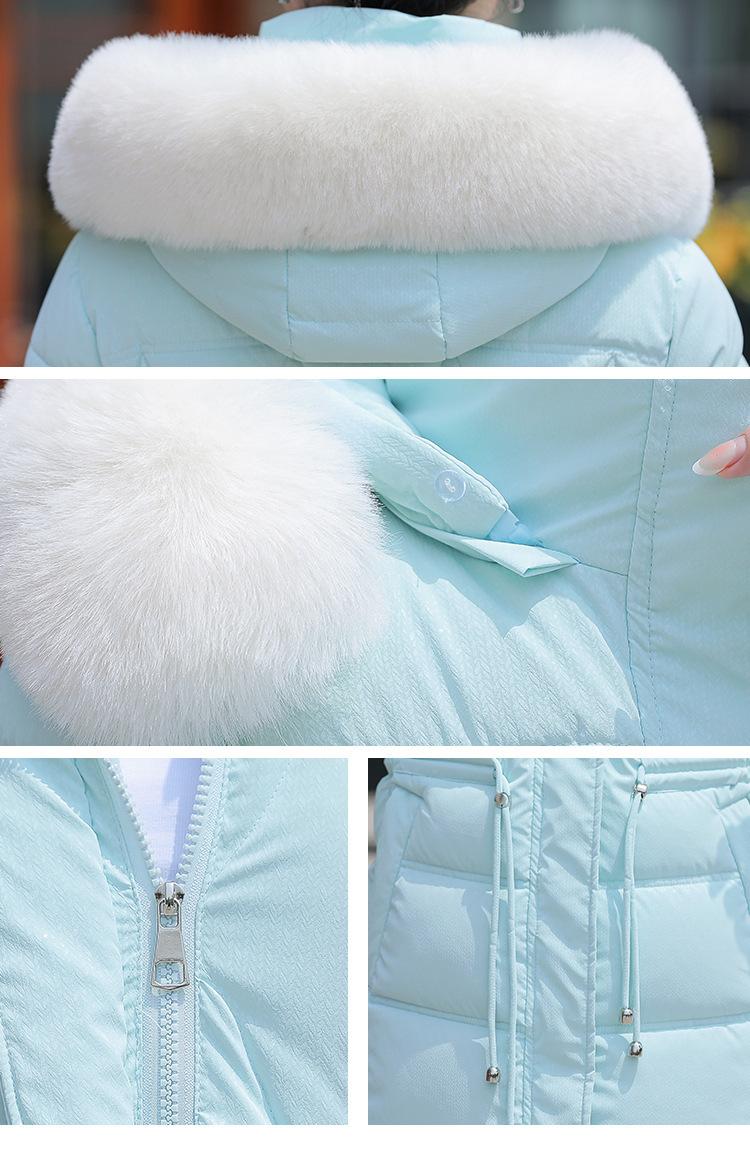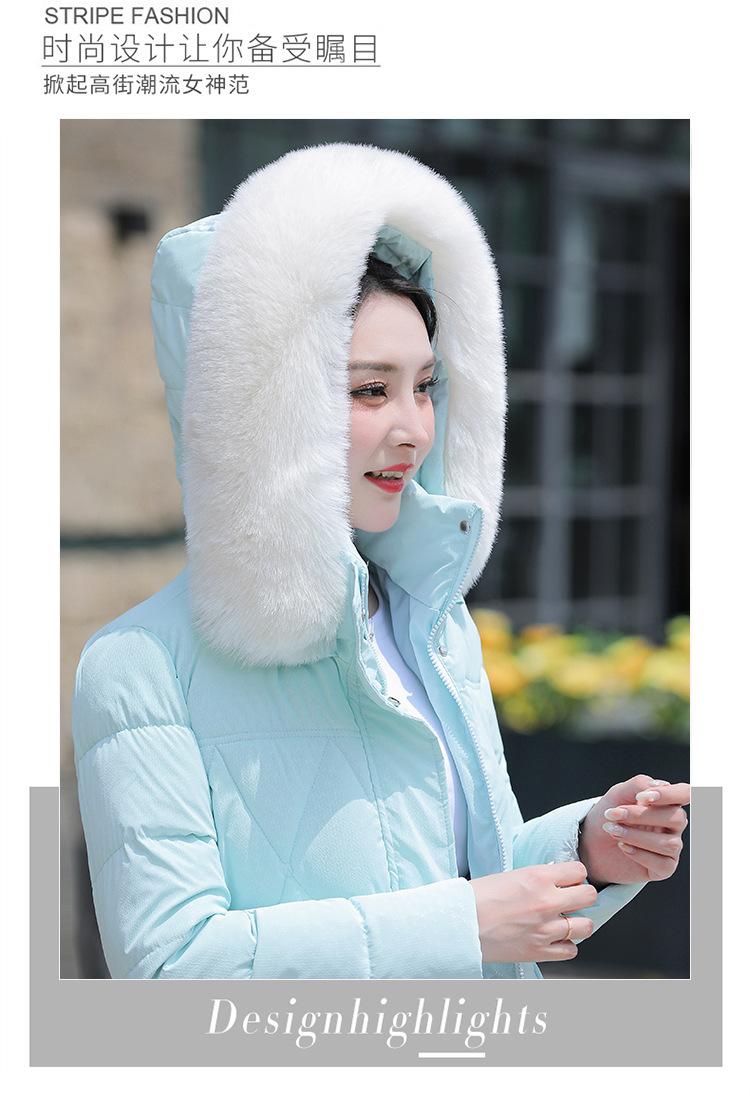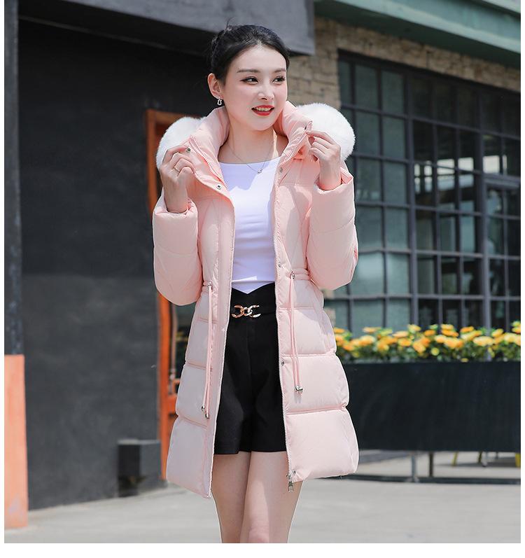 Chaqueta acolchada de algodón 2024 para mujer, de longitud media, ajustada, con cuello de piel y capucha, para otoño e invierno.