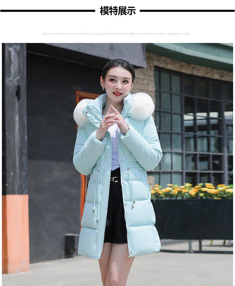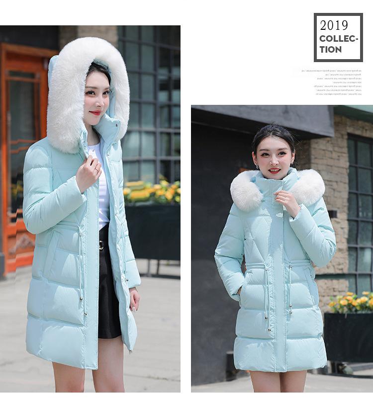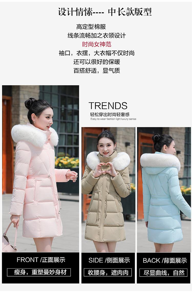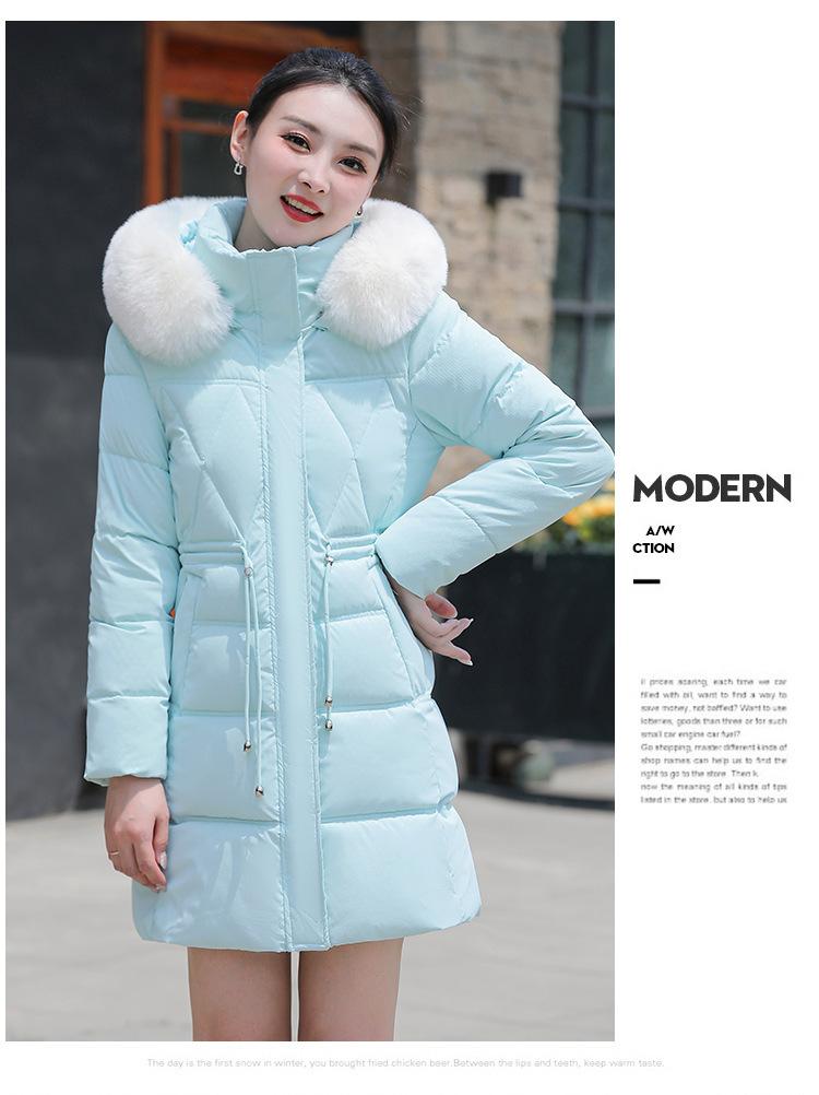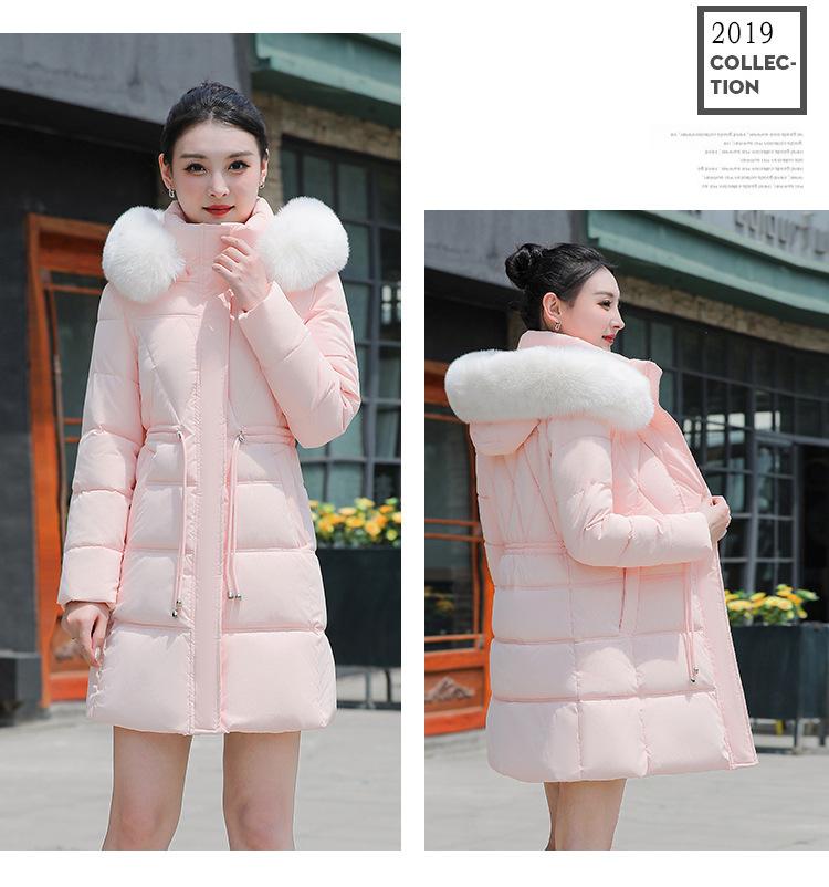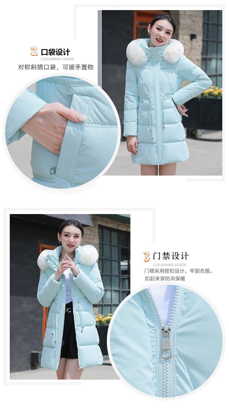 Chaqueta acolchada de algodón 2024 para mujer, de longitud media, ajustada, con cuello de piel y capucha, para otoño e invierno.