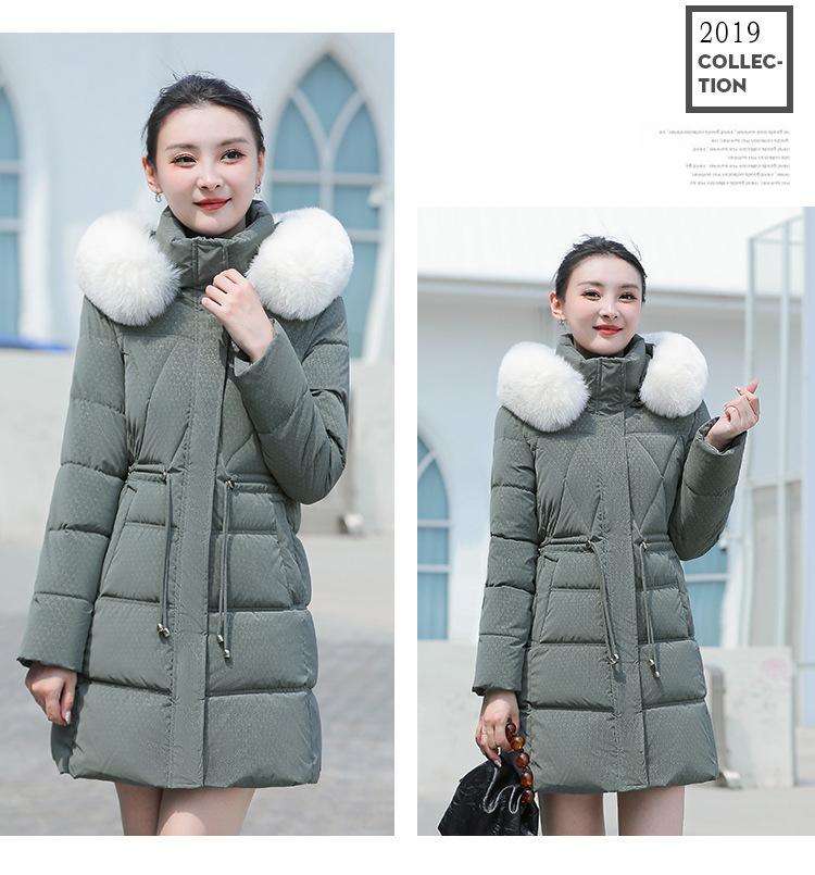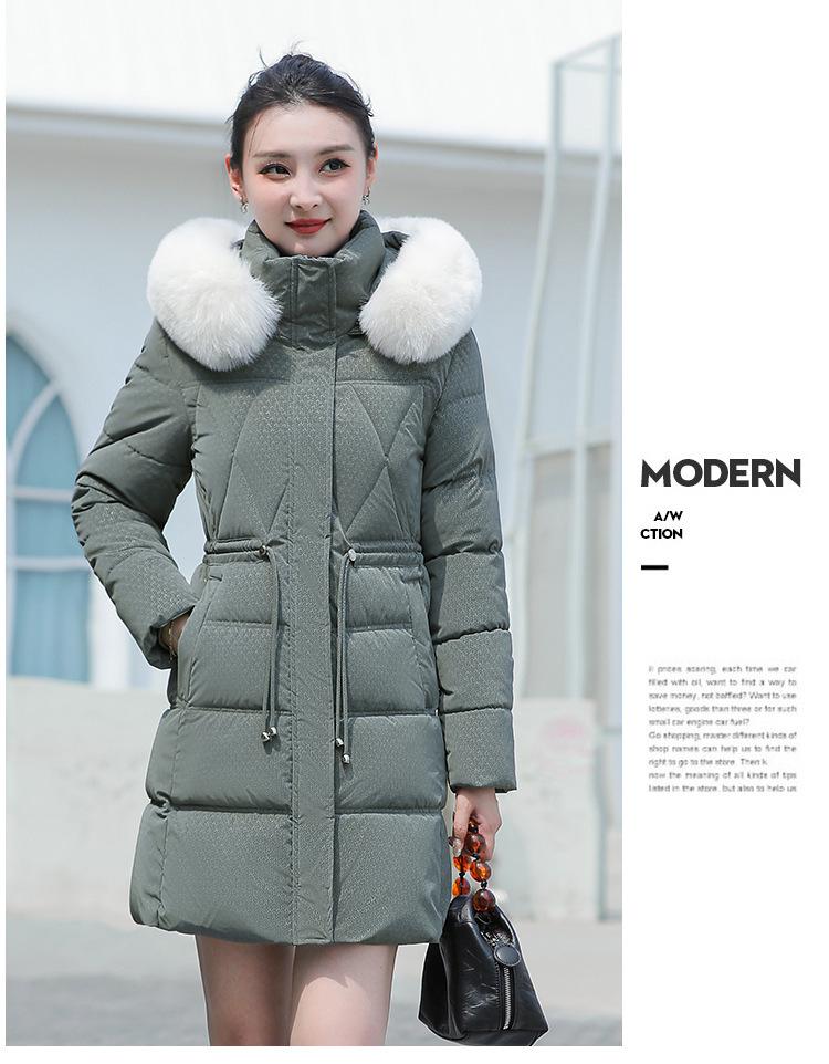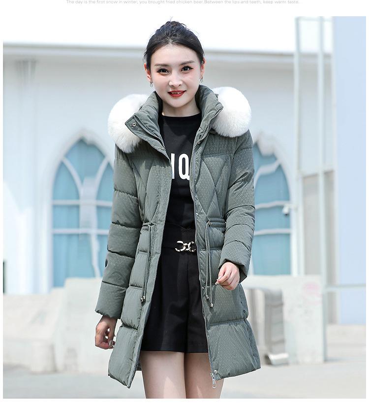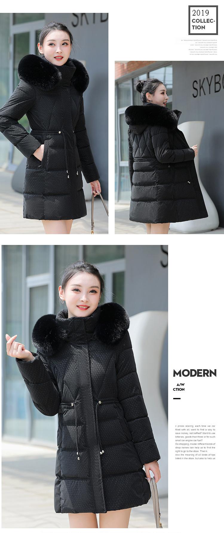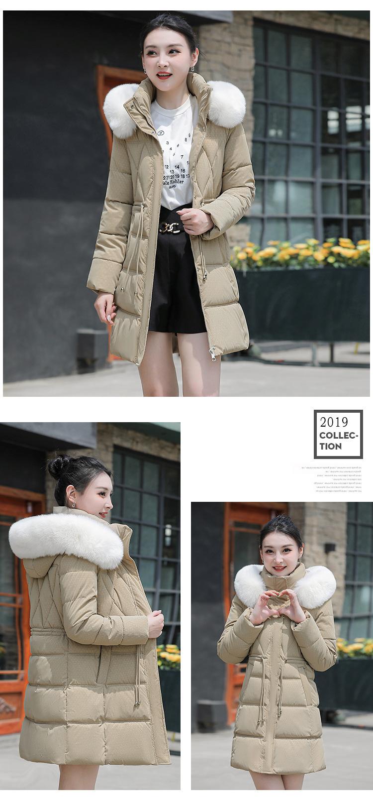 Chaqueta acolchada de algodón 2024 para mujer, de longitud media, ajustada, con cuello de piel y capucha, para otoño e invierno.
