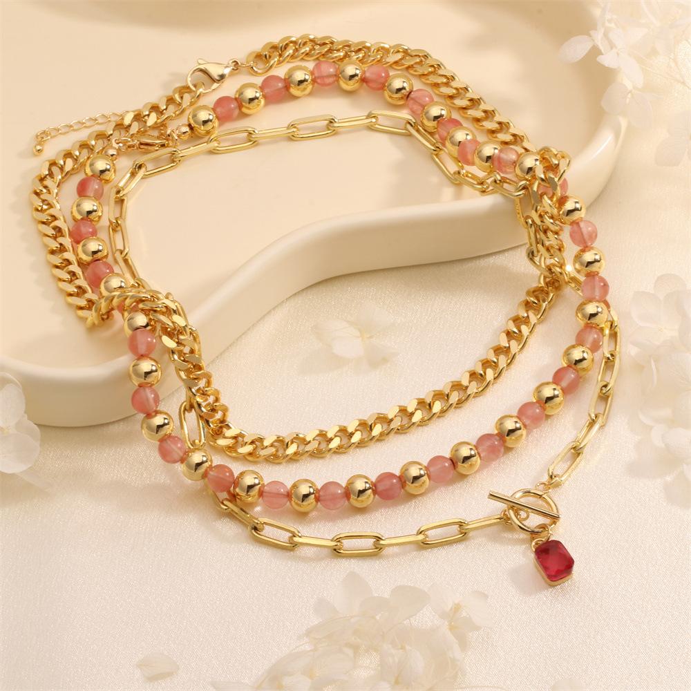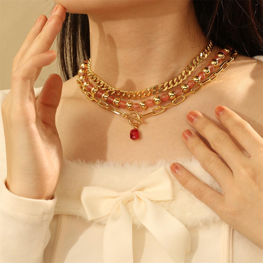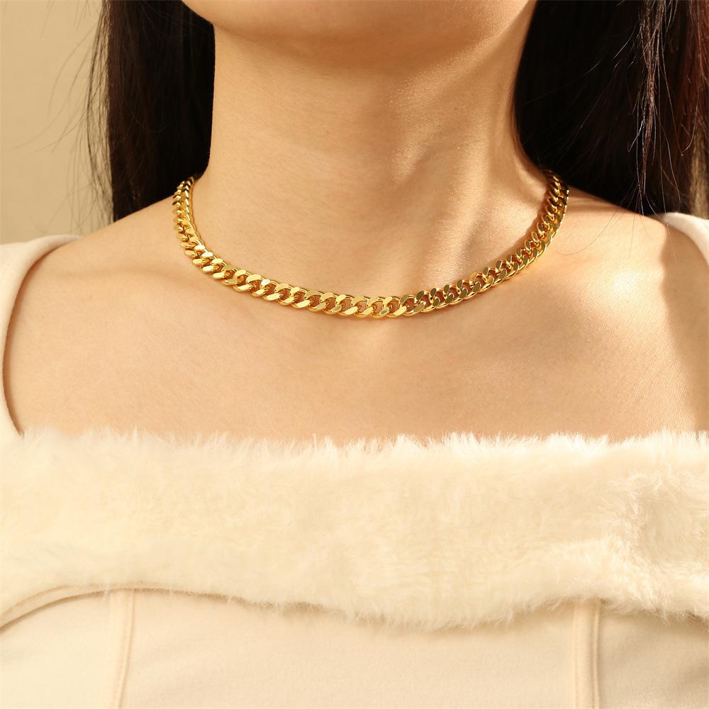 Collar de cadena cubana apilada de un solo uso con personalidad europea y americana transfronteriza, cadena de clavícula con cuentas hecha a mano de alta gama para mujer, venta al por mayor