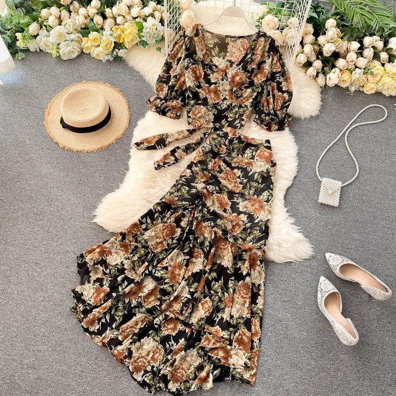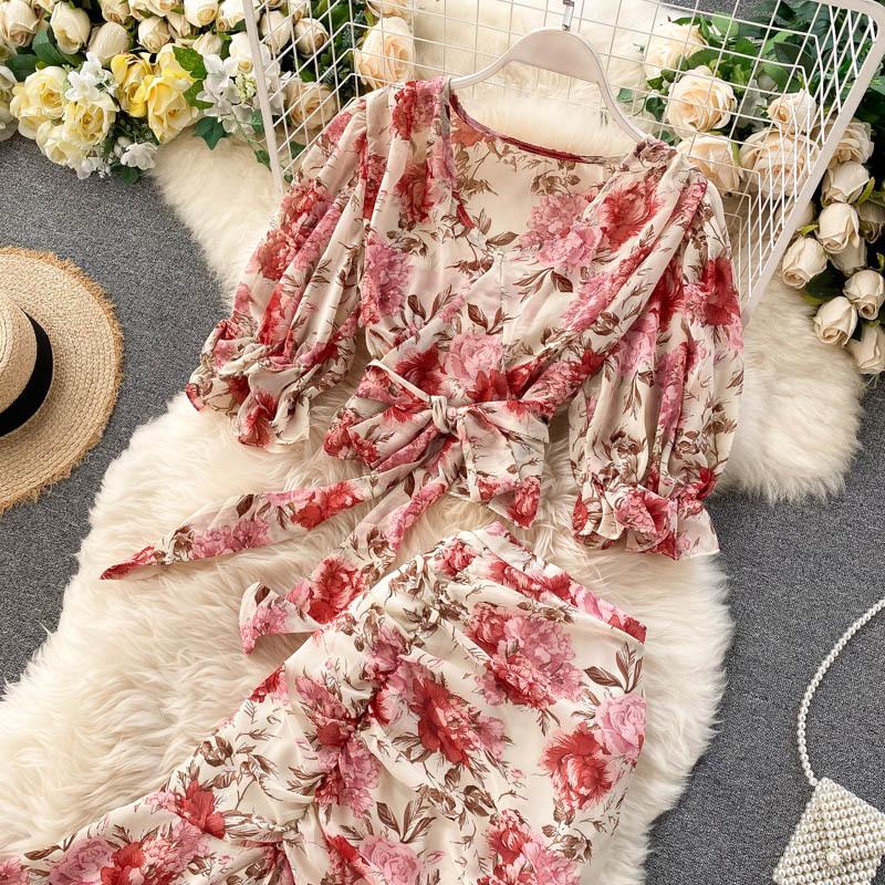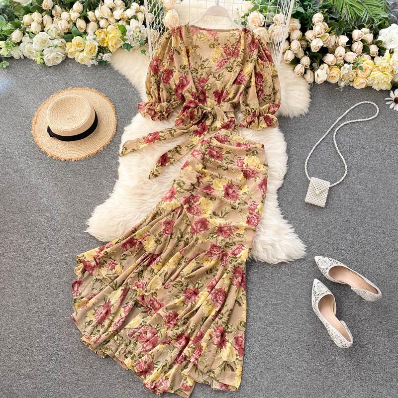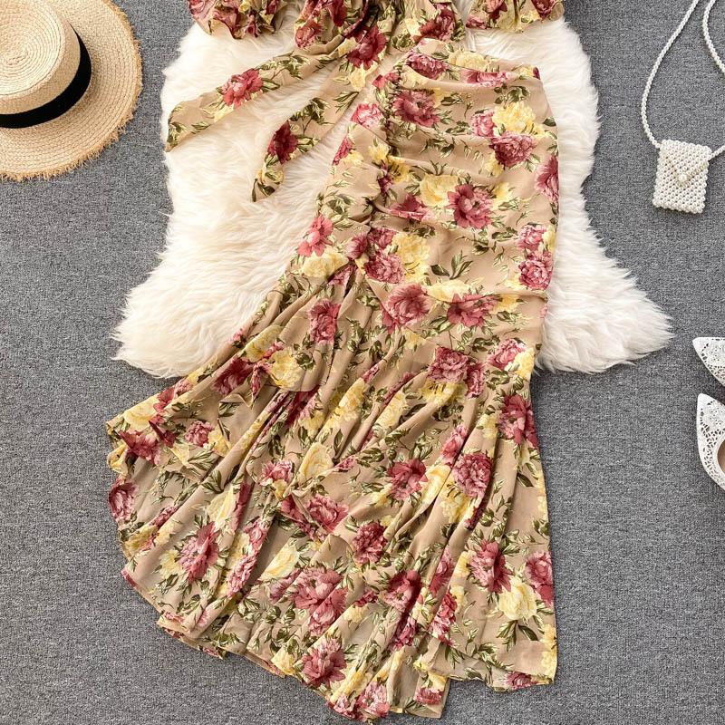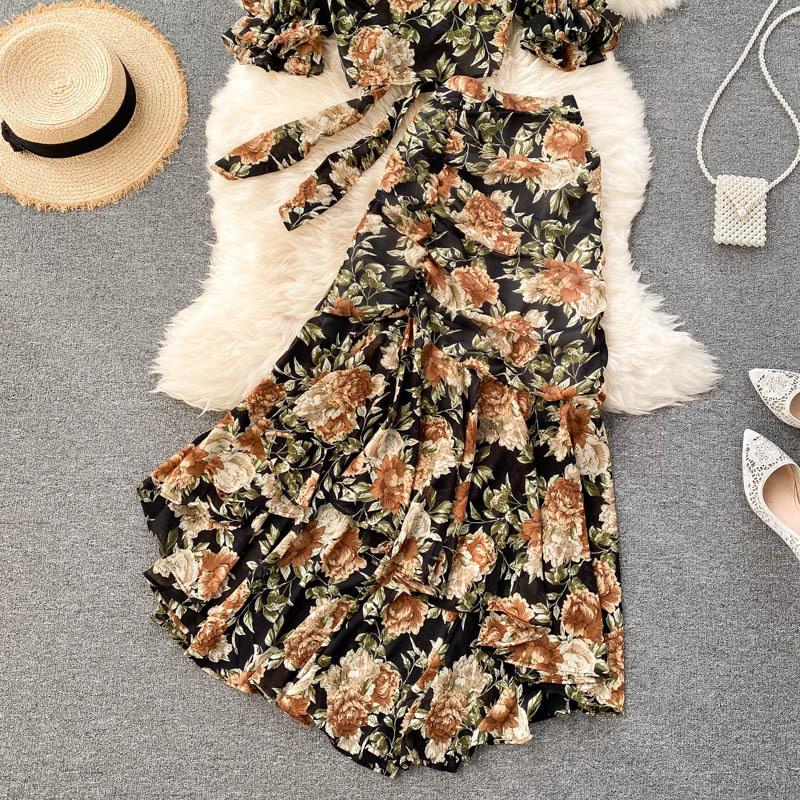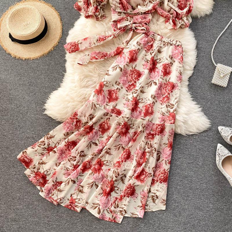 Traje de dos piezas estilo festivo 2020, nuevo, para mujer, con camisa de gasa de tirantes cortos y falda de cola de pez sexy y femenina.