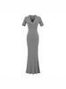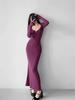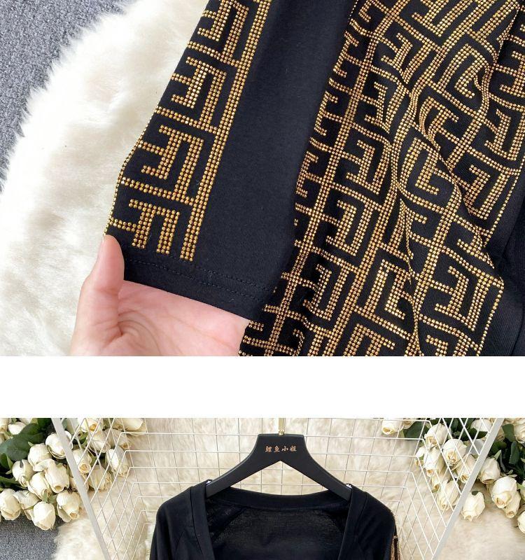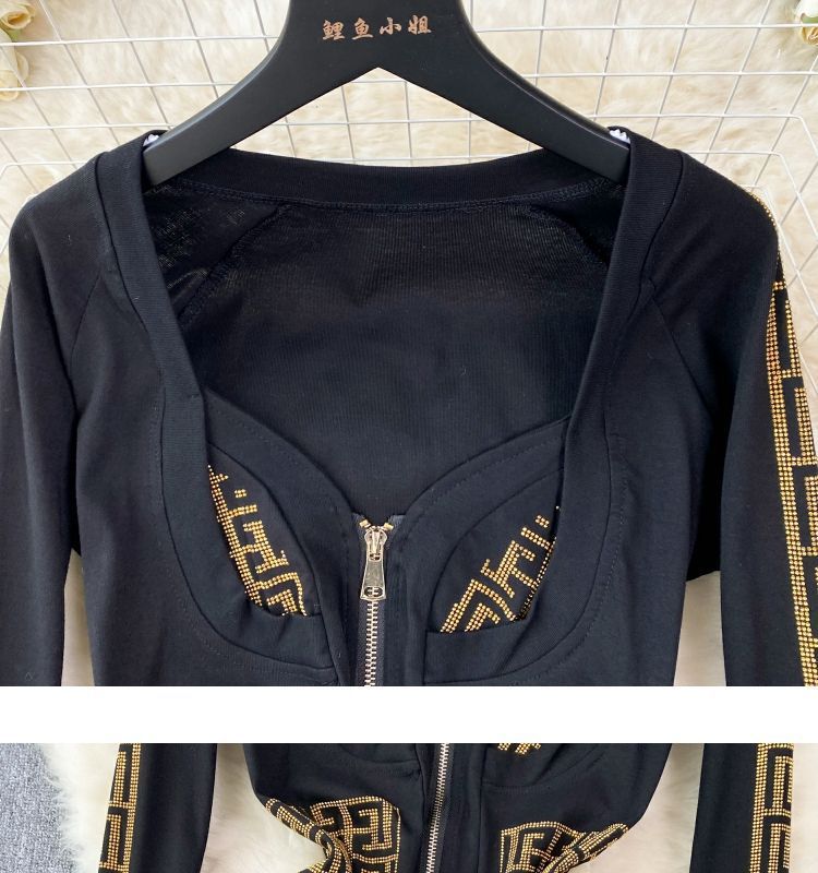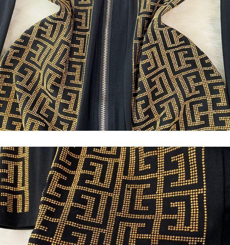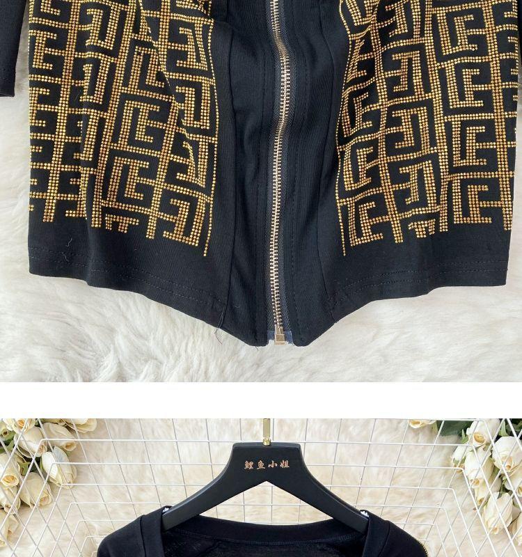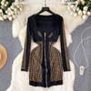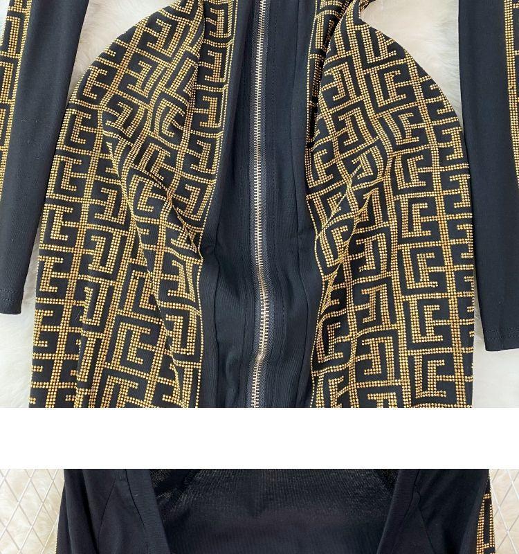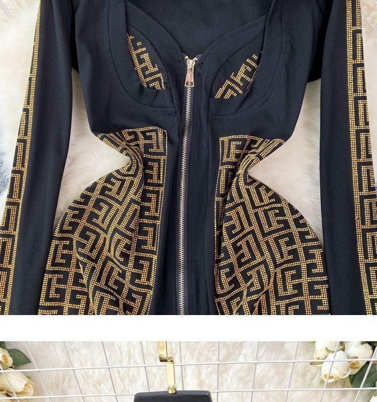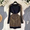 Vestido tubo Yujie ligero, familiar, elegante, de trabajo pesado, con patrón geométrico de diamantes de imitación, corte bajo, cremallera, manga larga, ajustado y adelgazante