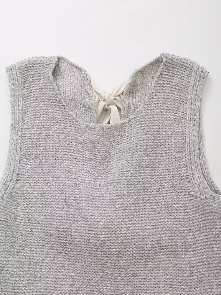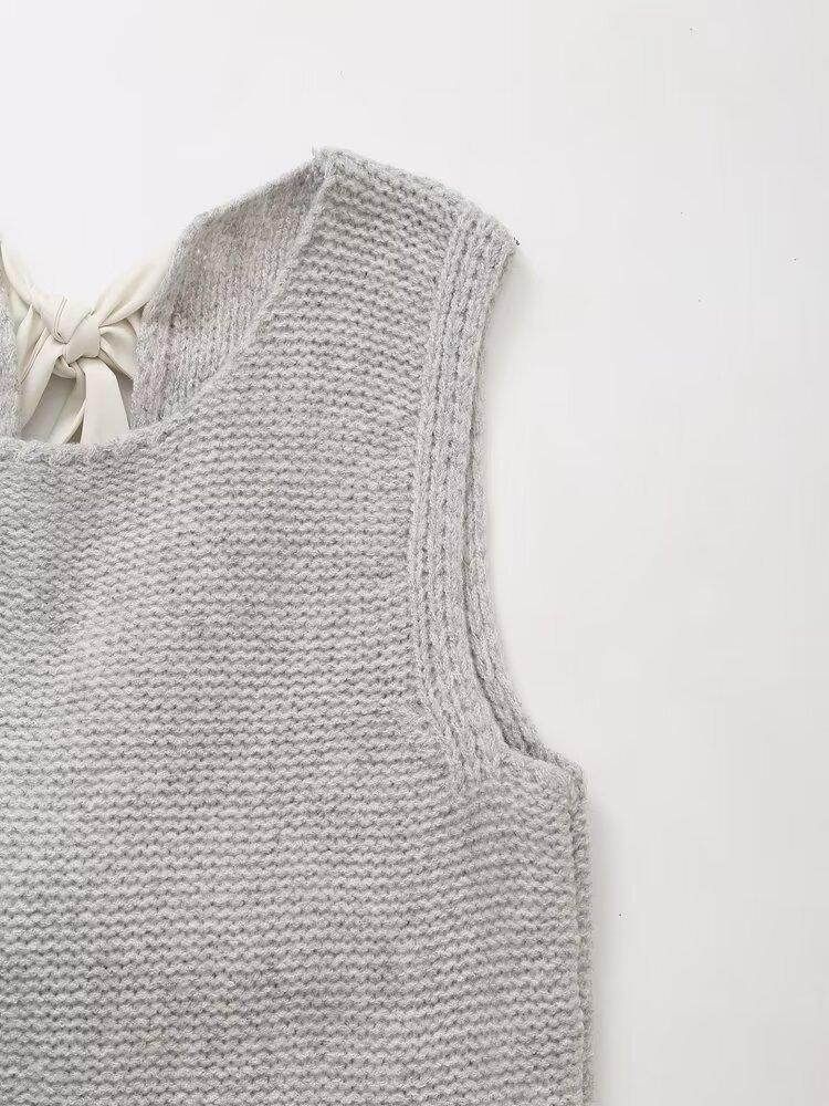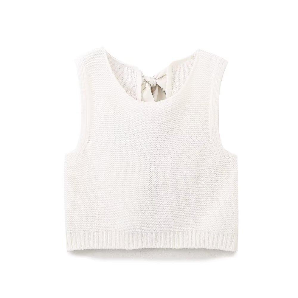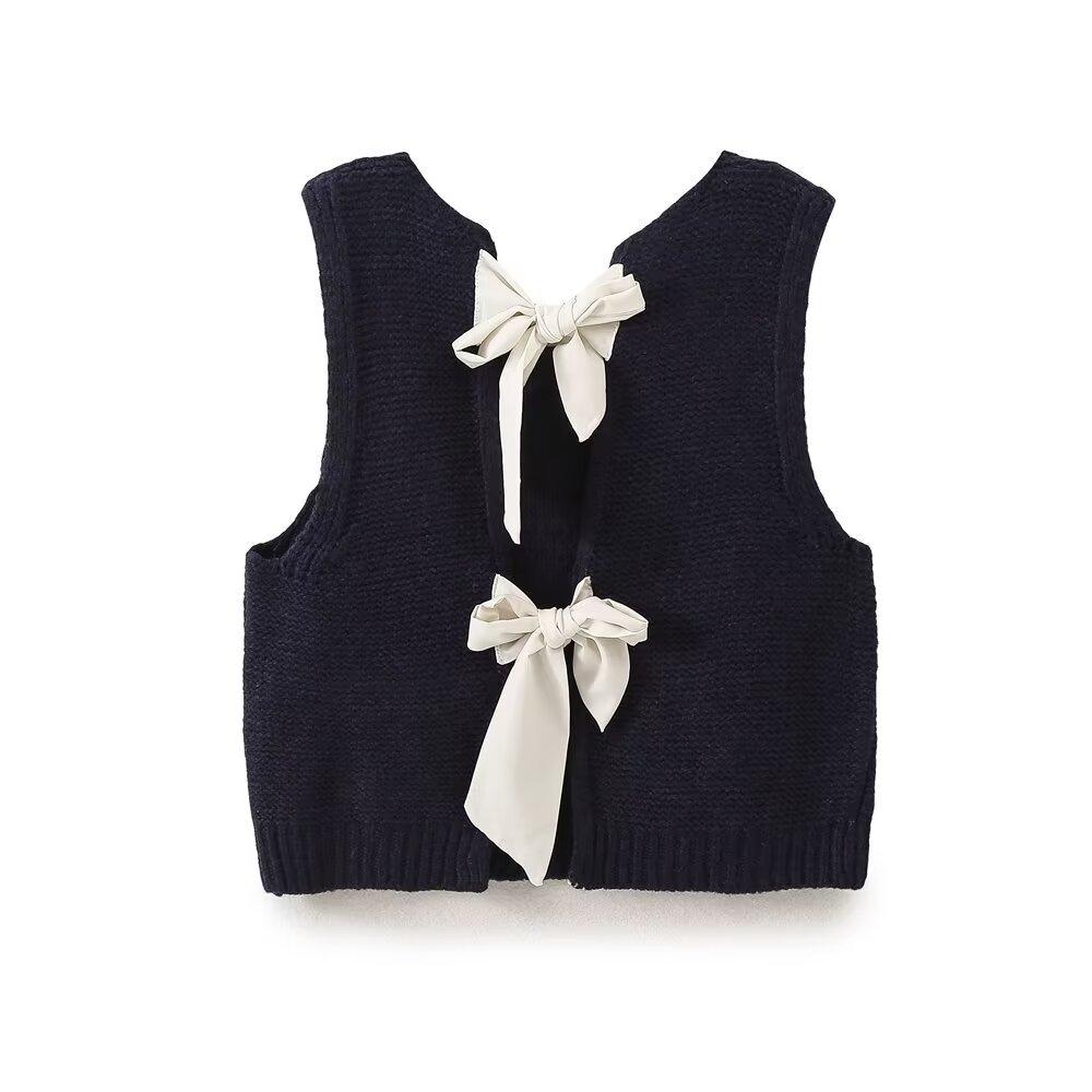 Chaleco sin mangas estilo lazo francés, chaleco tejido ajustado, para mujer, invierno 2024, estilo europeo y americano, blusa distintiva con nudo