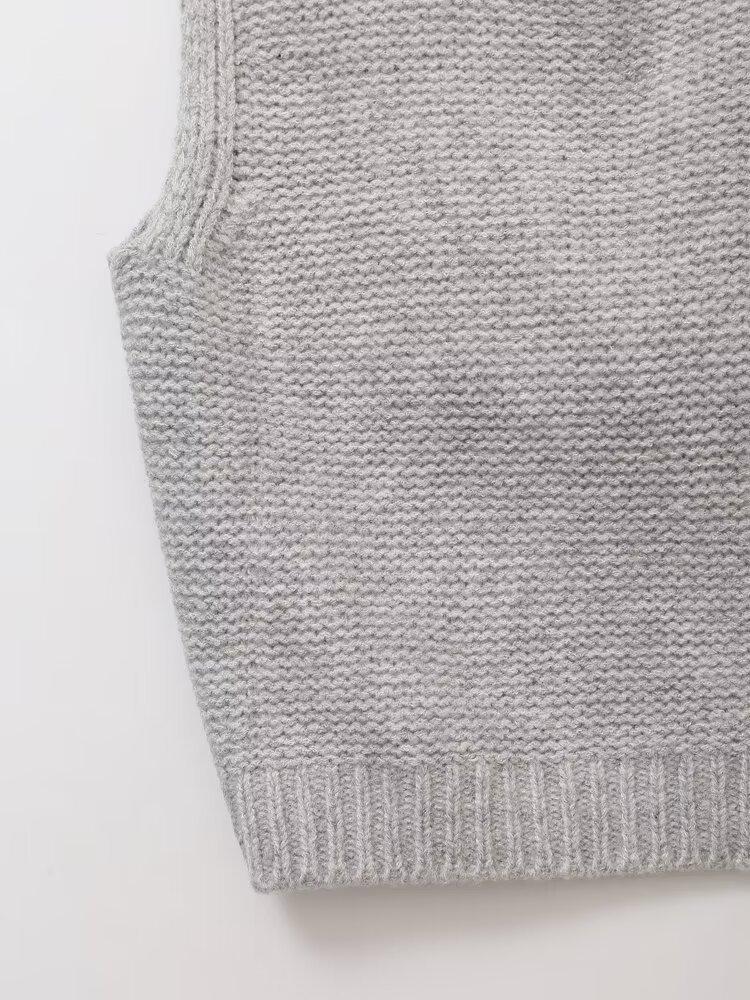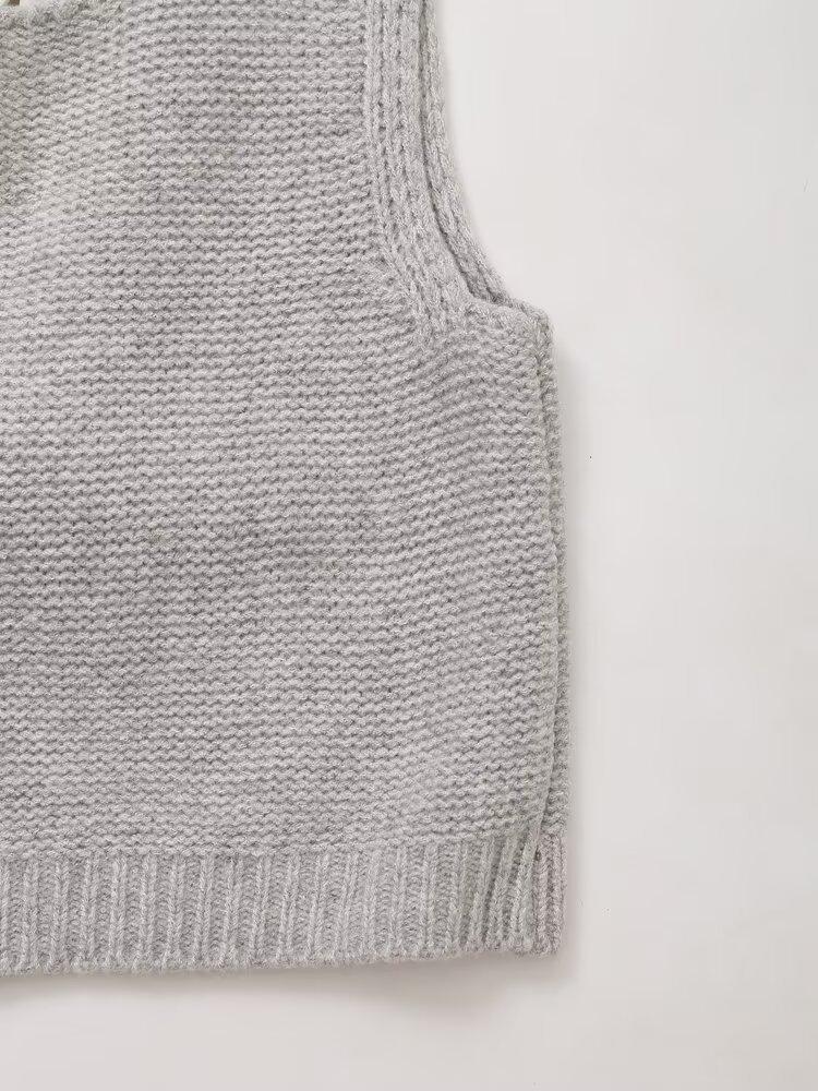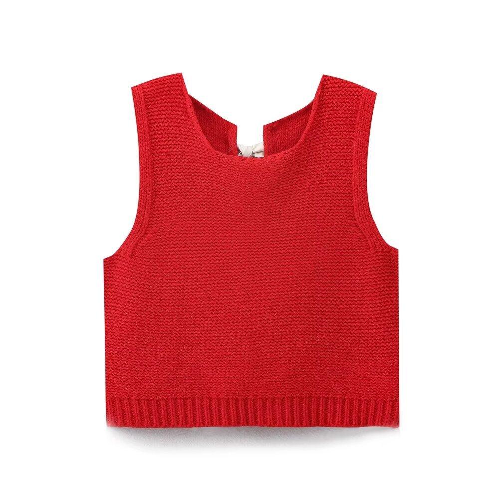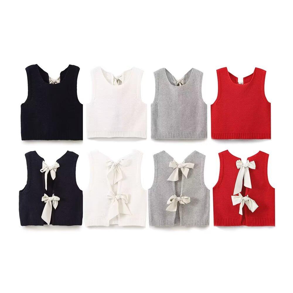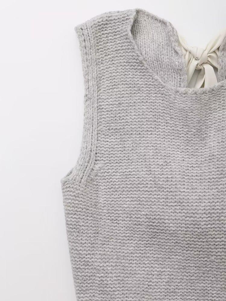 Chaleco sin mangas estilo lazo francés, chaleco tejido ajustado, para mujer, invierno 2024, estilo europeo y americano, blusa distintiva con nudo