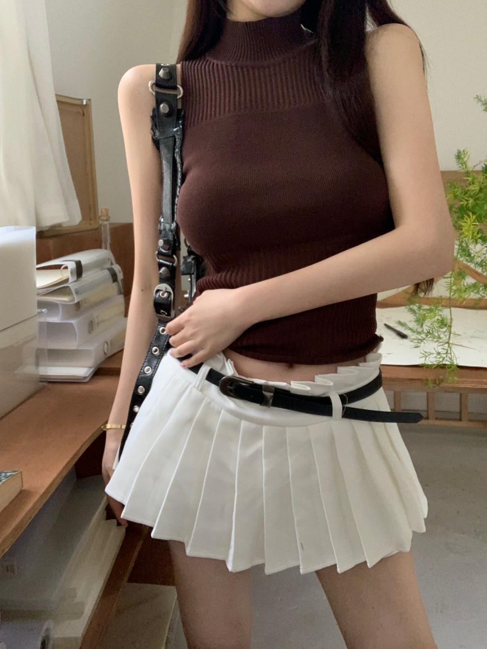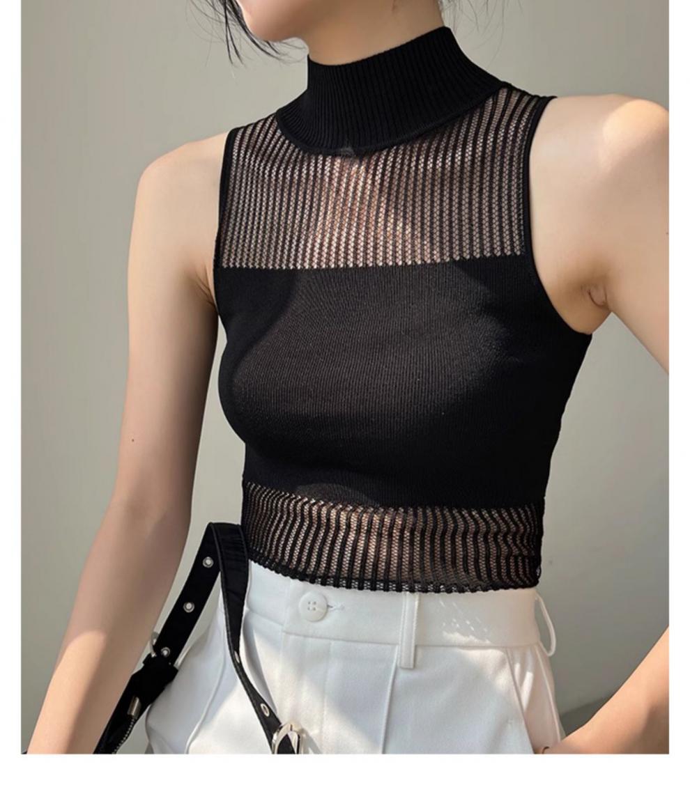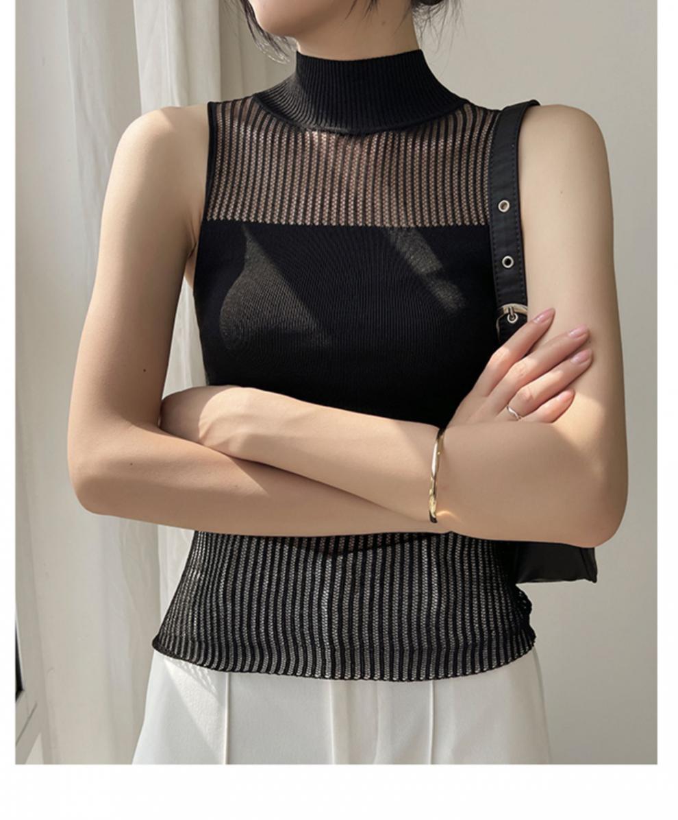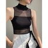 Chaleco Negro de Cuello Alto Cortado para Mujer 2024 Nuevo Otoño e Invierno Ropa Interior Tejida Slim Base Top Interior Ropa Exterior