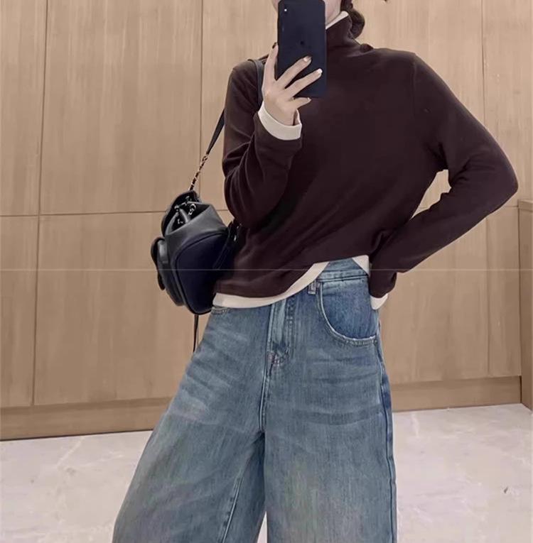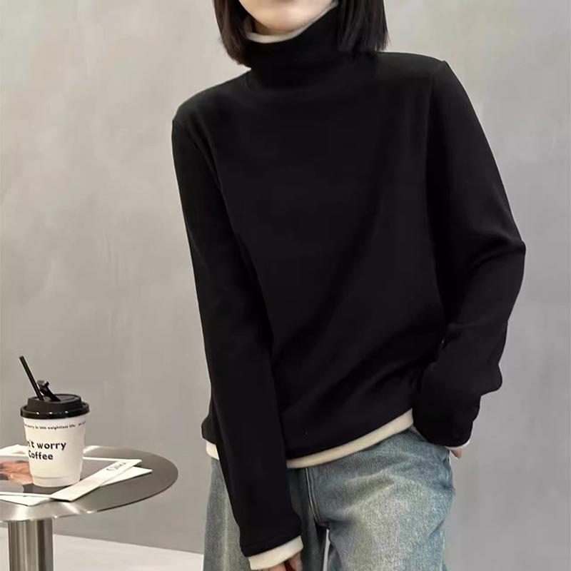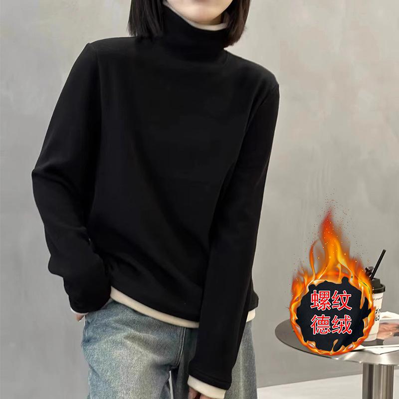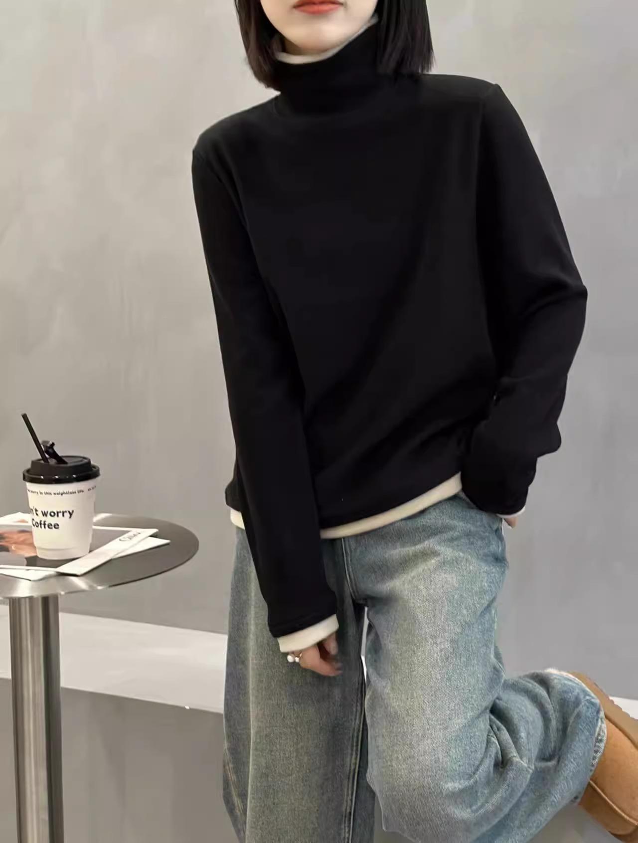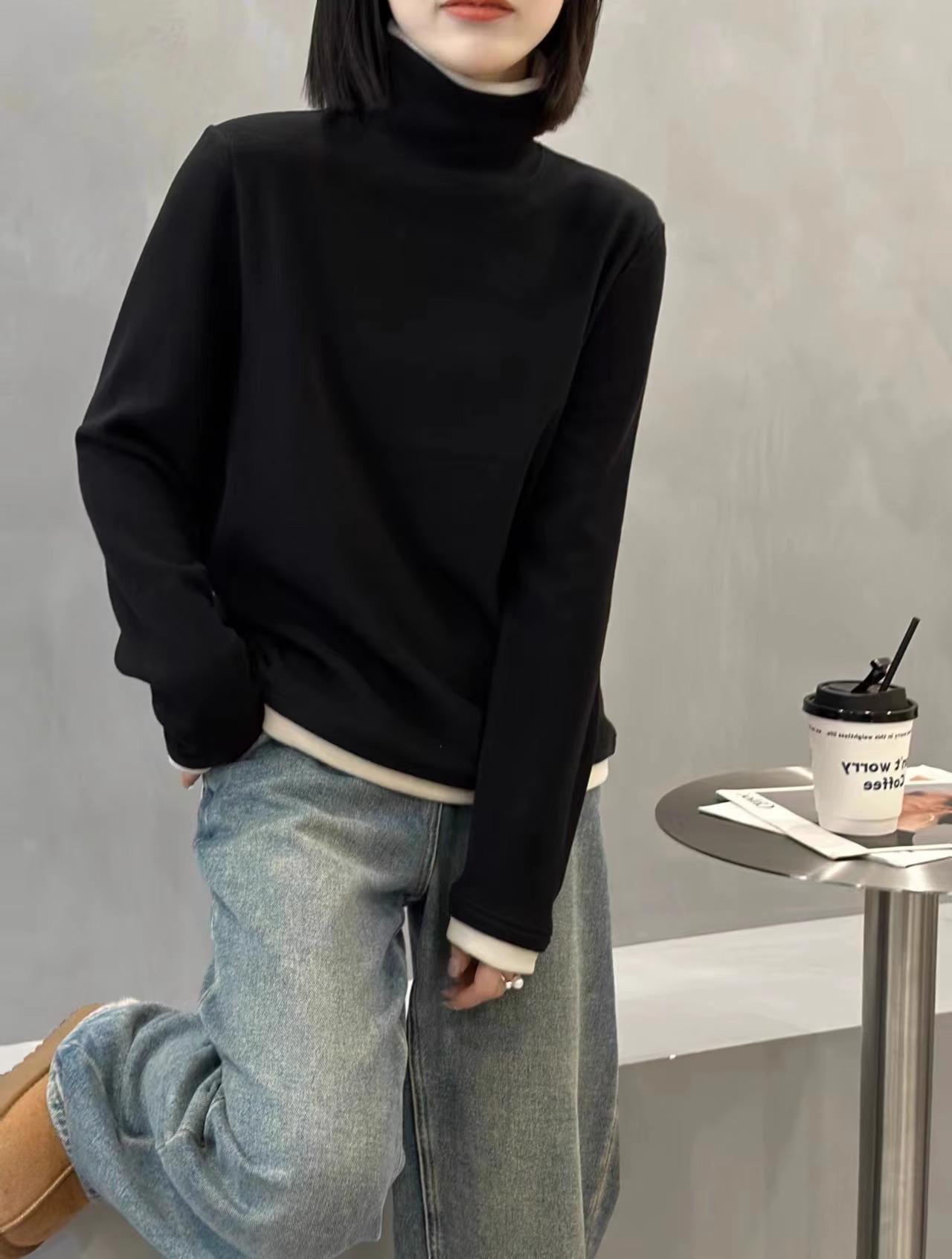 Camiseta básica de manga larga de terciopelo de hilo de 280 g verde blanco otoño e invierno nuevo estilo extranjero reducción de edad falso dos moda de mujer