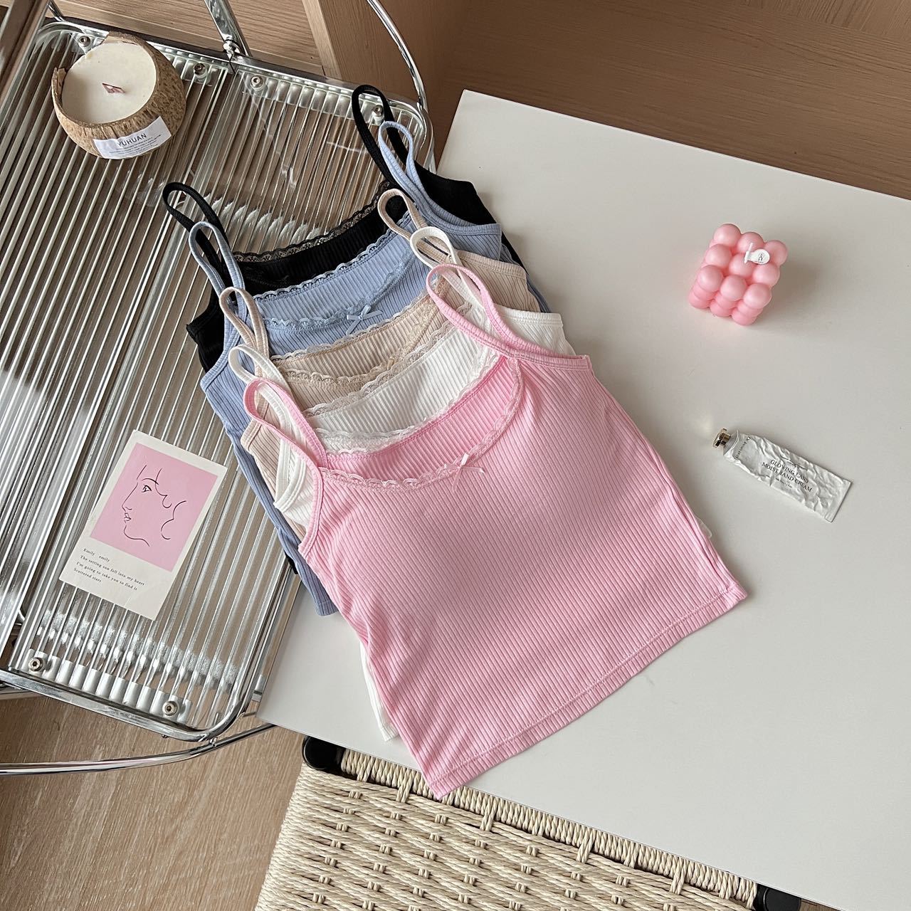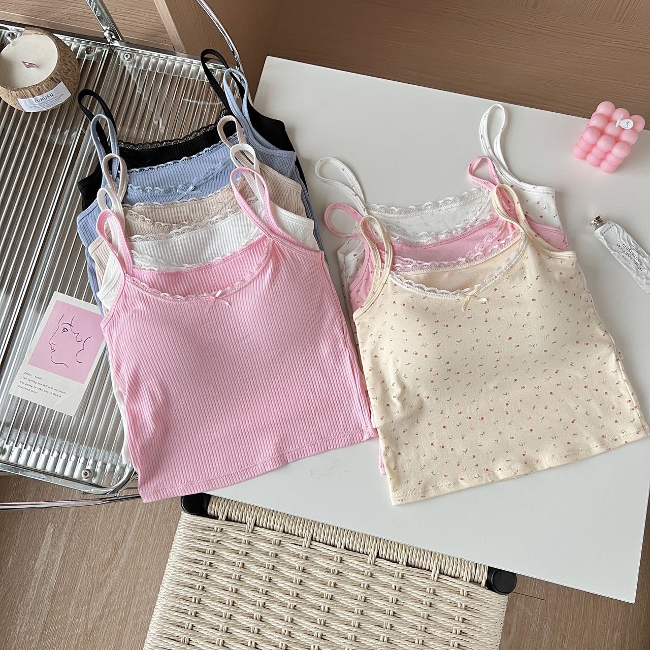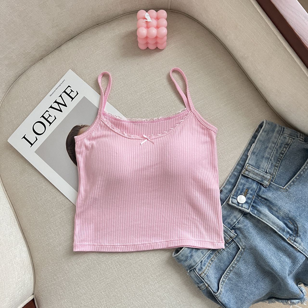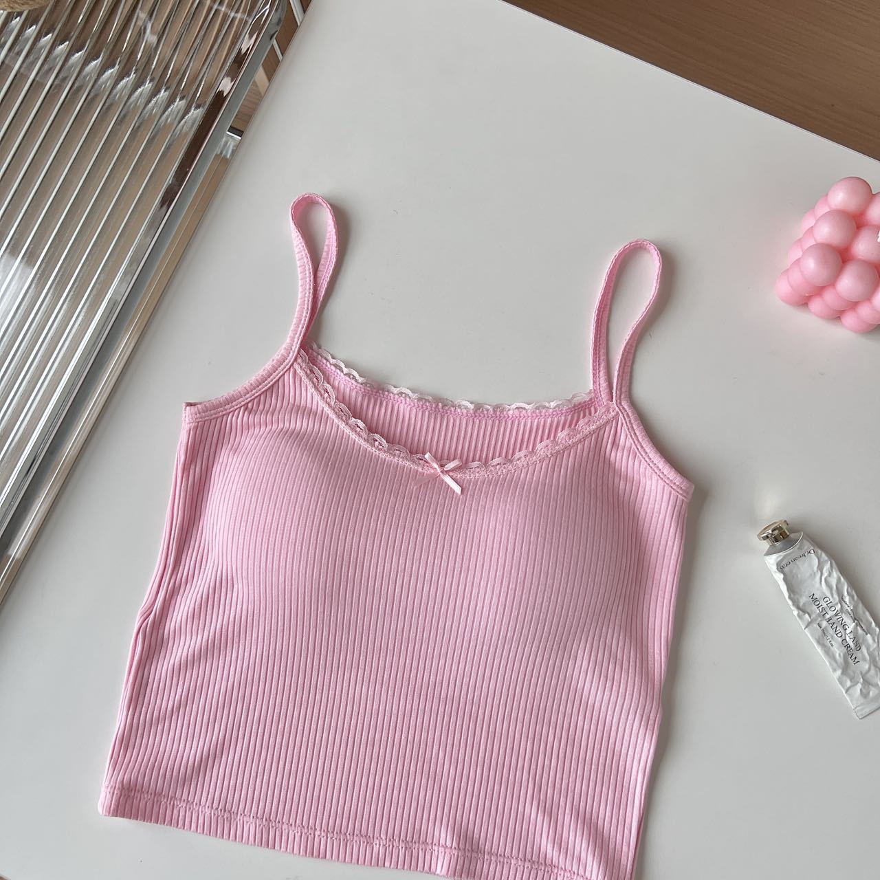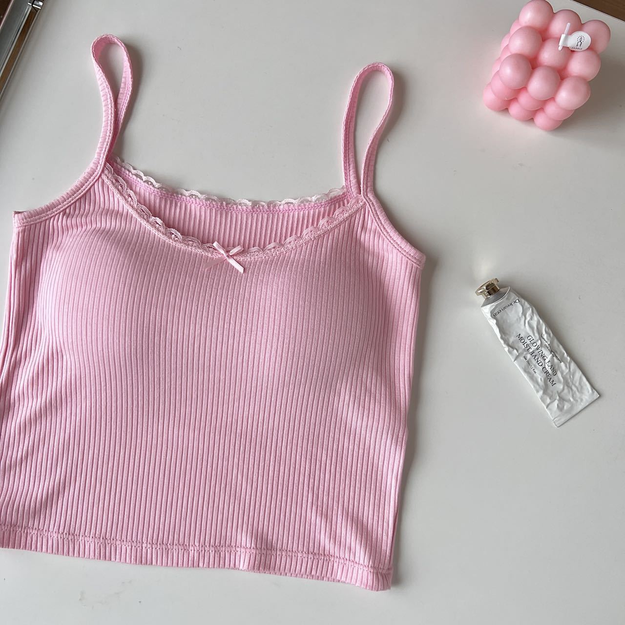 Camisola interior corta de verano de algodón puro con lazo de encaje Pure Desire para niña de estilo americano. Prenda exterior para mujer.