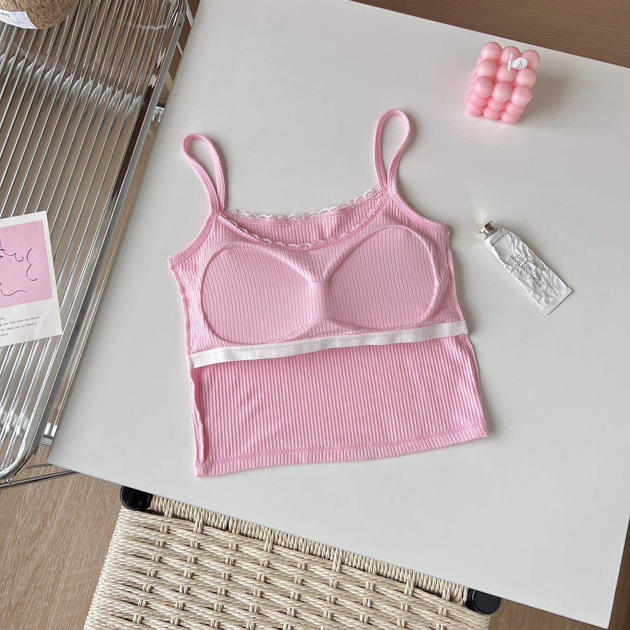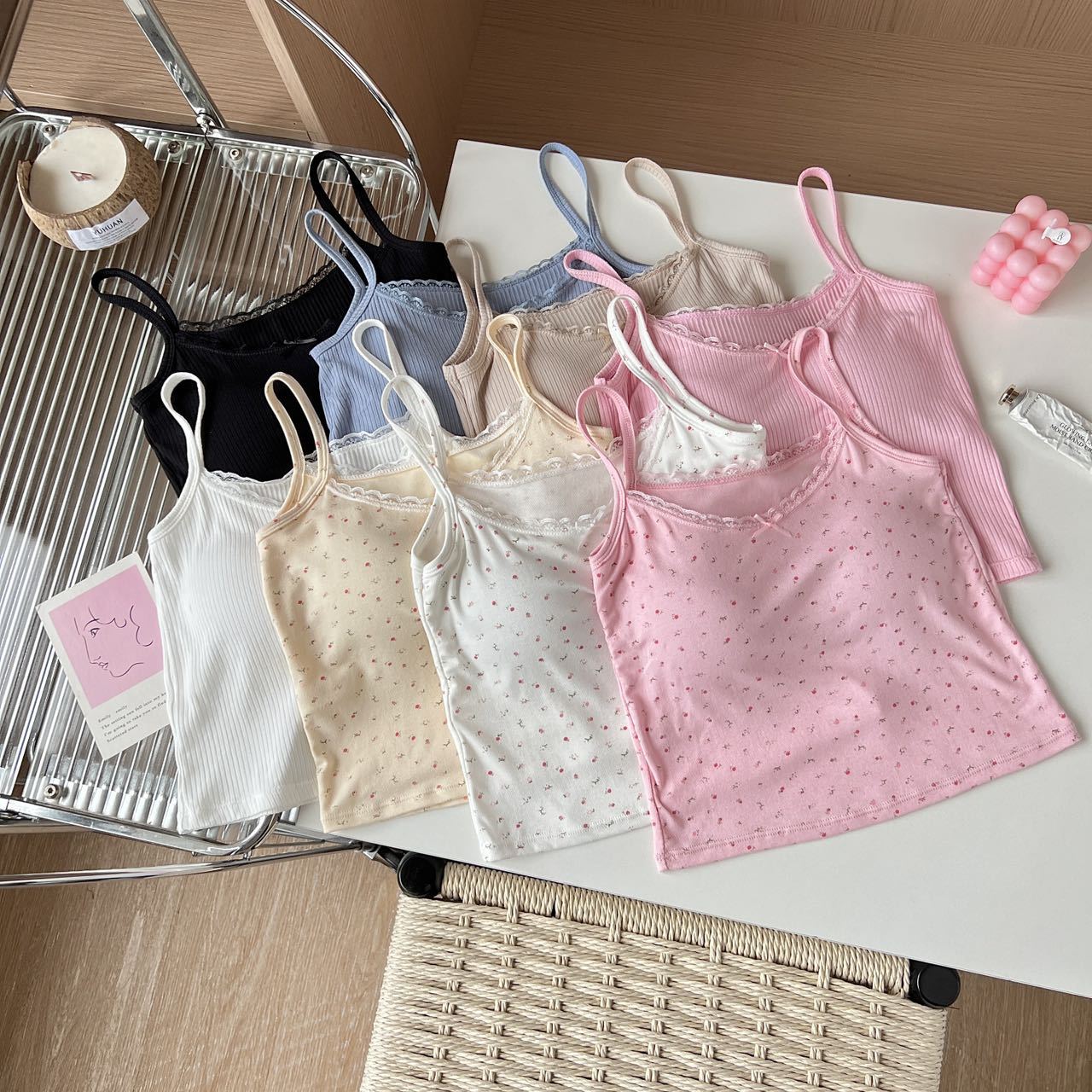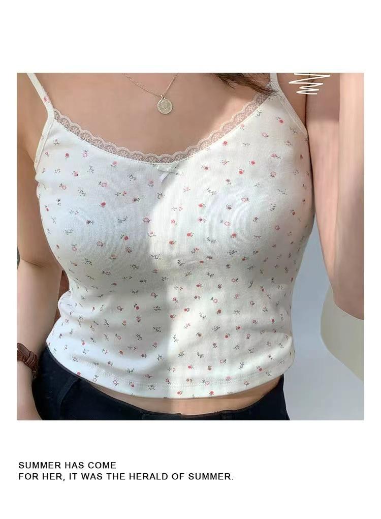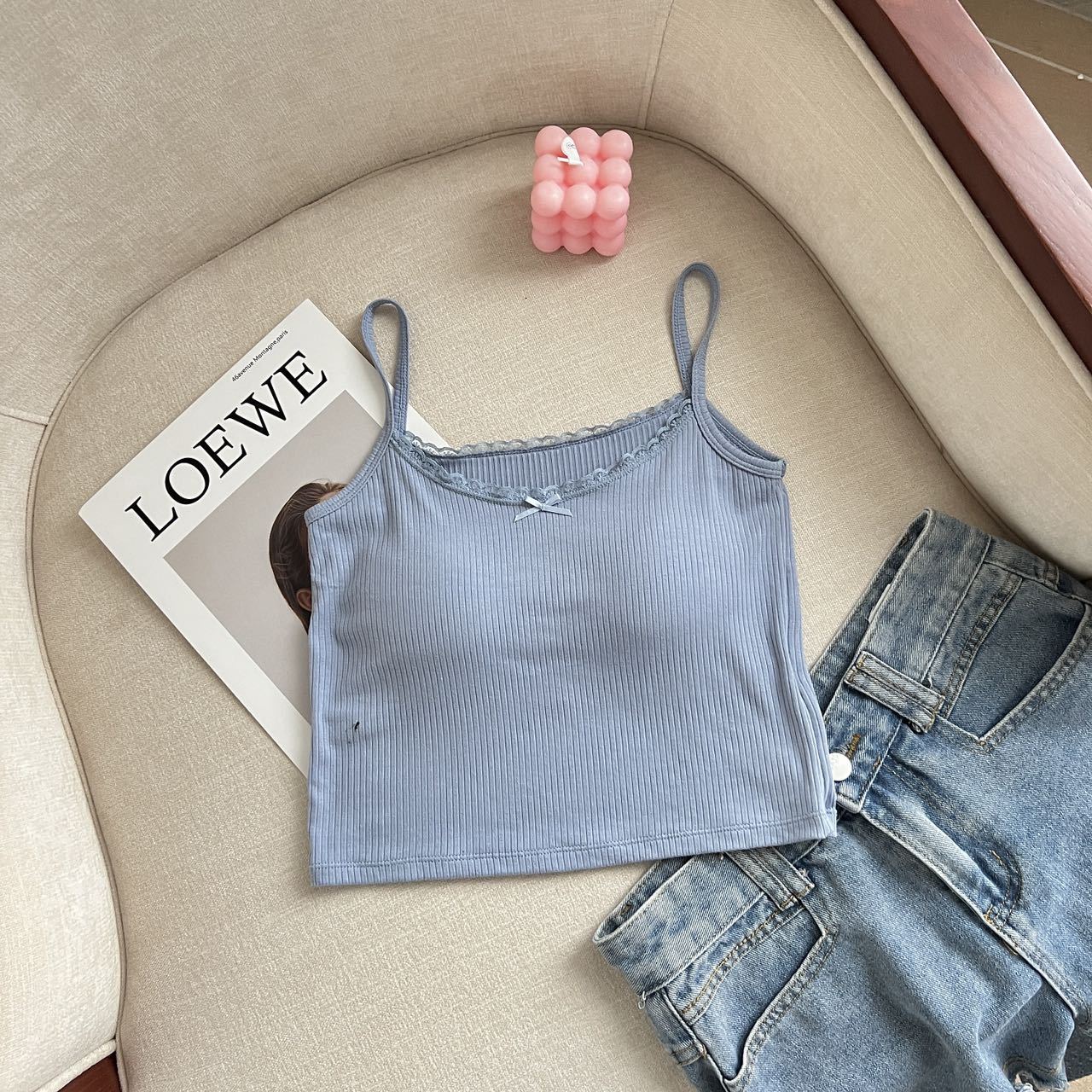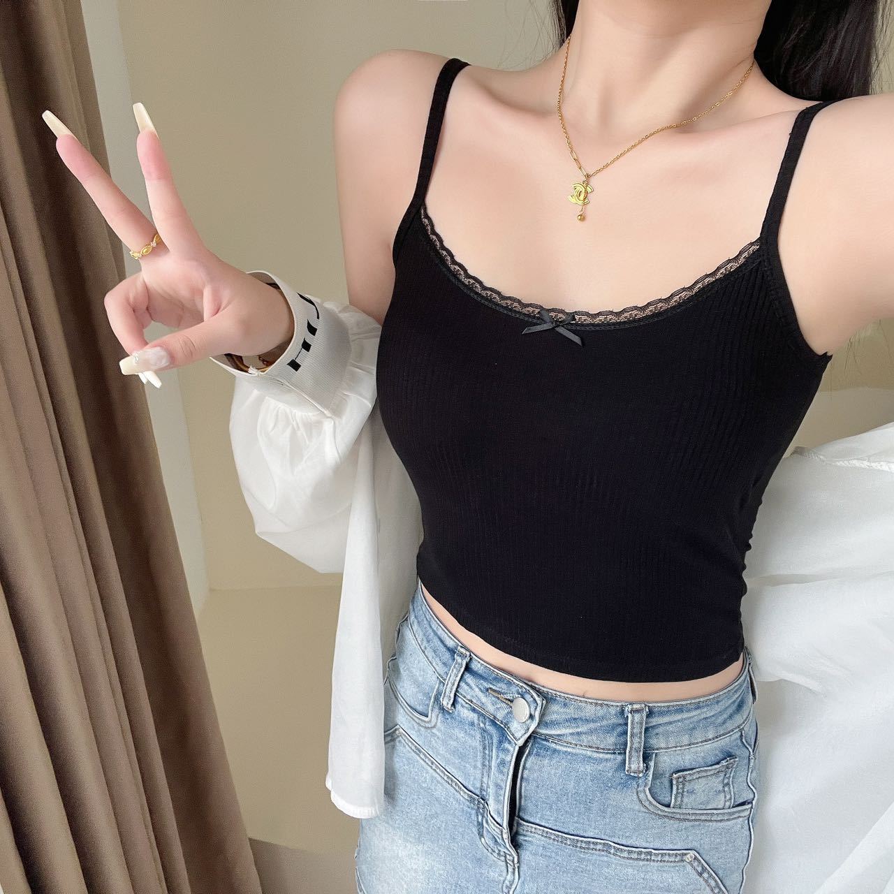 Camisola interior corta de verano de algodón puro con lazo de encaje Pure Desire para niña de estilo americano. Prenda exterior para mujer.