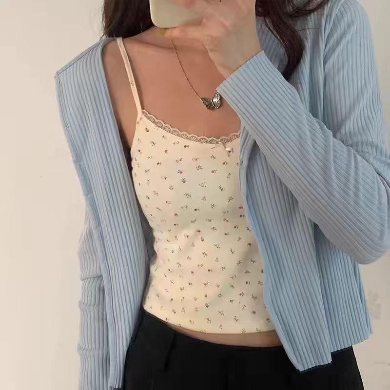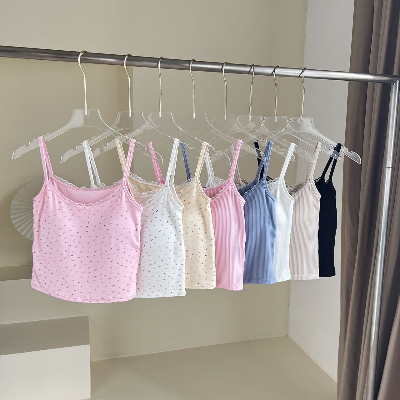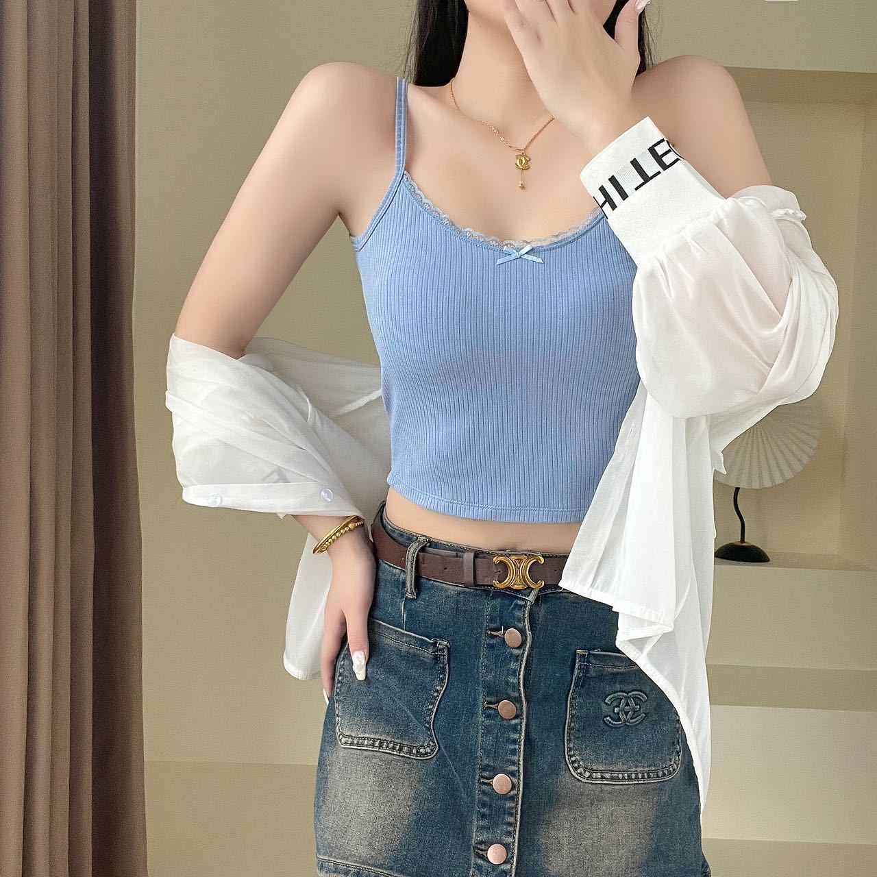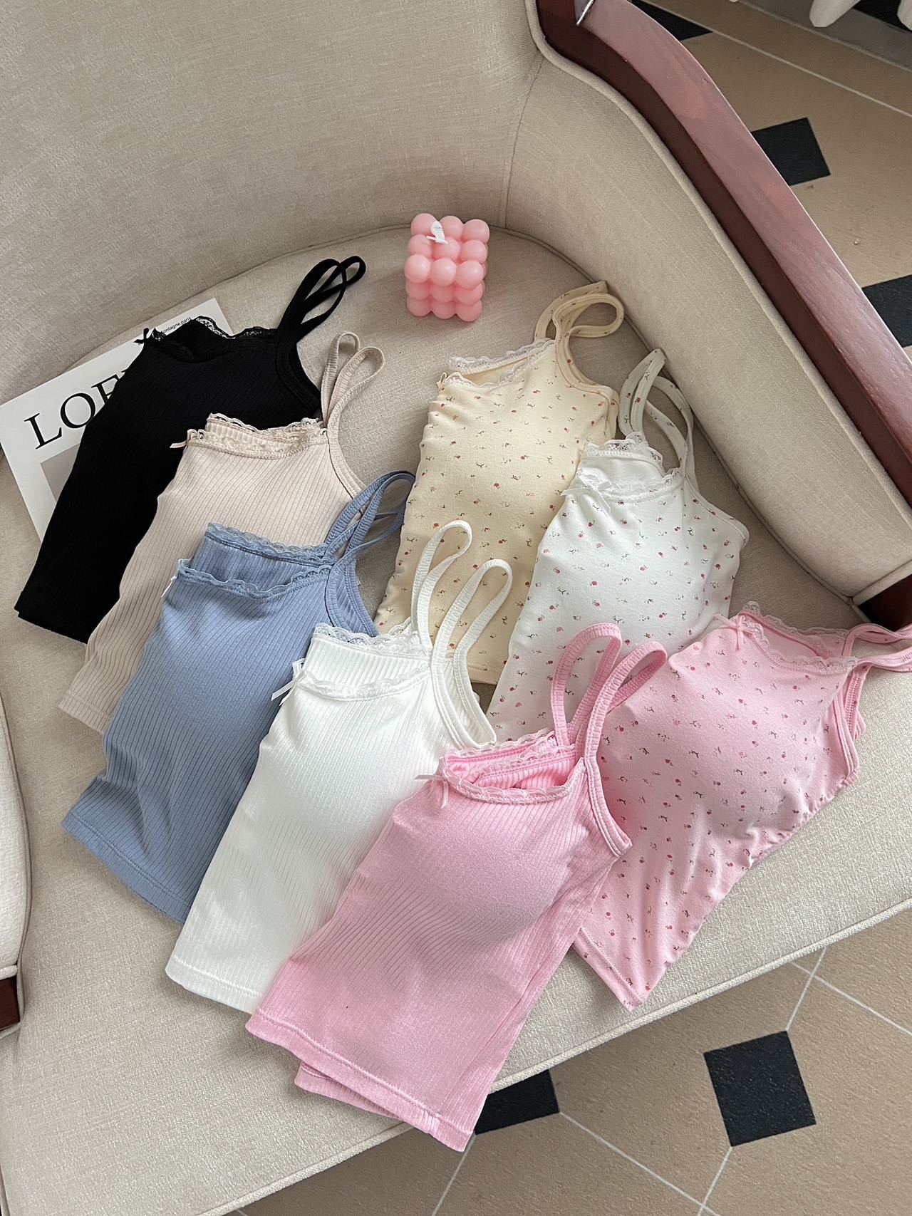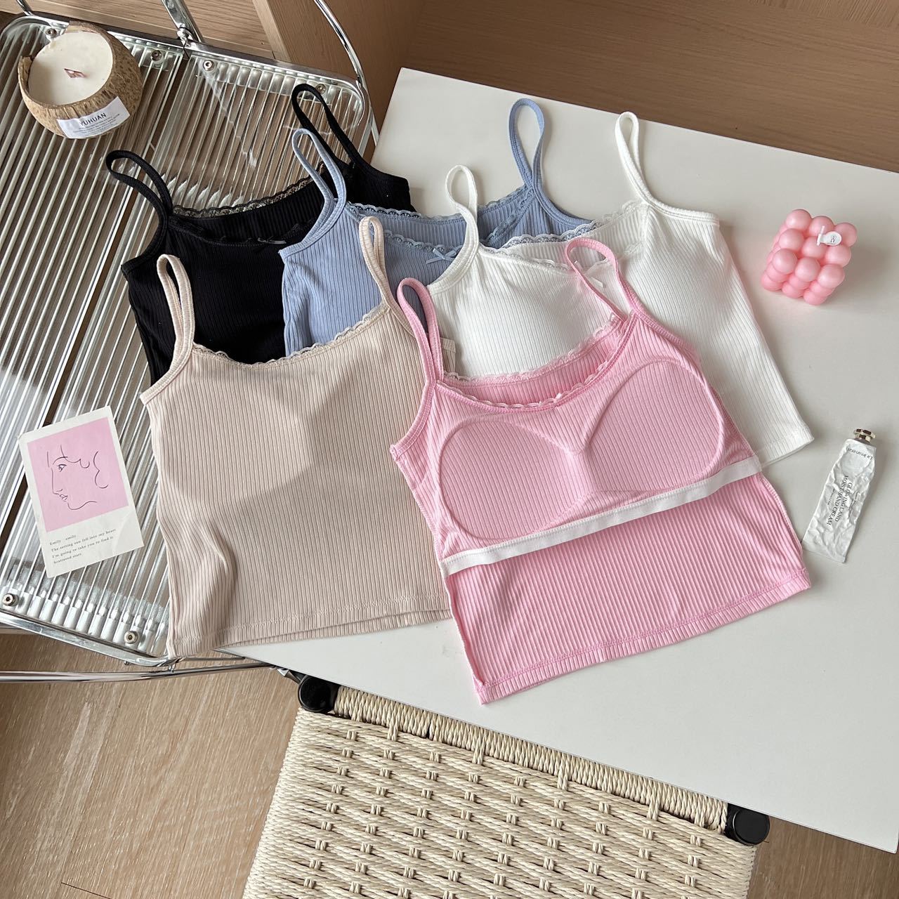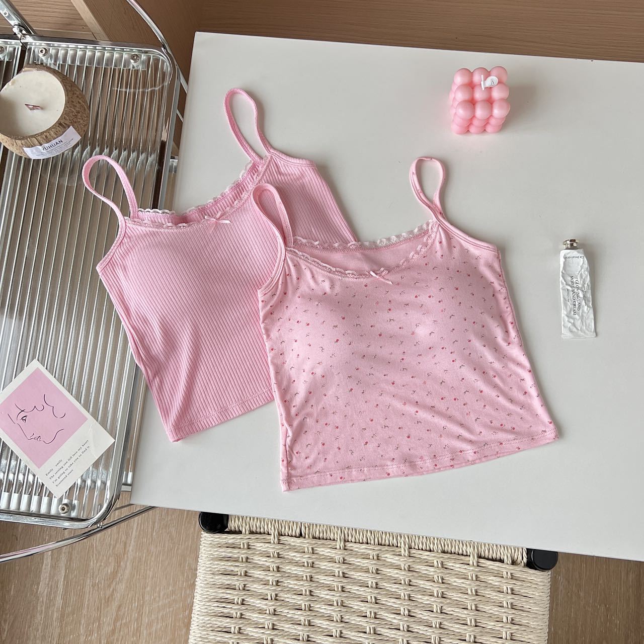 Camisola interior corta de verano de algodón puro con lazo de encaje Pure Desire para niña de estilo americano. Prenda exterior para mujer.