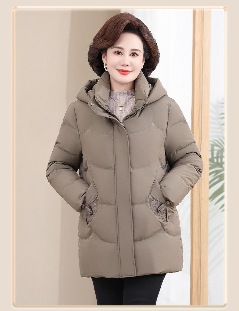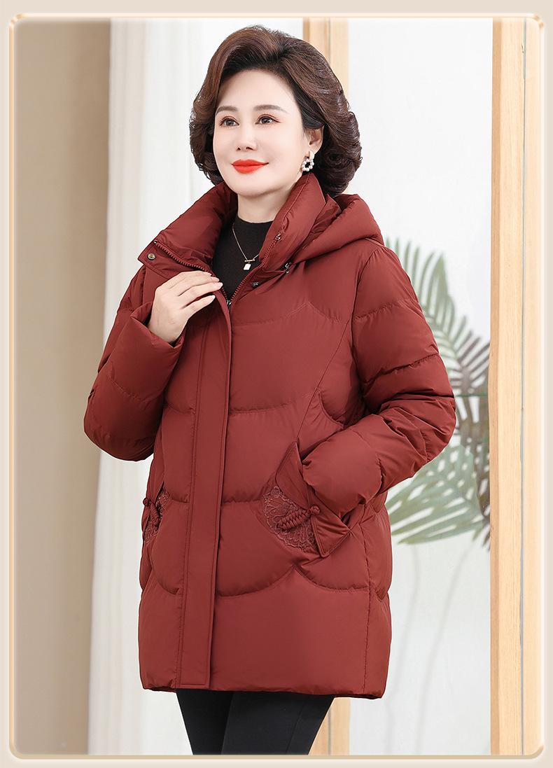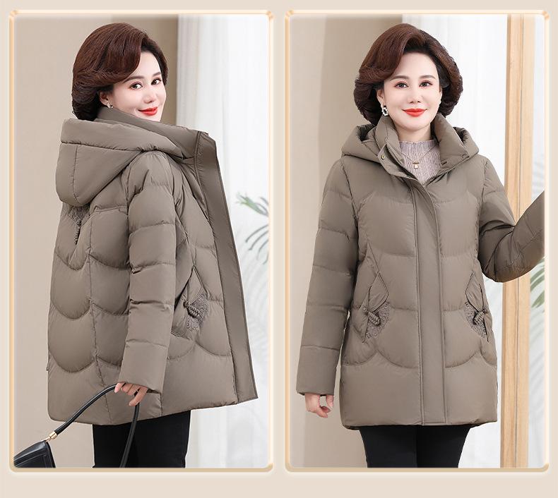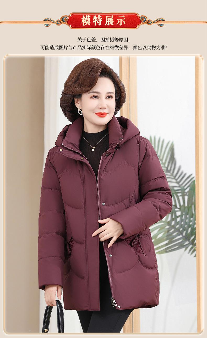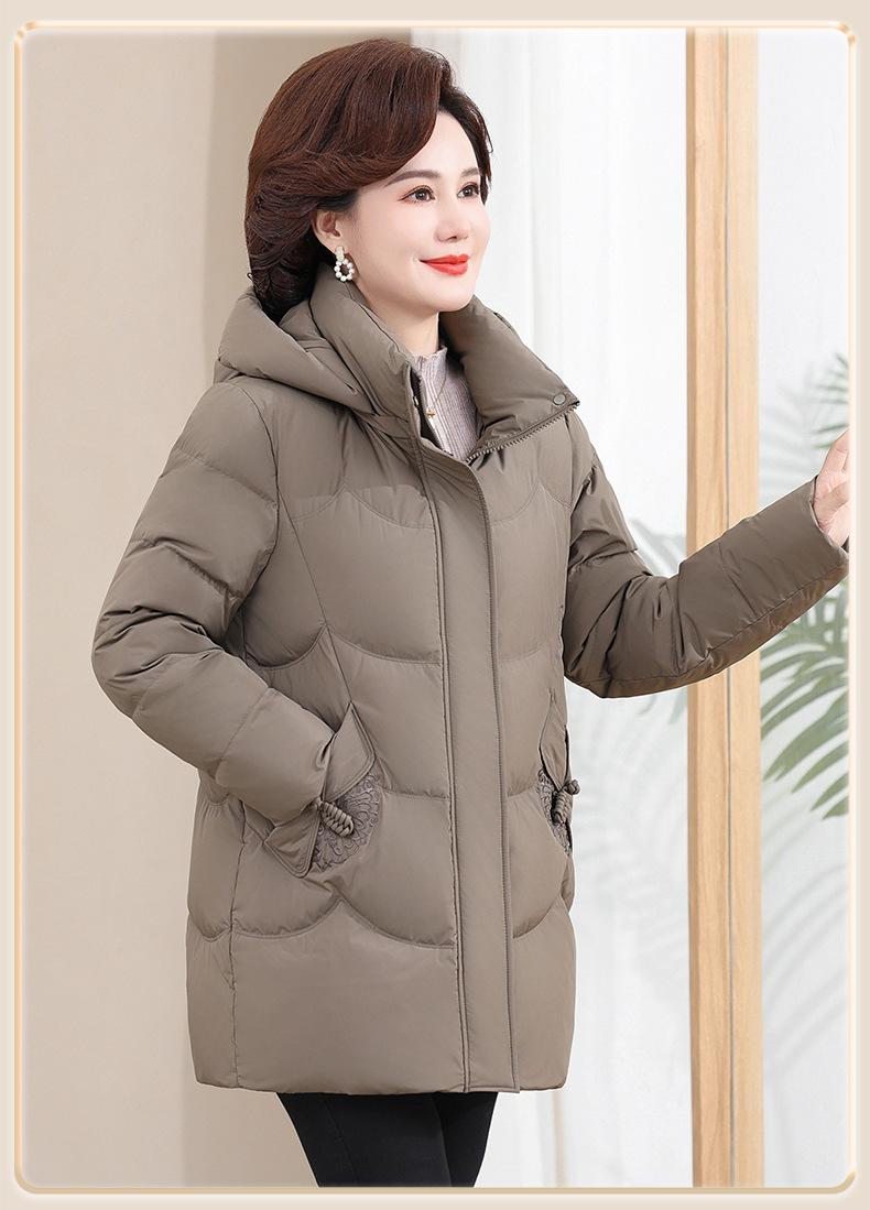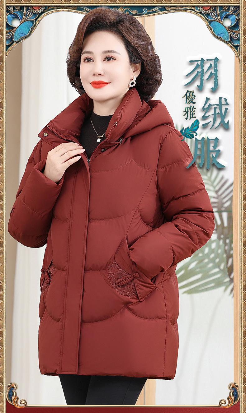 Chaqueta de plumón pequeña para madre de invierno, corta, para mujer, 2024, nueva, para mediana edad y mayores, abrigo cálido de plumón de pato blanco suelto