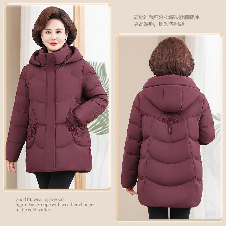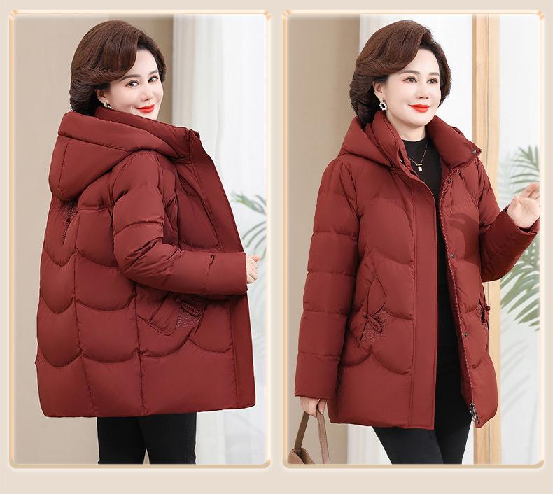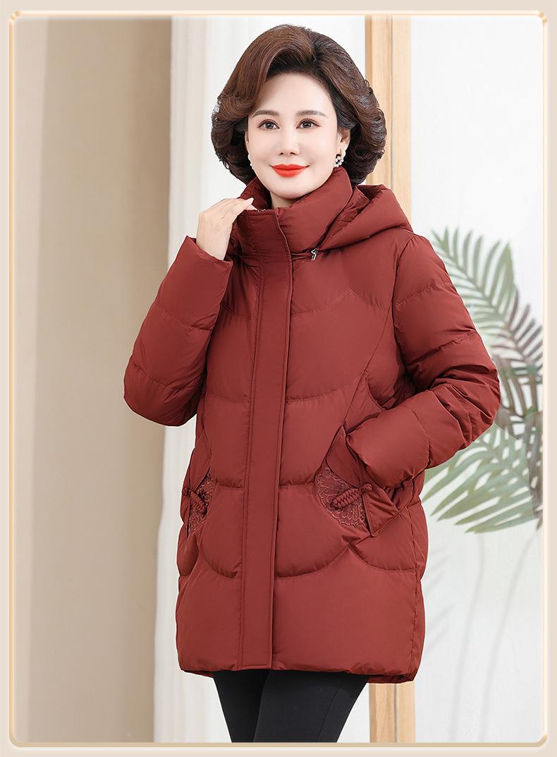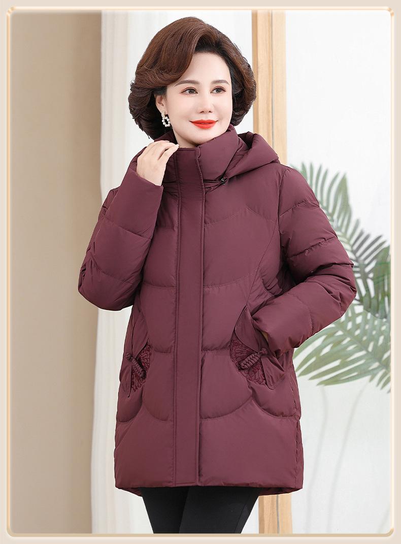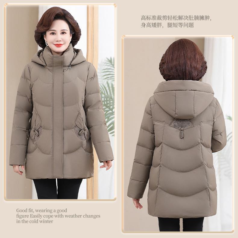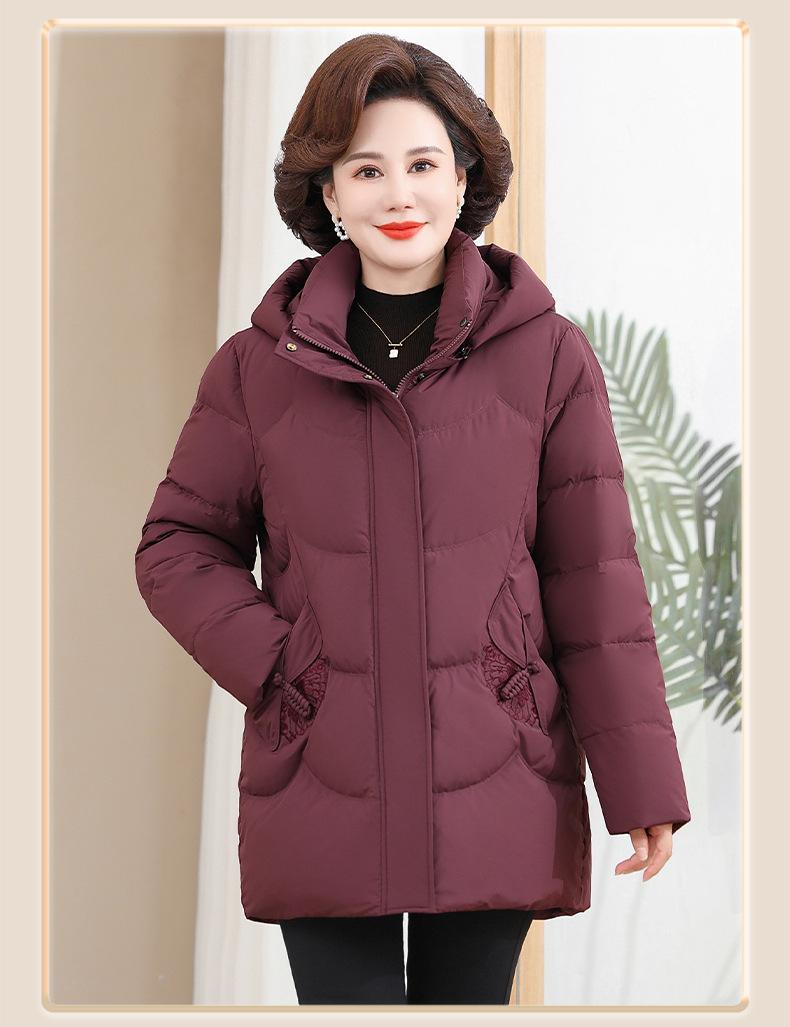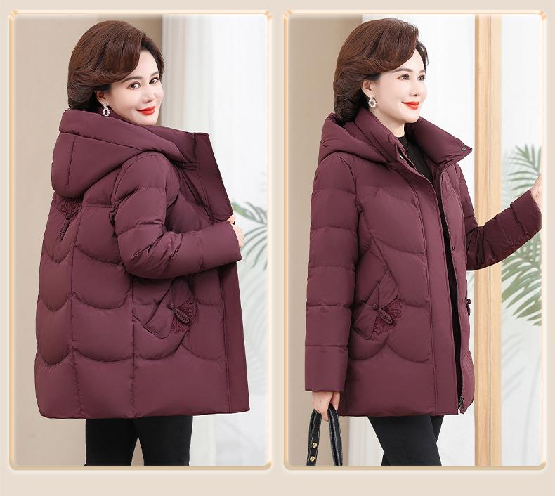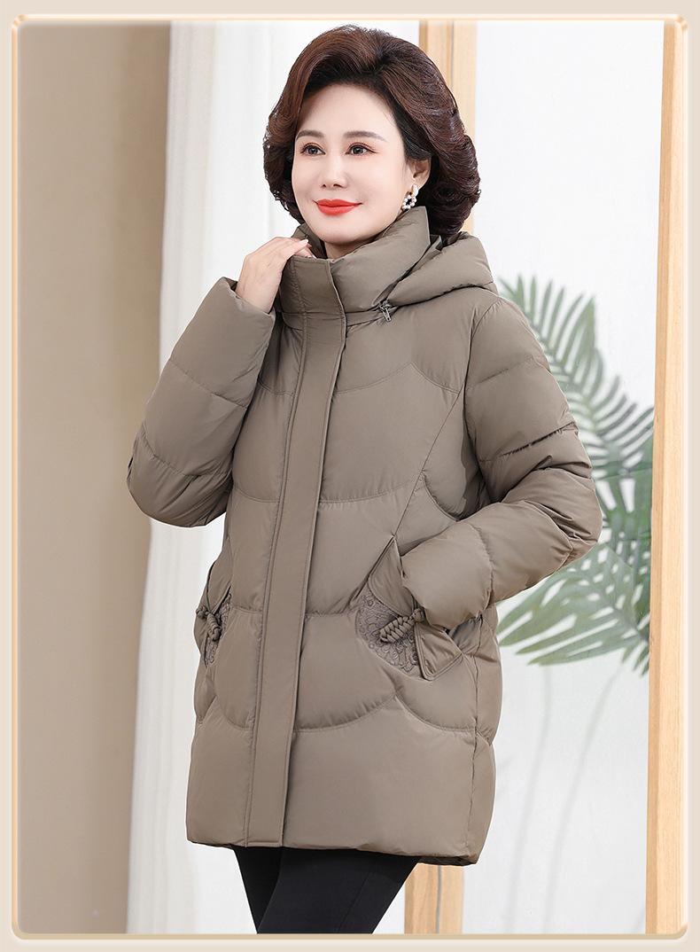 Chaqueta de plumón pequeña para madre de invierno, corta, para mujer, 2024, nueva, para mediana edad y mayores, abrigo cálido de plumón de pato blanco suelto