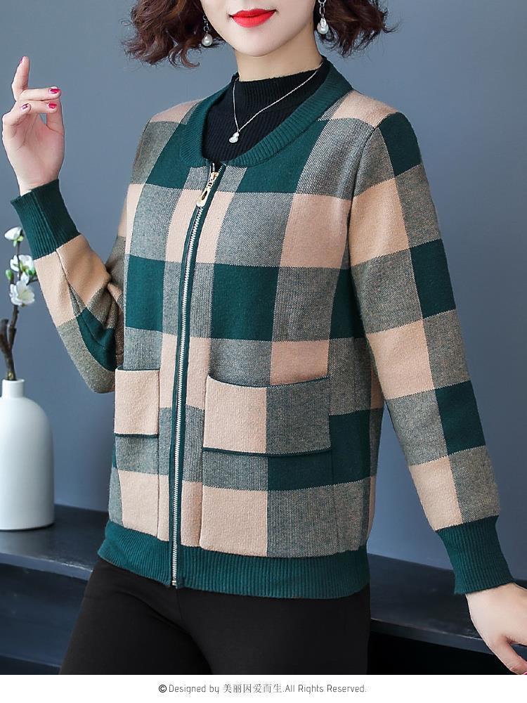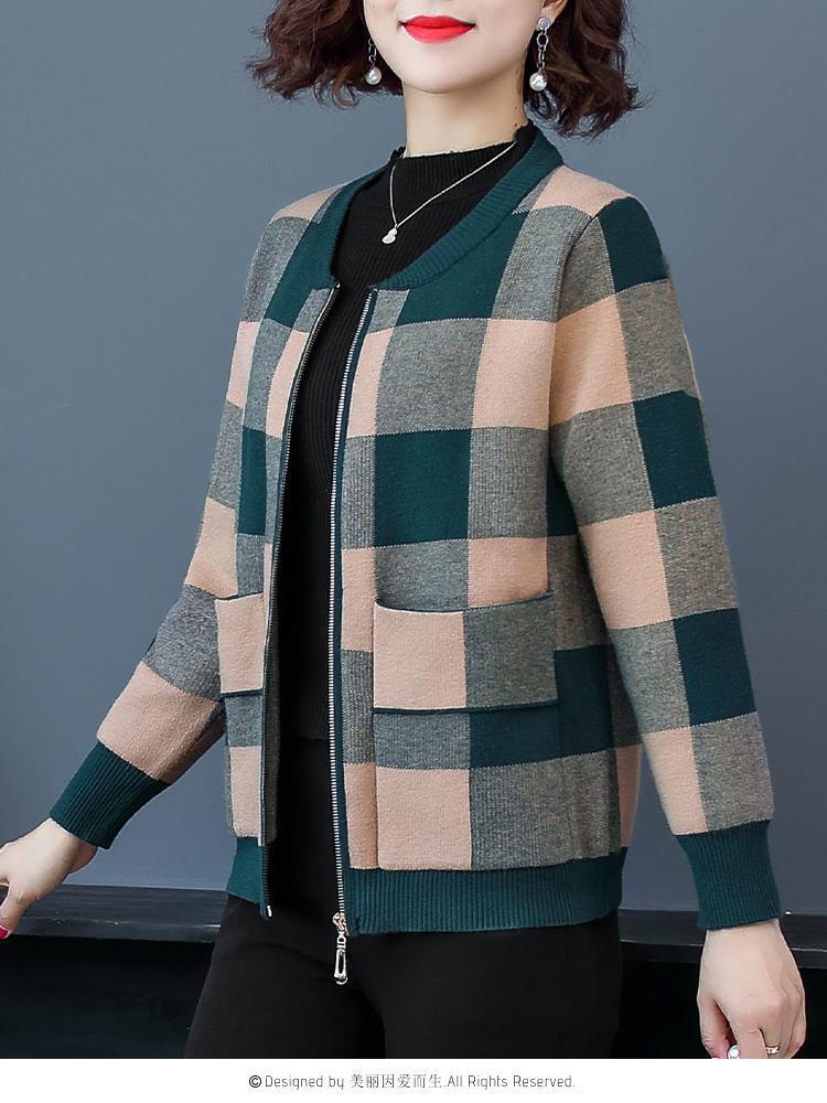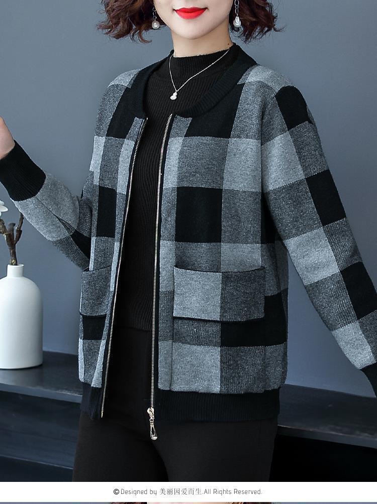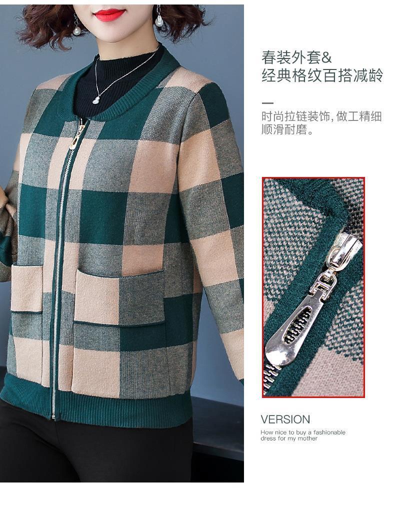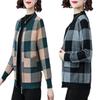 Chaqueta fina a cuadros de talla grande para mamá, nuevo estilo, traje de béisbol estilo occidental para mujeres de mediana edad y mayores, chaqueta corta de bolsillo para primavera y otoño para mujer