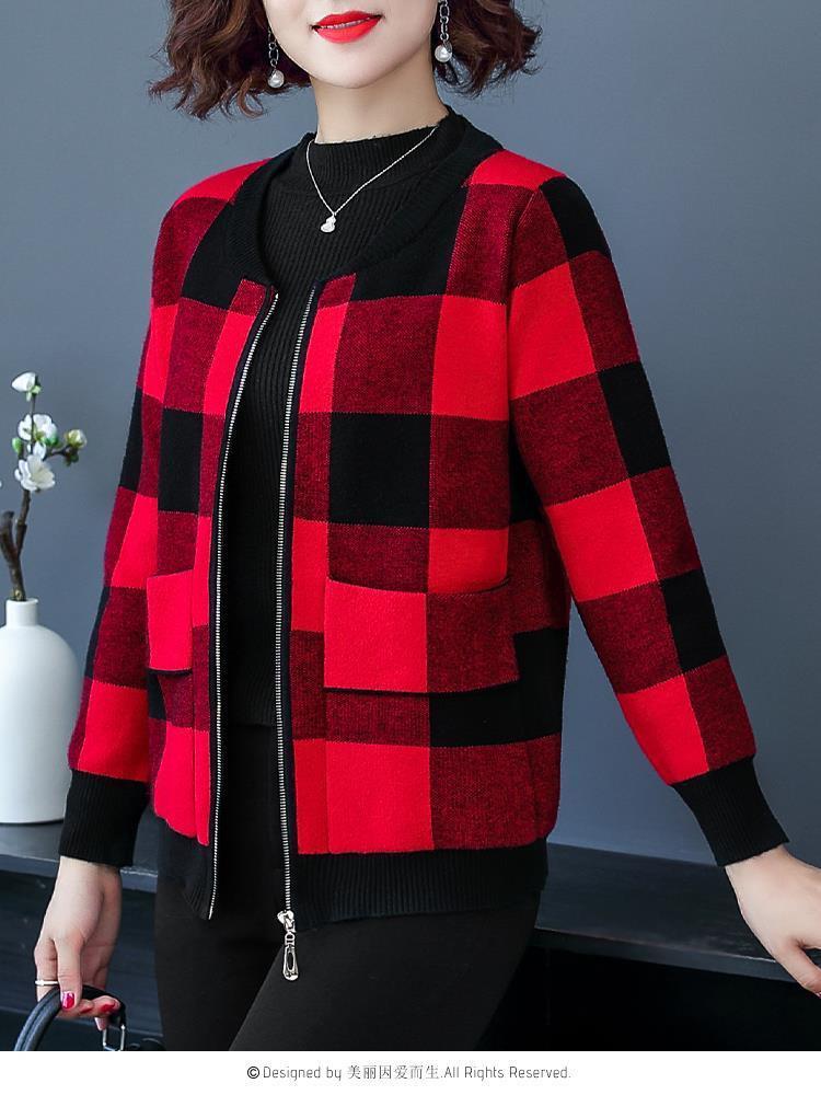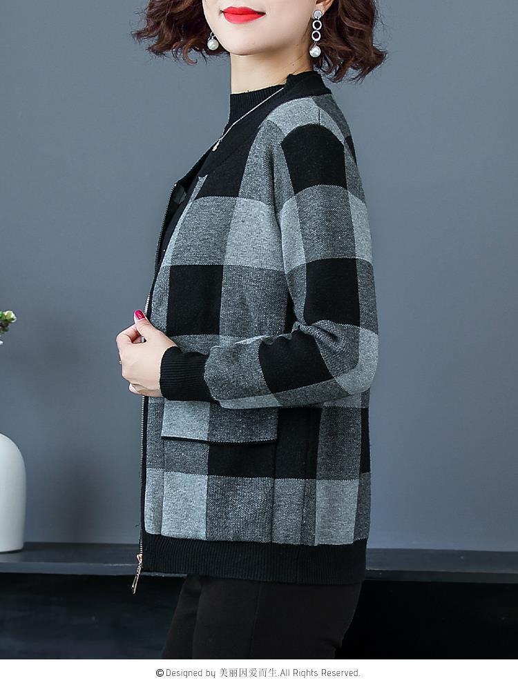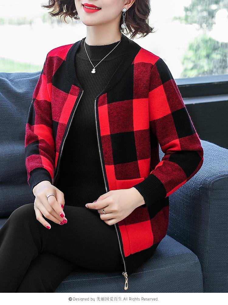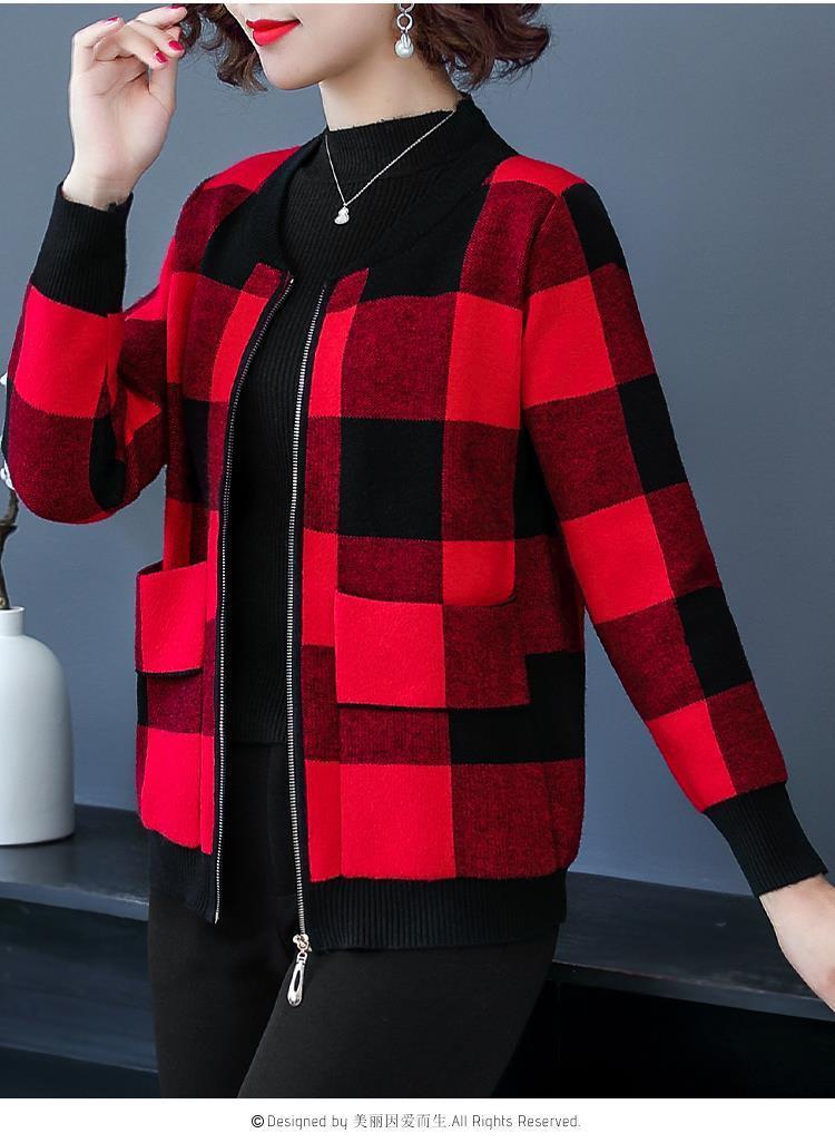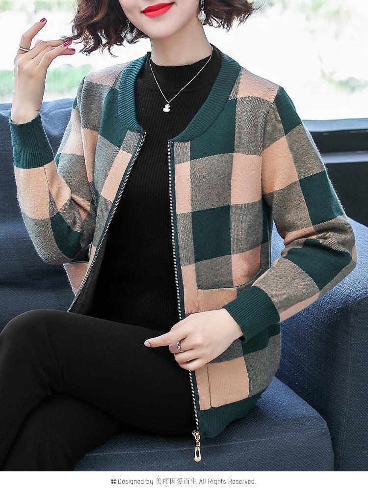 Chaqueta fina a cuadros de talla grande para mamá, nuevo estilo, traje de béisbol estilo occidental para mujeres de mediana edad y mayores, chaqueta corta de bolsillo para primavera y otoño para mujer