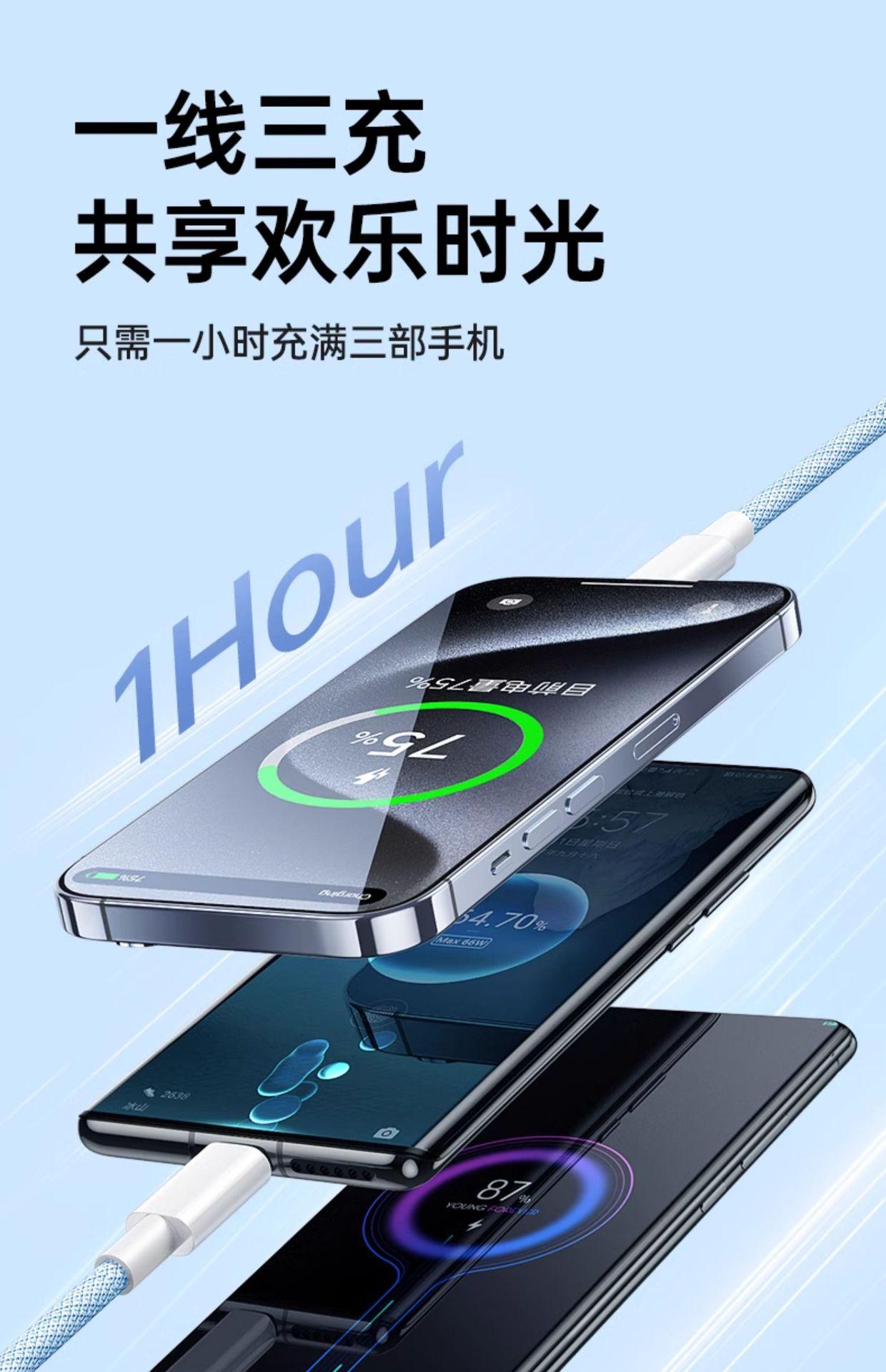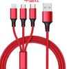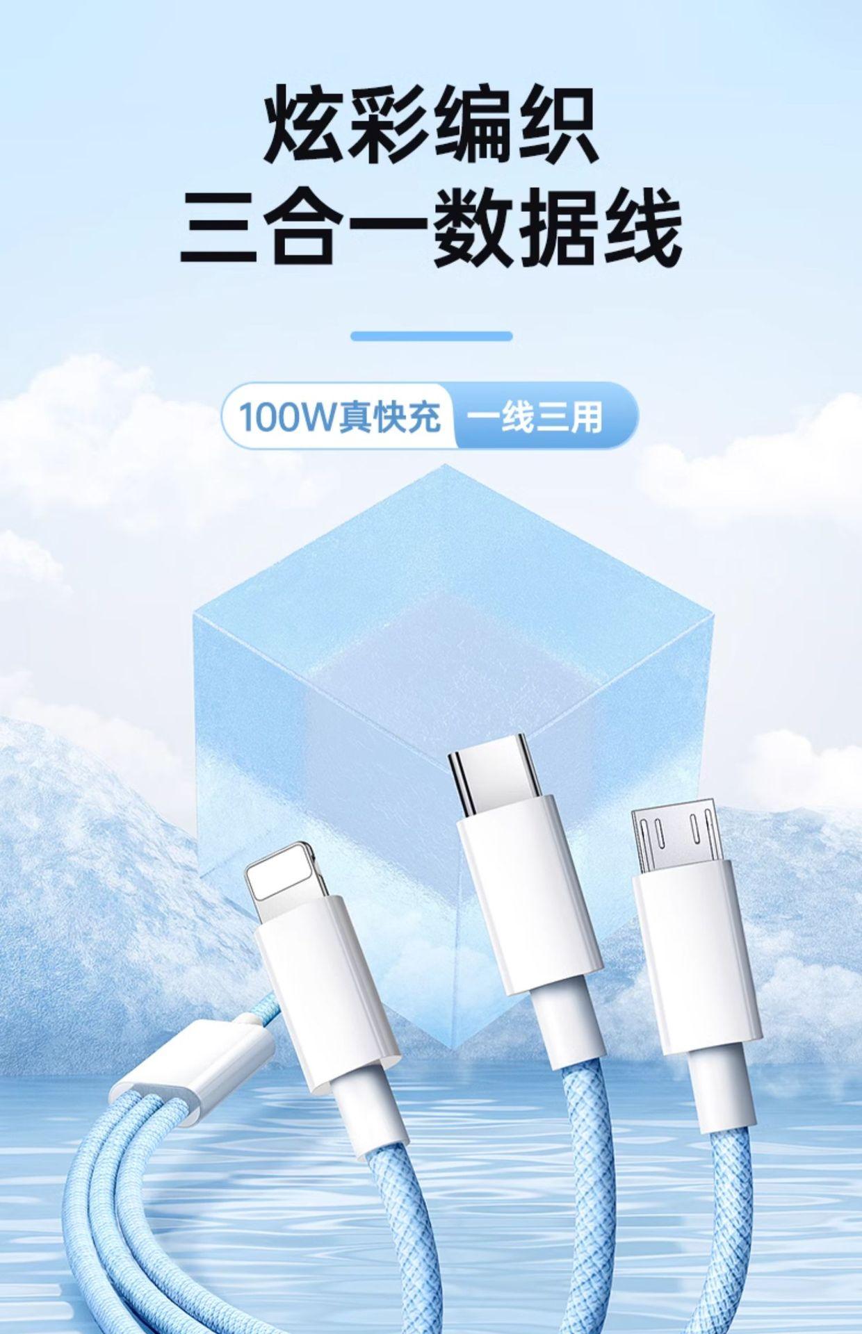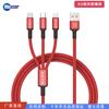 Cable de datos de carga rápida trenzado tres en uno tipo C para coche, personalizado para Apple, Huawei y Android.