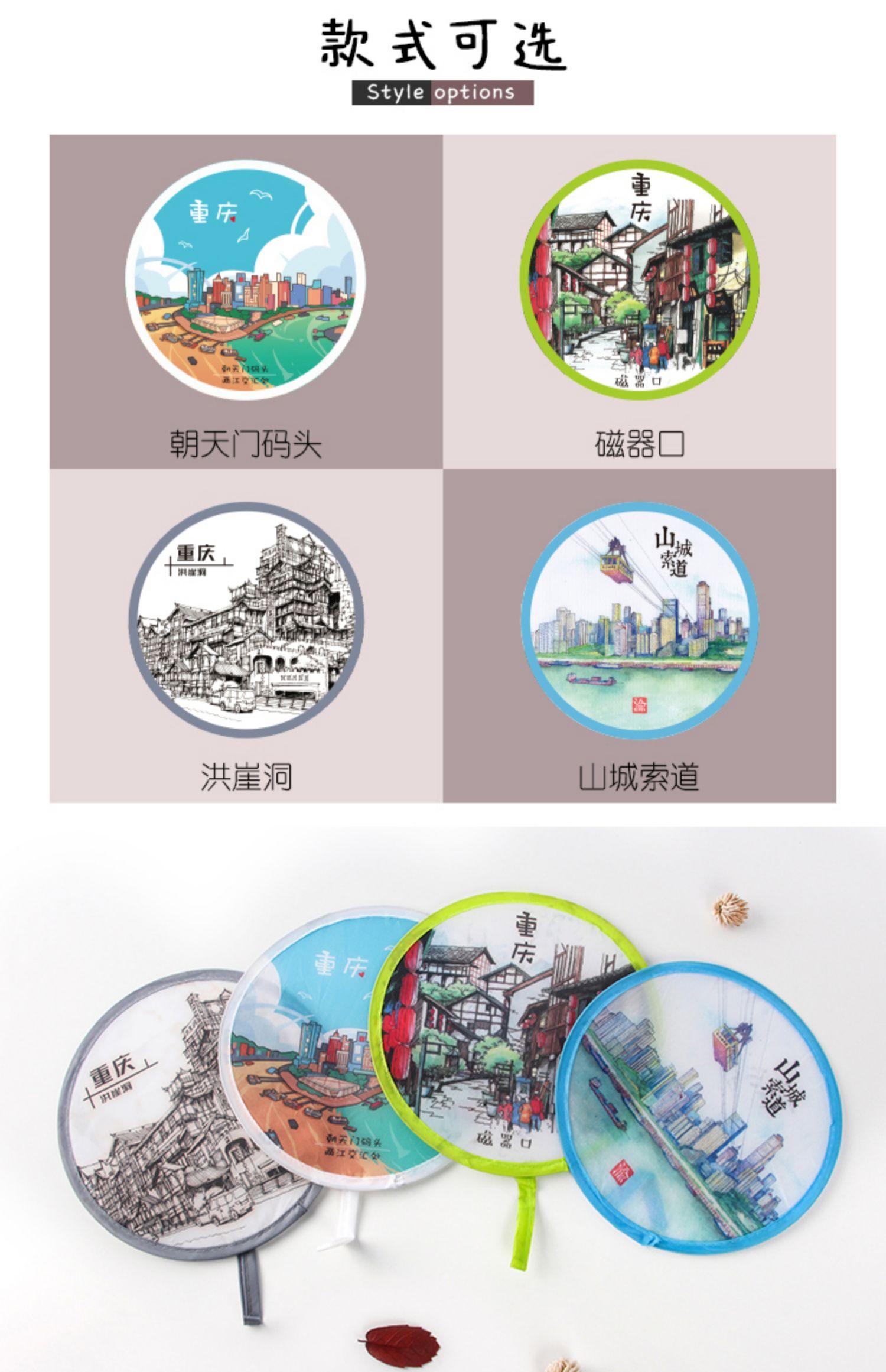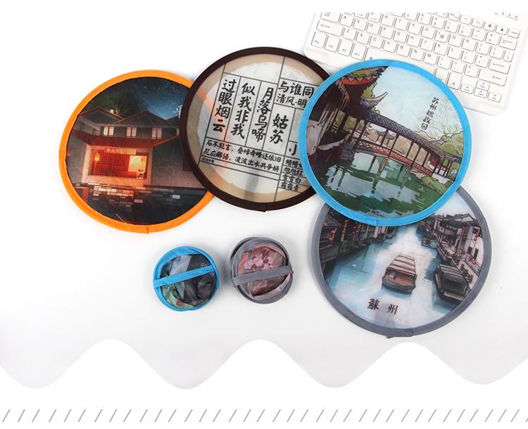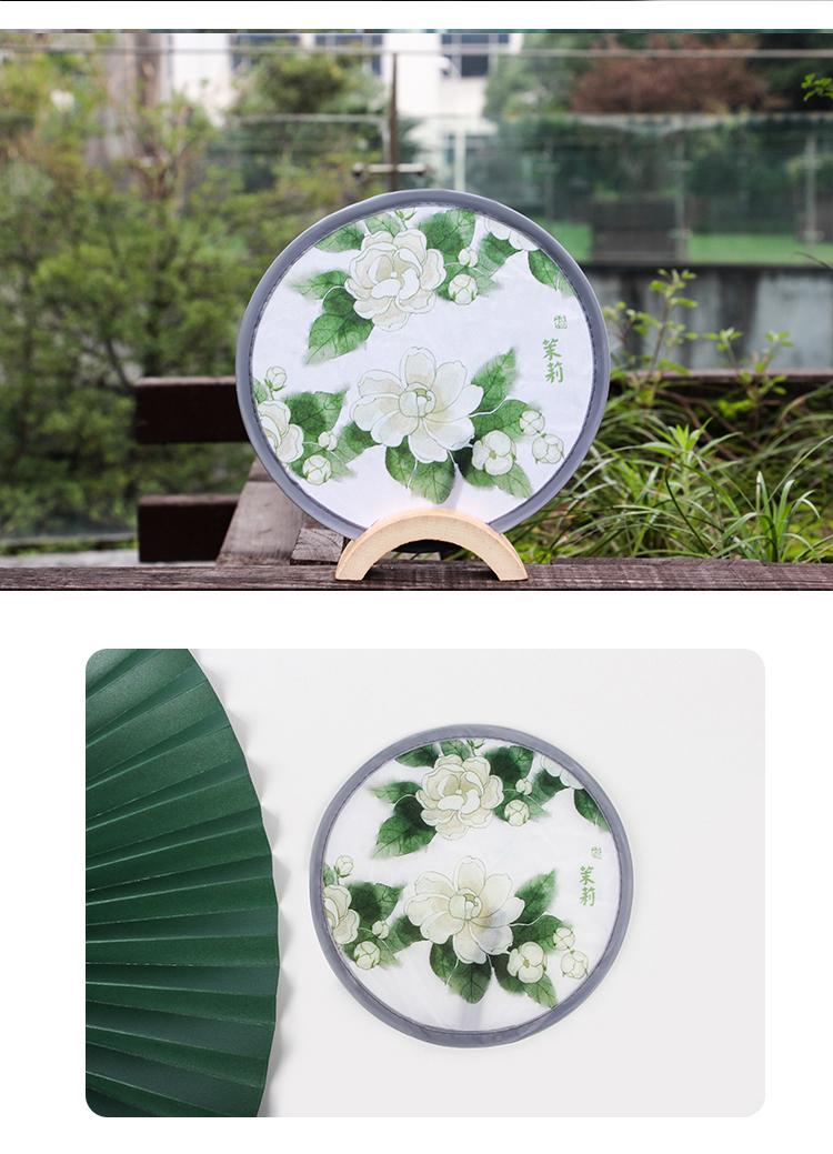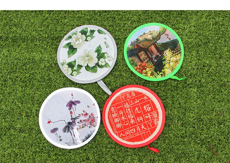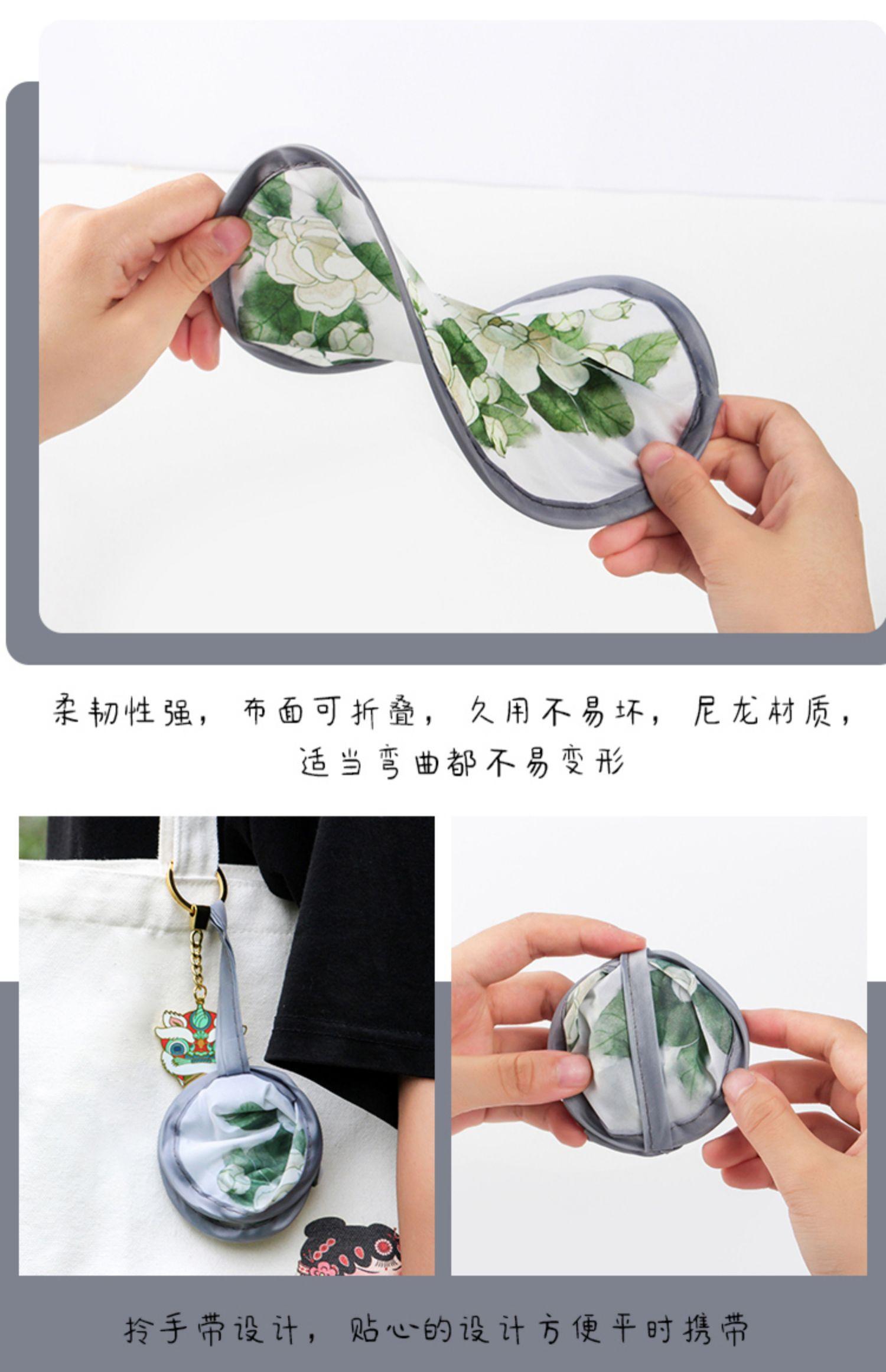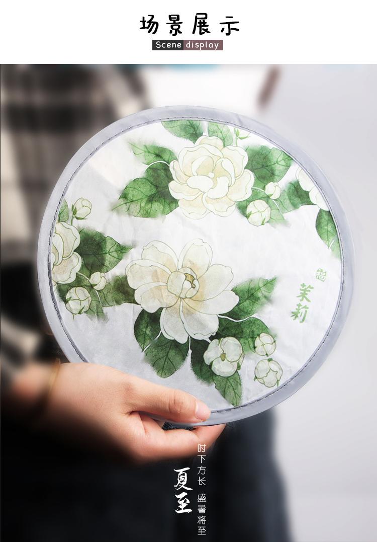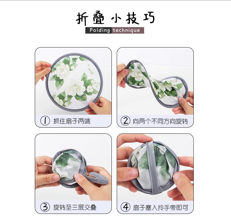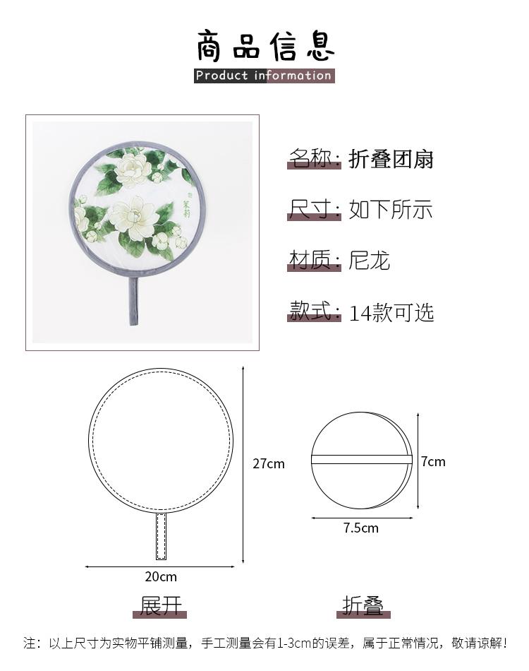 A5L Abanico Redondo Plegable Estilo Clásico Exquisito Ins Simple Portátil Redondo Encogible Abanico de Tela para Estudiantes